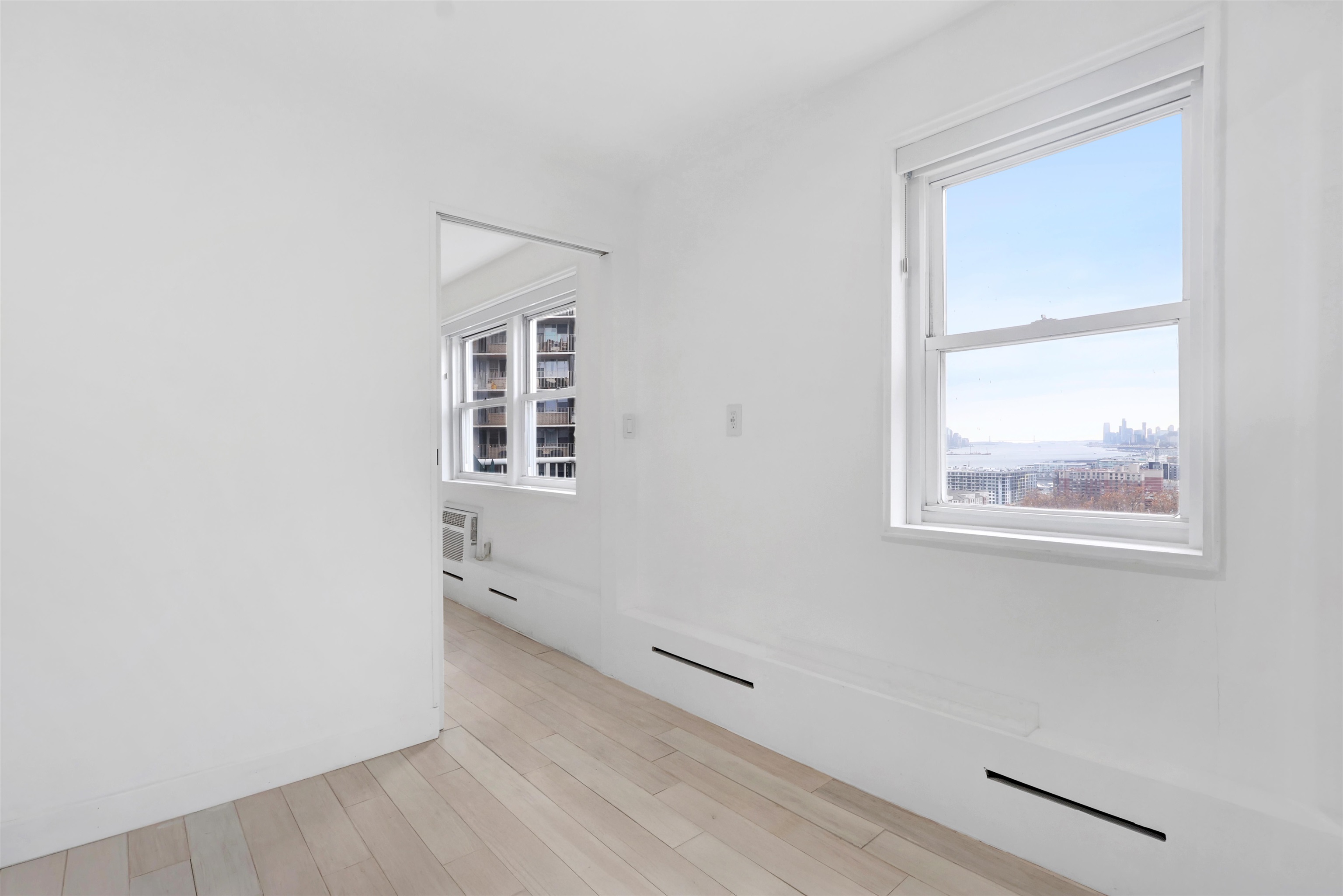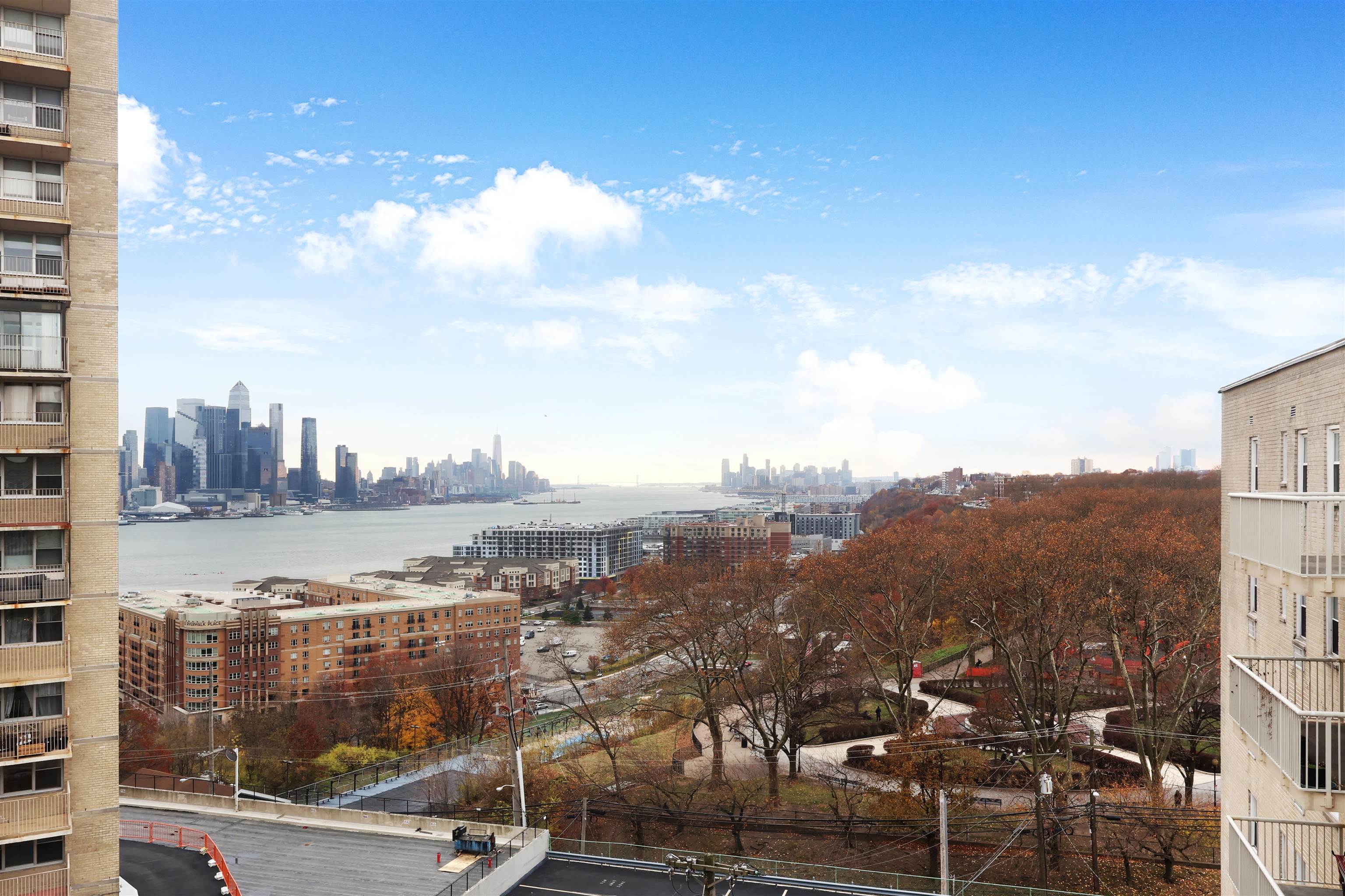 Prestigious Boulevard East top floor unit with breathtaking NYC & Hudson River Views. Sundrenched, newly renovated unit. Approx 950 sq ft of open living space. Bright open-concept layout perfect for entertaining. Generously sized Master bedroom, plus a versatile second bedroom or home office. A spa like bathroom with heated towel rack. Automatic blackout shades for effortless comfort and privacy. Retractable screen door leading to private balcony. Abundant closet space to keep your unit organized. First floor laundry room, 24/7 on-site superintendent, Reserved Parking available for $200 month. Public transportation steps from your door. Also, enjoy strolls along the waterfront, catch the ferry for scenic commute. Nearby cafes, restaurants, parks and shopping, all in walking distance.