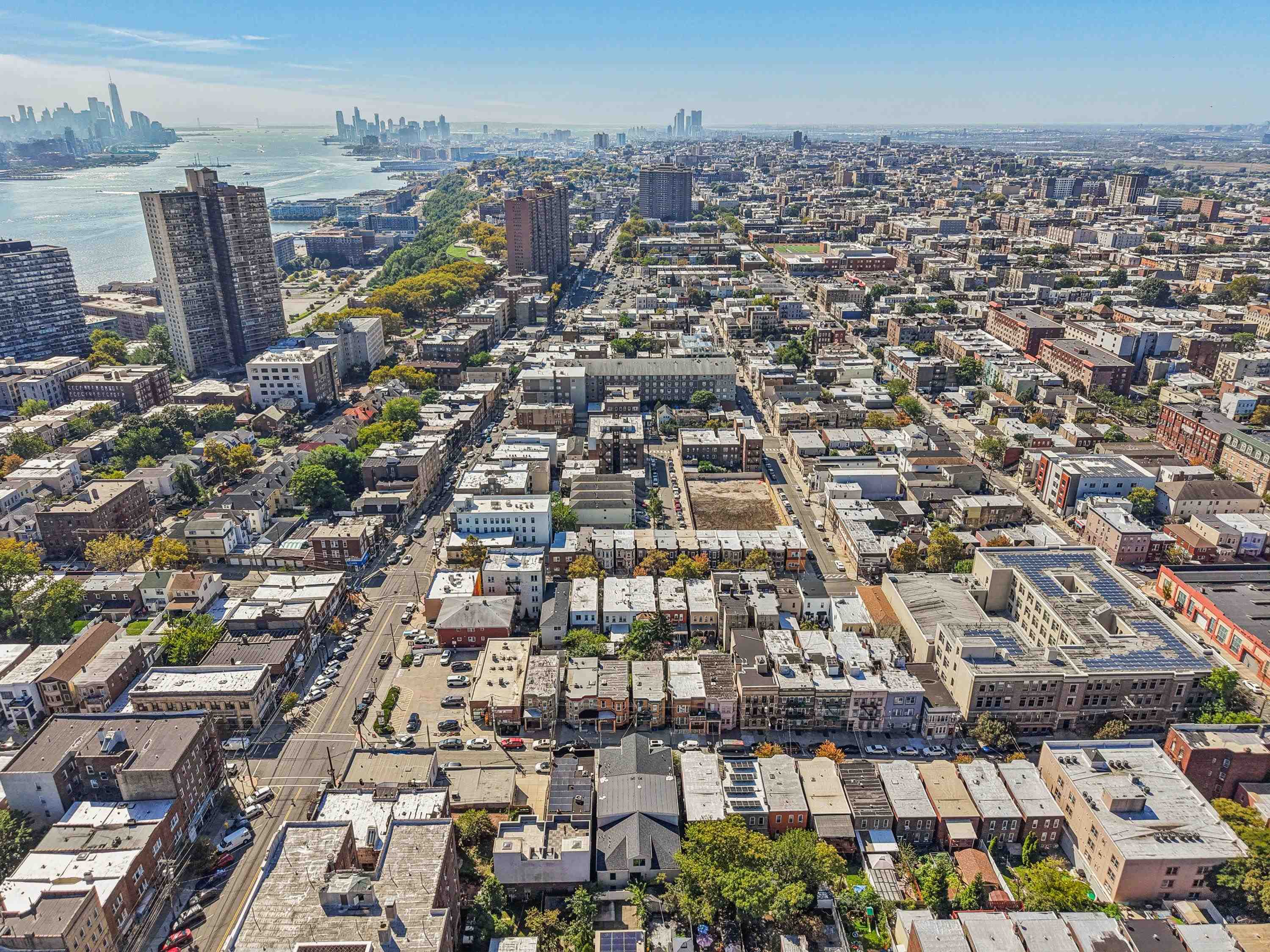 Stunning 2BR/1BA duplex condo in the heart of West New York featuring 1,269 sq. ft. of modern living space. The open floor plan boasts a stylish kitchen with stainless steel appliances, granite countertops, tiled backsplash, and plenty of cabinets, seamlessly flowing into the dining and living areas. The loft-style master suite includes a spacious primary closet for the perfect retreat. Additional highlights: in-unit washer/dryer, central A/C, hardwood floors, and 1-car garage parking. Ideally located just one block from NYC bus service, near ferries, shops, restaurants, James J. Braddock Park, and only one block from Boulevard East with its stunning Manhattan skyline views. Move-in ready and perfect for commuters or first-time buyers—schedule your private showing today!