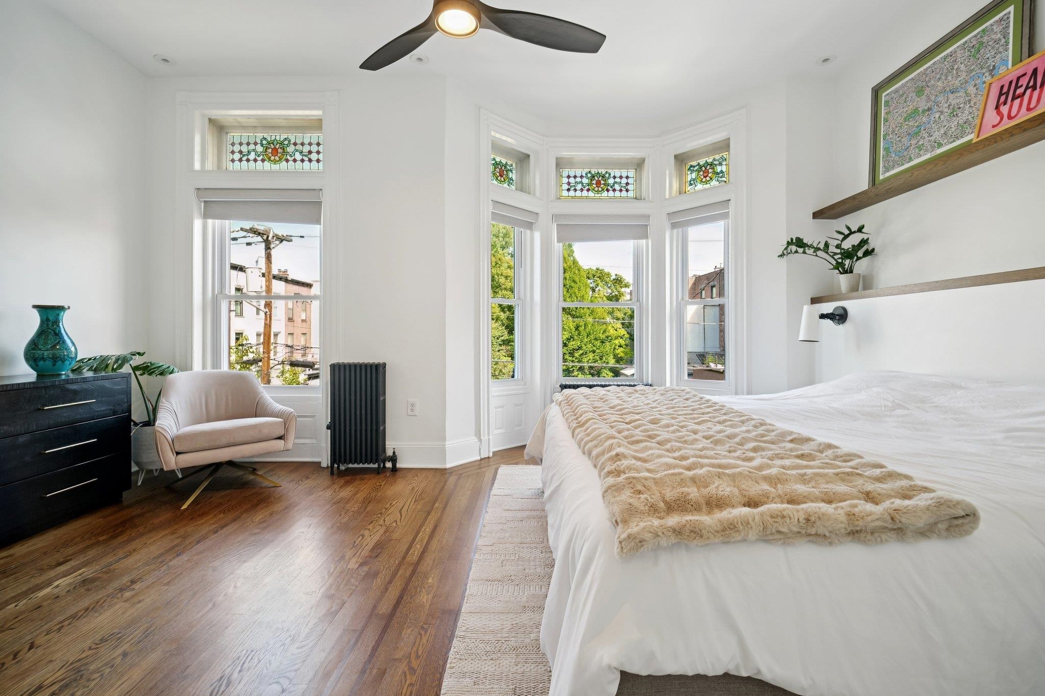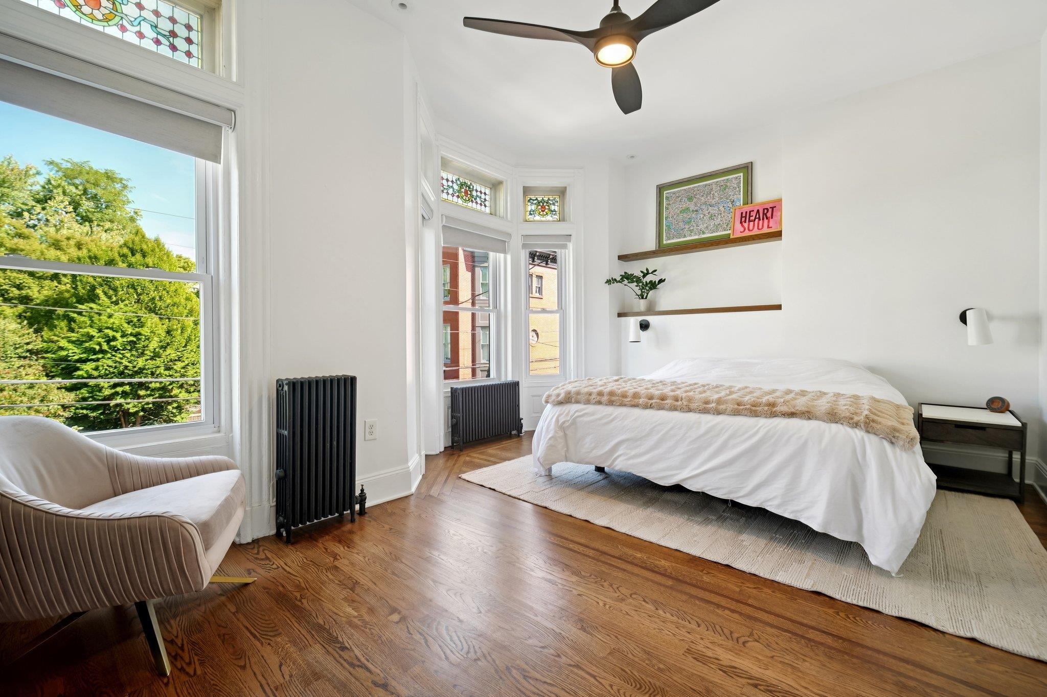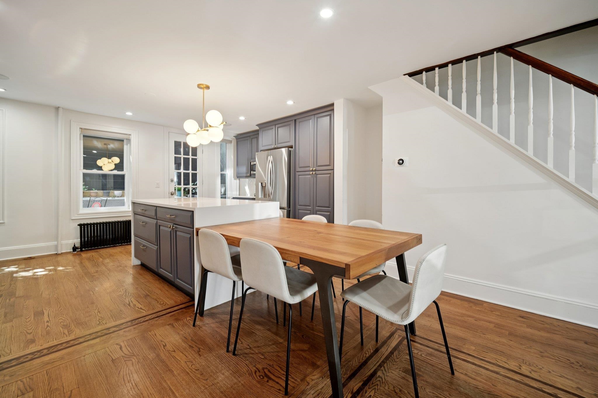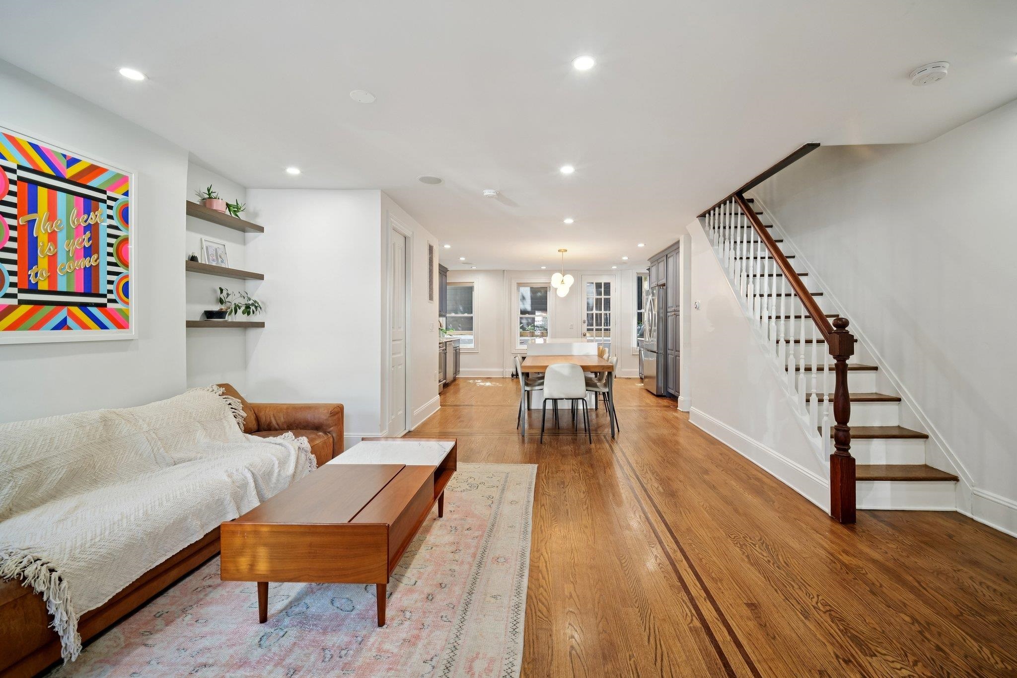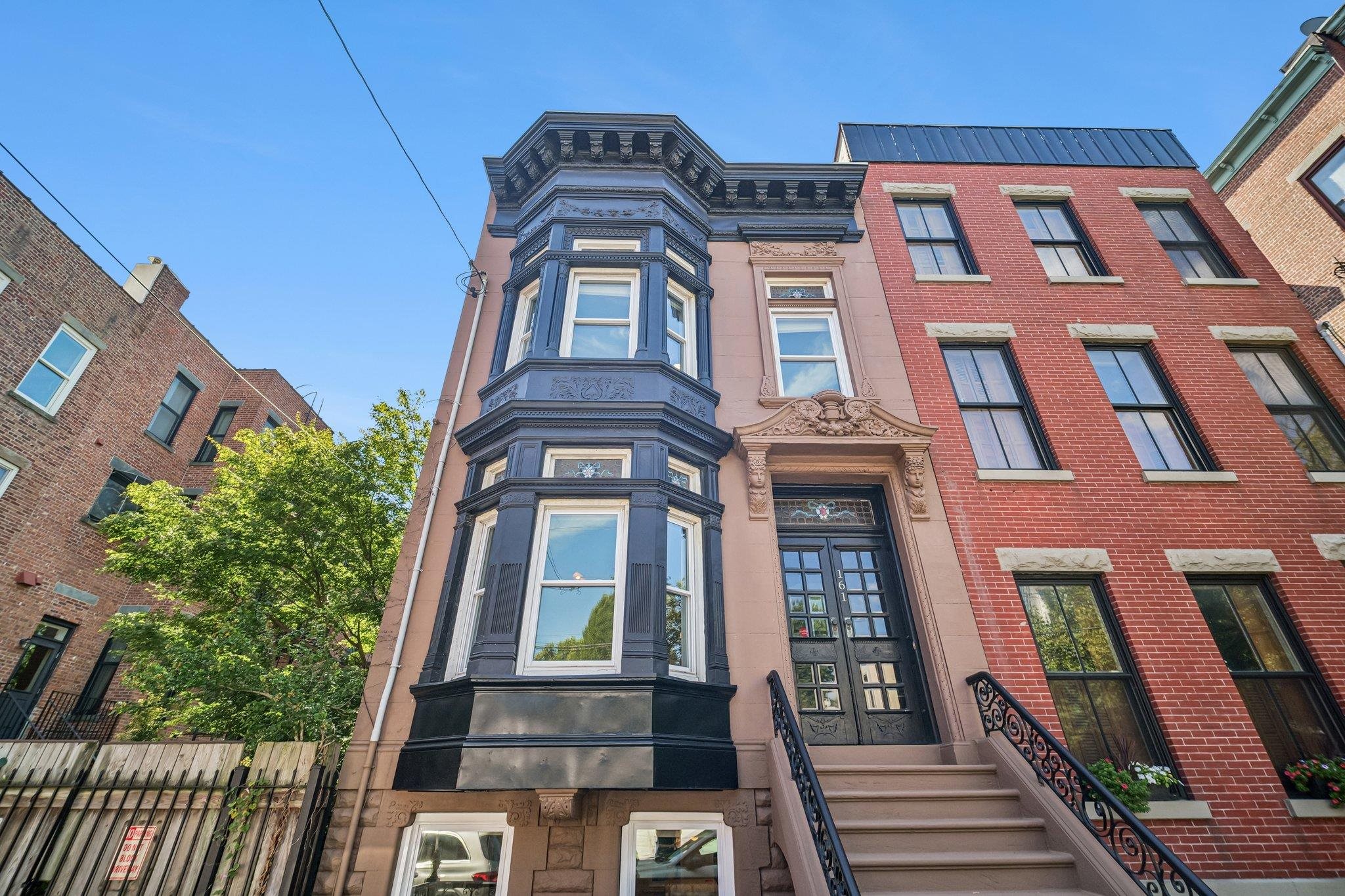Welcome to 161 12th St, a 20-foot wide, 4 bedroom, 3 bath plus office home that seamlessly combines modern updates with classic charm. This move-in ready home, updated within the past several years, offers the perfect blend of style, comfort, and functionality. Step inside to discover an open concept living space with hardwood floors, recessed lighting, and large windows that flood the home with natural light. The spacious living room flows effortlessly into the kitchen & dining area, ideal for entertaining or everyday family living. The updated kitchen is a chef’s dream, featuring new, energy-efficient appliances, sleek countertops, and ample cabinet space for storage. Whether you're hosting a dinner party or preparing a meal for the family, this kitchen offers the perfect space for both. This home offers four bedrooms, each filled with natural light, and three bathrooms (2 full, 1 half) with contemporary finishes. The bonus office features two fully wired workspaces with custom-built cabinetry, making it an ideal space for working from home, studying, or creative projects. Throughout the home, you’ll find original architectural details that blend beautifully with contemporary finishes, including stunning stained glass windows and an impressive staircase—all of which retain the home’s historical charm. Enjoy three full floors of living space (plus an unfinished basement) with high ceilings, 2-zone high-velocity central air conditioning, and Nest thermostats throughout. The private outdoor space is perfect for relaxing, dining al fresco, or enjoying a quiet evening with friends. While no history of flooding, the basement is equipped with a sump pump for added peace of mind. The roof was replaced in 2024. Located in uptown Hoboken, the house is conveniently located just minutes away from the bus to NYC Midtown or the Hoboken PATH station, and is a short walk to the 14th St ferry terminal - offering quick commute options into the city. It is also within close proximity to multiple parks, restaurants, shopping and entertainment.
