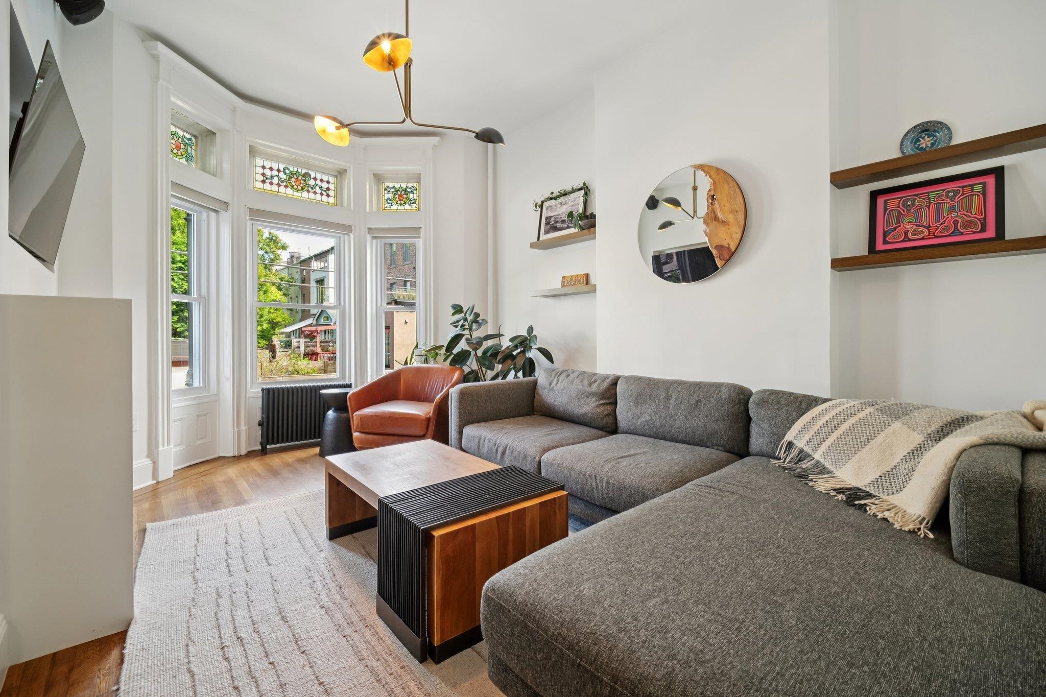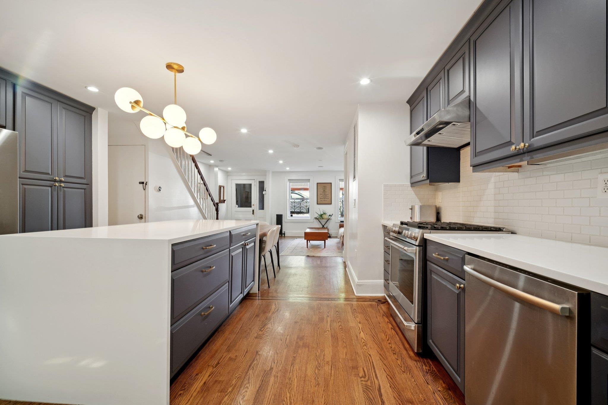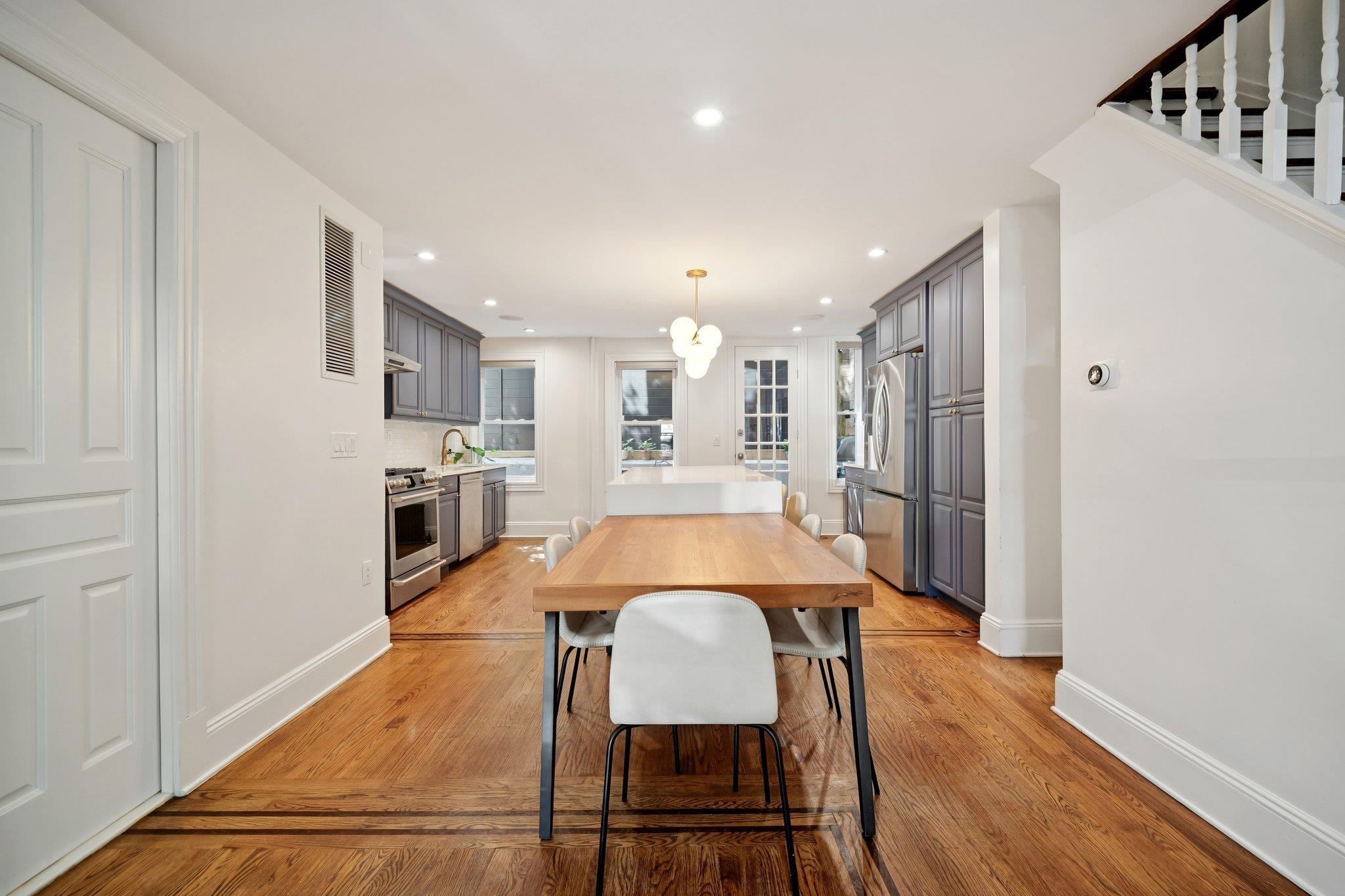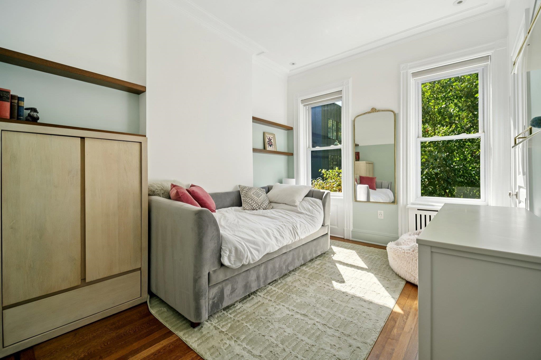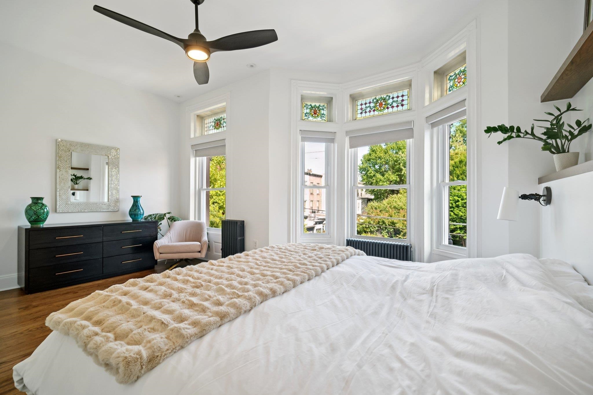 Welcome to 161 12th St, a 20-foot wide, 4 bedroom, 3 bath plus office home that seamlessly combines modern updates with classic charm. This move-in ready home, updated within the past several years, offers the perfect blend of style, comfort, and functionality. Step inside to discover an open concept living space with hardwood floors, recessed lighting, and large windows that flood the home with natural light. The spacious living room flows effortlessly into the kitchen & dining area, ideal for entertaining or everyday family living. The updated kitchen is a chef’s dream, featuring new, energy-efficient appliances, sleek countertops, and ample cabinet space for storage. Whether you're hosting a dinner party or preparing a meal for the family, this kitchen offers the perfect space for both. This home offers four bedrooms, each filled with natural light, and three bathrooms (2 full, 1 half) with contemporary finishes. The bonus office features two fully wired workspaces with custom-built cabinetry, making it an ideal space for working from home, studying, or creative projects. Throughout the home, you’ll find original architectural details that blend beautifully with contemporary finishes, including stunning stained glass windows and an impressive staircase—all of which retain the home’s historical charm. Enjoy three full floors of living space (plus an unfinished basement) with high ceilings, 2-zone high-velocity central air conditioning, and Nest thermostats throughout. The private outdoor space is perfect for relaxing, dining al fresco, or enjoying a quiet evening with friends. While no history of flooding, the basement is equipped with a sump pump for added peace of mind. The roof was replaced in 2024. Located in uptown Hoboken, the house is conveniently located just minutes away from the bus to NYC Midtown or the Hoboken PATH station, and is a short walk to the 14th St ferry terminal - offering quick commute options into the city. It is also within close proximity to multiple parks, restaurants, shopping and entertainment.
