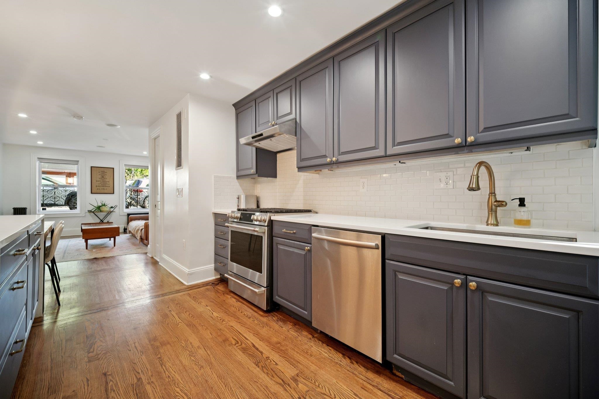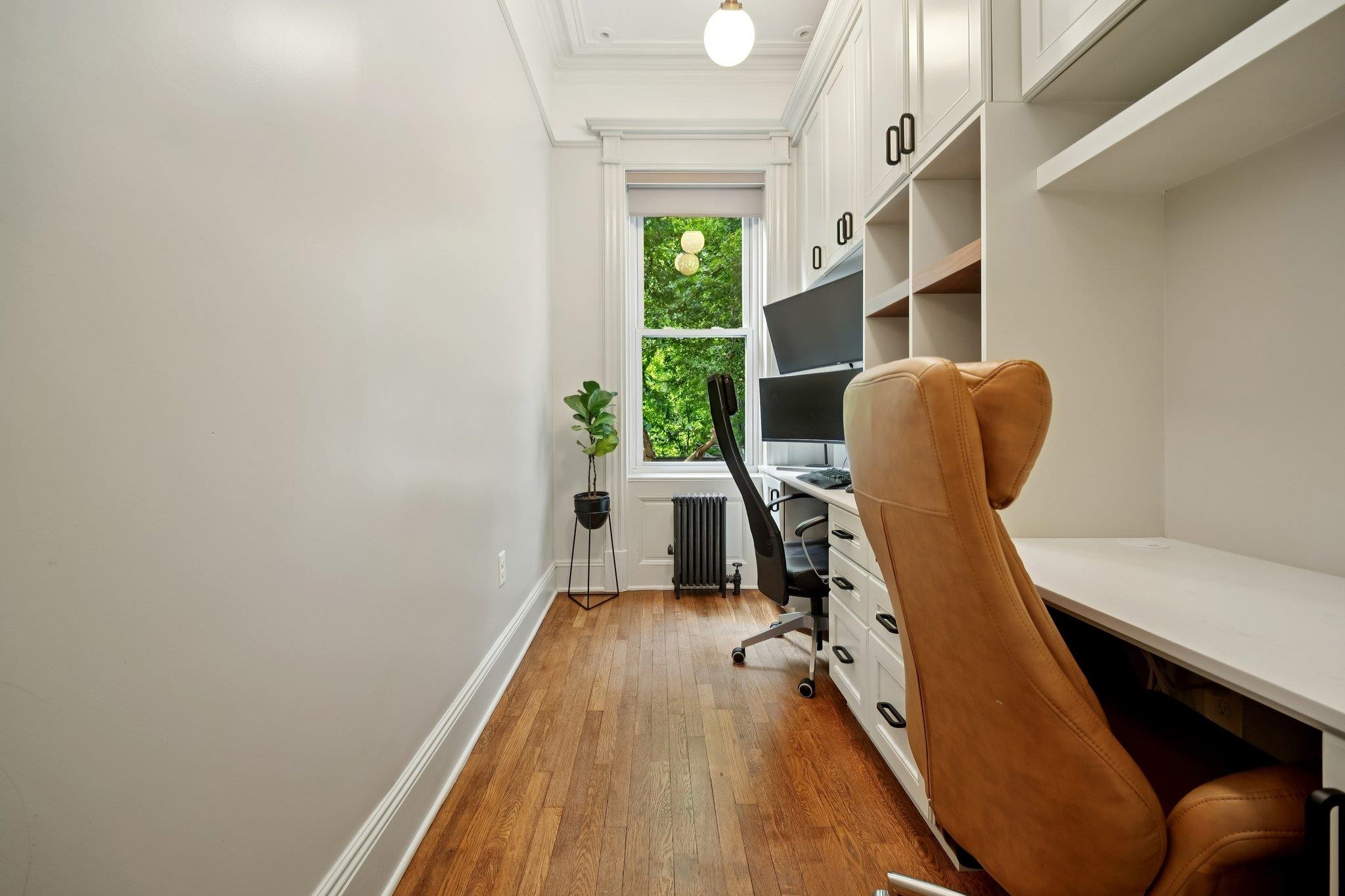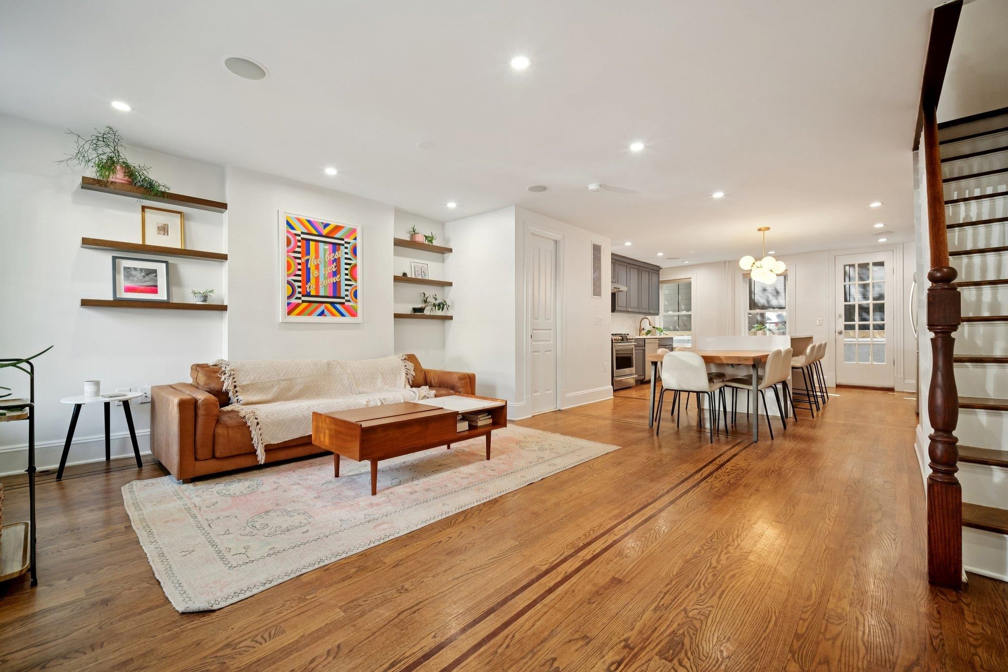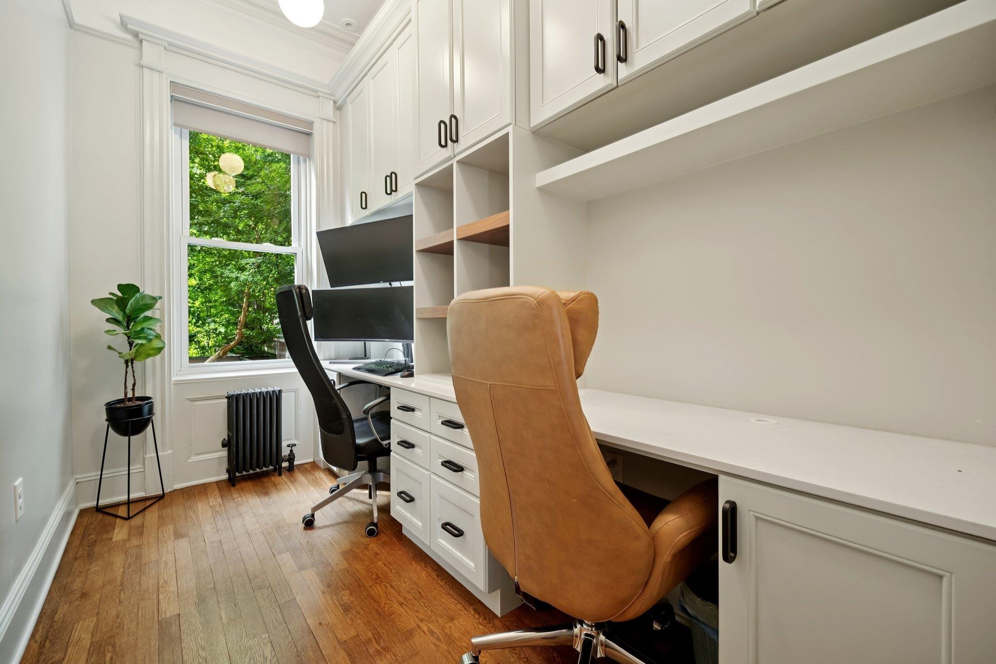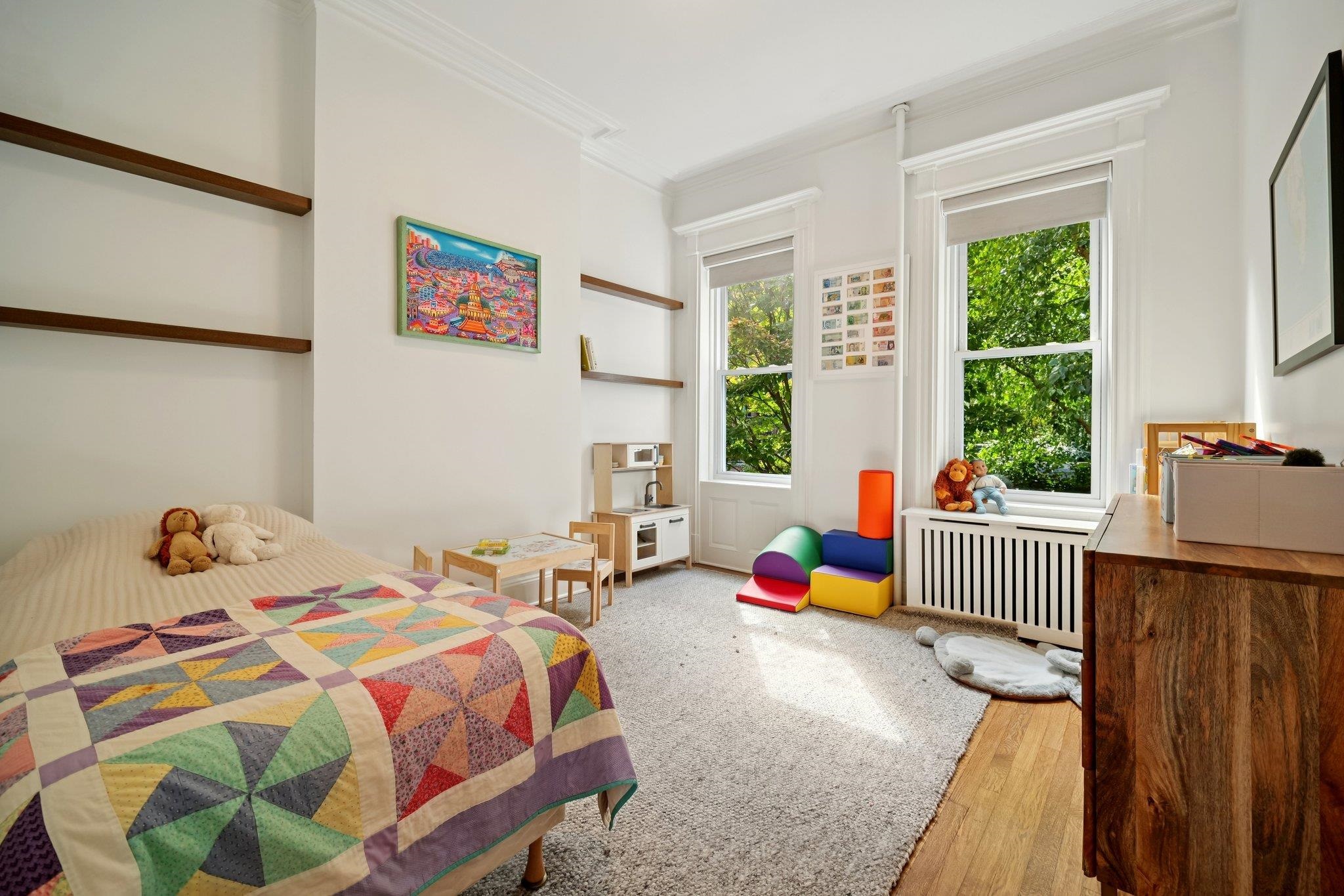 Welcome to 161 12th St, a 20-foot wide, 4 bedroom, 3 bath plus office home that seamlessly combines modern updates with classic charm. This move-in ready home, updated within the past several years, offers the perfect blend of style, comfort, and functionality. Step inside to discover an open concept living space with hardwood floors, recessed lighting, and large windows that flood the home with natural light. The spacious living room flows effortlessly into the kitchen & dining area, ideal for entertaining or everyday family living. The updated kitchen is a chef’s dream, featuring new, energy-efficient appliances, sleek countertops, and ample cabinet space for storage. Whether you're hosting a dinner party or preparing a meal for the family, this kitchen offers the perfect space for both. This home offers four bedrooms, each filled with natural light, and three bathrooms (2 full, 1 half) with contemporary finishes. The bonus office features two fully wired workspaces with custom-built cabinetry, making it an ideal space for working from home, studying, or creative projects. Throughout the home, you’ll find original architectural details that blend beautifully with contemporary finishes, including stunning stained glass windows and an impressive staircase—all of which retain the home’s historical charm. Enjoy three full floors of living space (plus an unfinished basement) with high ceilings, 2-zone high-velocity central air conditioning, and Nest thermostats throughout. The private outdoor space is perfect for relaxing, dining al fresco, or enjoying a quiet evening with friends. While no history of flooding, the basement is equipped with a sump pump for added peace of mind. The roof was replaced in 2024. Located in uptown Hoboken, the house is conveniently located just minutes away from the bus to NYC Midtown or the Hoboken PATH station, and is a short walk to the 14th St ferry terminal - offering quick commute options into the city. It is also within close proximity to multiple parks, restaurants, shopping and entertainment.