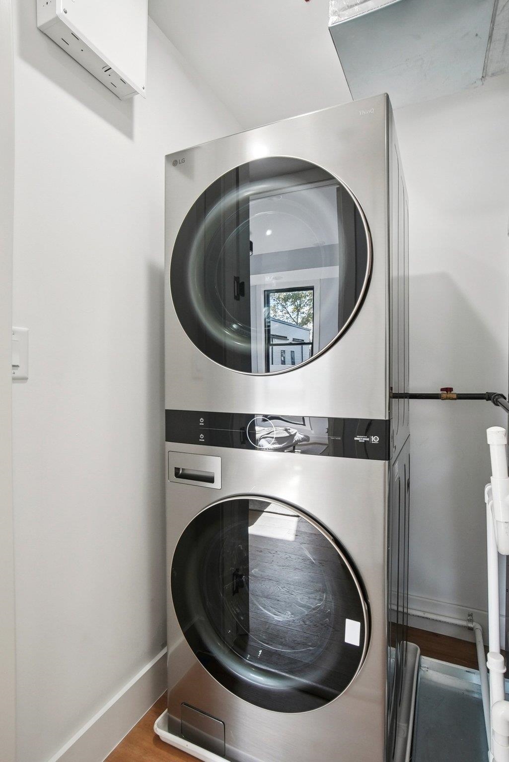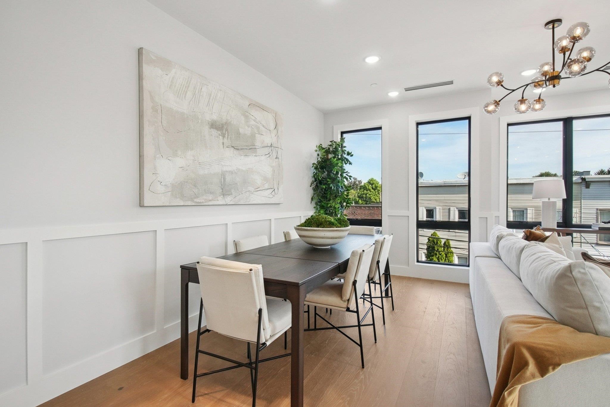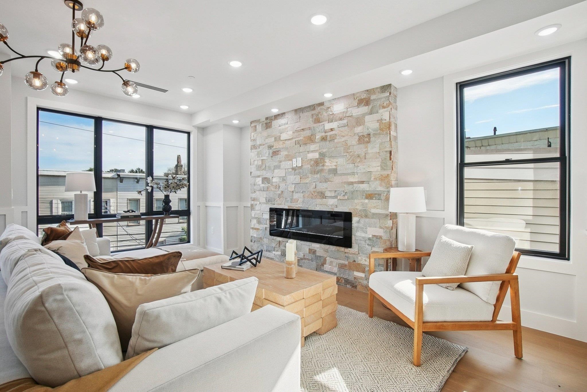 Welcome to this exceptional brand-new construction residence situated on one of Jersey City Heights’ most sought-after streets. Spanning an impressive 1,403 square feet, this thoughtfully crafted three-bedroom, two-bathroom with PRIVATE ROOF DECK home perfectly blends modern elegance with everyday comfort. Step inside to a sun-drenched, open-concept living and dining area where soaring ceilings, light-finished 6" wide-plank hardwood floors, oversized Anderson windows, and an 8-foot custom entry door package create an immediate sense of style and sophistication. Anchoring the space is a bespoke electric fireplace, offering warmth and ambiance for both relaxing evenings and lively gatherings. The chef’s kitchen is a true showpiece, designed for both function and flair. Outfitted with oversized custom soft-close cabinetry, a walk-in pantry, quartz countertops, and a designer tile backsplash, it is centered around a generous island perfect for casual dining and entertaining. A full suite of premium VIKING appliances completes the space, providing professional-grade quality for culinary enthusiasts. Retreat to the primary suite oasis, featuring a custom walk-in closet and a spa-inspired en-suite bath with a contemporary rain shower and sleek designer finishes. Two additional well-proportioned bedrooms offer oversized custom closets and abundant natural light, ideal for guests, family, or a home office. Ascend to your PRIVATE ROOF DECK—a rare luxury offering sweeping skyline views and ample room for outdoor dining, entertaining, or enjoying serene sunsets. Additional highlights include garage parking availability, central heating and cooling, and premium finishes throughout. Perfectly located, this home places you within moments of NYC transportation, neighborhood parks, local cafés, dining destinations, and cultural hot spots that define the vibrant Jersey City Heights lifestyle. This is more than a residence—it’s an opportunity to experience elevated living in one of Jersey City’s most desirable neighborhoods. GARAGE PARKING AVAILABLE.