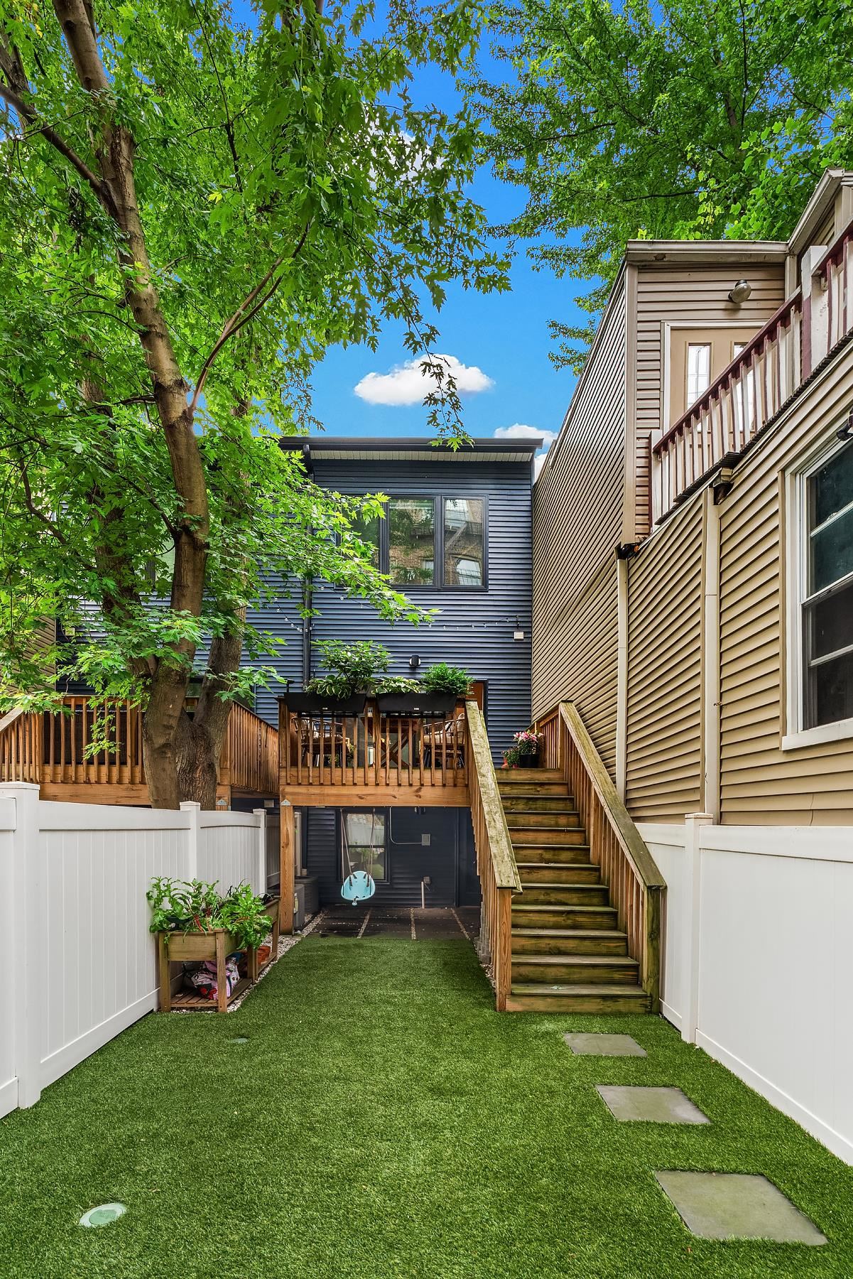 Next Level 4 Bedroom 3 Bath Designer home meets Urban Luxury Living with coveted expansive outdoor living space. A professionally landscaped garden, blue stone terrace, turf grass with fire-pit & balcony is your private retreat! Take a Virtual Tour copy & paste the link to experience the beauty of this home https://vimeo.com/1106189353?share=copy. Step into this gallery style home boasting a Movie set quality. Dripping in high end finishes; abundant custom millwork, lavish white oak chevron flooring to several gallery paneled fluted walls & floor to ceiling custom closets. One can't help but notice the Glamorous dangling Flos light fixtures & striking exposed brick walls that will leave you Marveling! The 1500+-sq. ft. floor-plan embraces the way we want to live now, equipped with Smart Home efficiency; shades, Lutron lighting+outlet system; virtual security. The Chef's Kitchen is a Dream....outfitted with contemporary sleek 2 tone custom cabinetry, a concealed espresso station, bar & bottle rack is a major attraction! A Calcutta quartz dining peninsula w/ waterfall edge & counters pair w/ SS appliances. Perfect for dining-in, cooking-in & gatherings. There is seamless access to the gardened Balcony, ideal for al fresco dining, grilling & entertaining. Travel upstairs experience soaring 10ft ceilings & sunlight, find 2 generous size bedrooms. The Primary Bedroom features an ensuite luxury bath with shower, a walk-in closet & impressive walls of custom closets galore! A vibrant green accent wall is an attraction. Off the hallway is a chic stylish full bath with shower. On Level 1 find 2 spacious Bedrooms, striking vintage exposed brick walls, a luxury subway tiled full bathroom. A high end Electrolux W/D, storage. The rear Bedroom offers seamless access to your private outdoor retreat professionally landscaped with blue stone, turf grass, a lounging area & fire pit-the private yard is designed for summer living & entertaining. Notable features: whole house water filtration; 2 Zone Central HVAC: Smart Home Nest thermostat, Lutron outlets & motorized shades; Professionally landscaped; Turf grass designed for minimal upkeep. Wired Verizon FIOS. A Burgeoning McGinley Square location surrounded by Convenience & new developments. A short stroll to shopping, Dining, Eateries et al. Hassle free commuter options to NYC are steps away, Via NJ Transit Bus or Path Train @Journal sq. 40 min to NYC. Don't Miss Out!