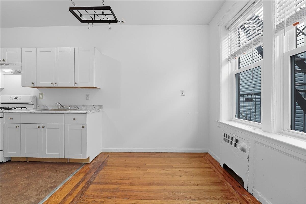Ideally located for both commuting and everyday living, this oversized 771 sq. ft. one-bedroom blends charm and convenience, perfect for first-time buyers or investors. Just steps from Washington Park, it’s a short walk to the 9th Street/Congress Light Rail for PATH access and offers easy bus service to NYC. Union City’s and Jersey City’s vibrant restaurants are just minutes away. Located on the second floor, this corner pre-war residence features high ceilings, original hardwood floors, portrait moldings, an eat-in kitchen, a spacious living room, a large bedroom, and ample closets, including a cedar-lined one. Additional highlights include a private storage area and shared laundry in the lower level. Nearby parking is available for an additional fee.