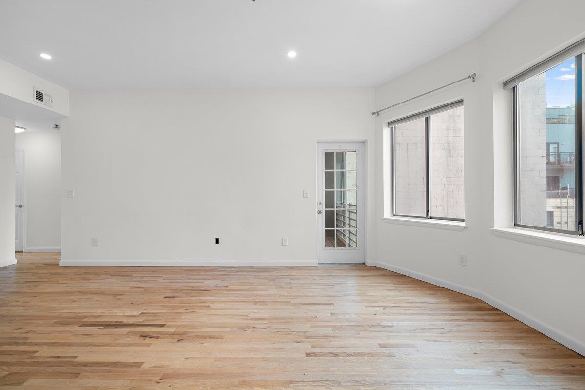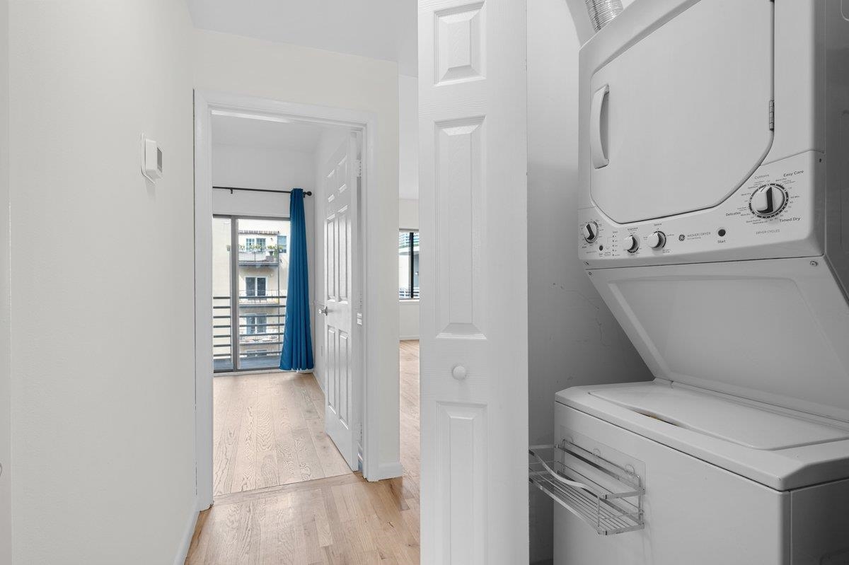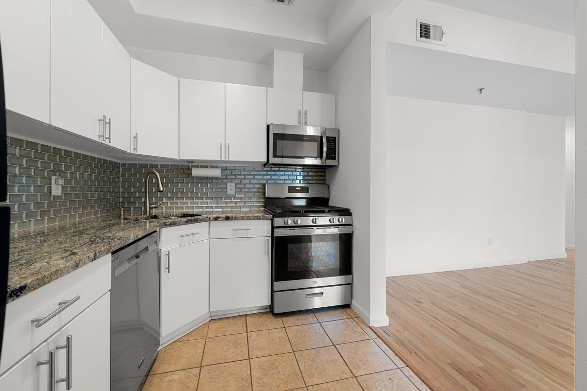 Prime uptown location for this bright and inviting home in an elevator building with a private balcony, laundry in unit and dedicated garage parking! This thoughtfully designed 2 bedroom, 1.5 bath layout offers comfortable living with no wasted space. The open living and dining area is ideal for entertaining or simply unwinding, with flexibility for a variety of furniture setups to suit your needs. Step out from your living room to enjoy fresh air on your peaceful balcony retreat. The spacious kitchen features stainless steel appliances, granite countertops, gas cooking, generous cabinet storage, and plenty of counter space to make meal prep a breeze. Additional highlights include central AC/heat, full-size in-unit washer/dryer, newly refinished hardwood floors, oversized windows, fresh paint, updated lighting, and a private storage cage located on the top floor of the building. Take in unobstructed city views from the shared rooftop deck. Conveniently located near shopping, dining, Trader Joe’s, and with a bus stop right outside your door.