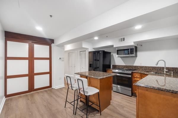 Located on the desirable Union City - Weehawken border, this stylish and spacious 1 bedroom, 1 bathroom, pet friendly condo offers the perfect blend of comfort, convenience, and value - just under 10 minutes to NYC Port Authority and Hoboken! This beautifully maintained unit features 2 deeded private patios, central air, in-unit washer dryer, recessed lighting, and sleek grey plank flooring throughout. The updated kitchen includes a granite island, modern stainless steel appliances, and ample cabinetry. The generously sized bedroom fits a king-size bed and includes great closet space—part of the unit's impressive five closets in total. Recent upgrades include a brand new furnace and HVAC system installed in 2025, complete with a 1-year warranty. The condo also comes with a transferable home warranty for added peace of mind. Parking is available for just $150/month next door. Low HOA fees and low property taxes! Walk to shops, restaurants, parks, cafes, Aldi, ShopRite, Crunch Fitness, and more. Don’t miss this opportunity to own a move-in-ready home with private outdoor space in one of the most accessible locations in Hudson County!