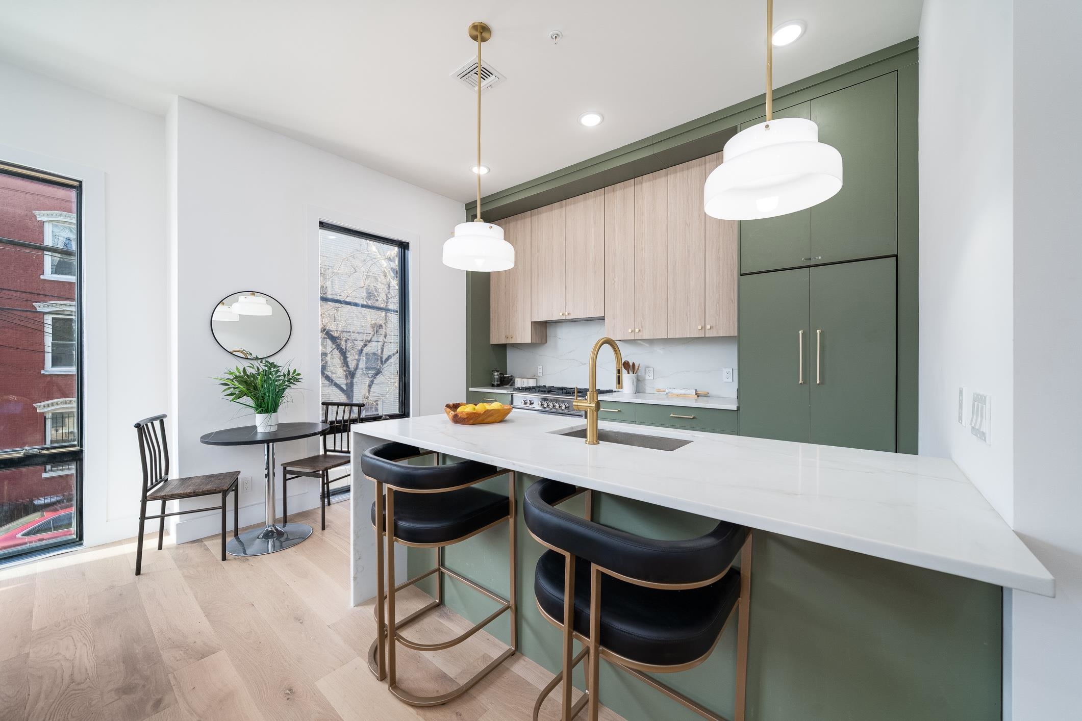 Seller to contribute $20k towards closing costs! *See your agent for details* 1 car rental spot pre-paid until June 2026! Step into elevated design and modern convenience with these three ground up new construction 3 bedroom + office/den, 2.5 bath units with private outdoor space in the heart of Jersey City Heights. Set on Webster Avenue with a striking white brick exterior, this home is bathed in natural light, highlighting a spacious open-concept layout with premium Legno Bastone wide-plank hardwood flooring and high-end finishes. The oversized windows frame a beautifully designed kitchen featuring modern sage green and natural light oak custom cabinetry, white quartz waterfall countertops, and a matching backsplash. Premium Fisher & Paykel appliances bring both style and functionality, making this space perfect for cooking and entertaining. The primary ensuite bathroom is a luxurious retreat with elegant gold accents, and a glass-enclosed shower with a multi-spray system and rain head. Additional features include ample closet space & brand-new washer and dryer. Located just one block from popular cafés and restaurants like Froth on Franklin and The Franklin, the best of The Heights is at your doorstep. The 2nd Street stairs to Hoboken provide quick access to the Light Rail, PATH, and ferry, making commuting to NYC effortless. Known for its vibrant community, excellent parks and schools, and stunning skyline views, Jersey City Heights continues to be one of the most sought-after neighborhoods in the area.