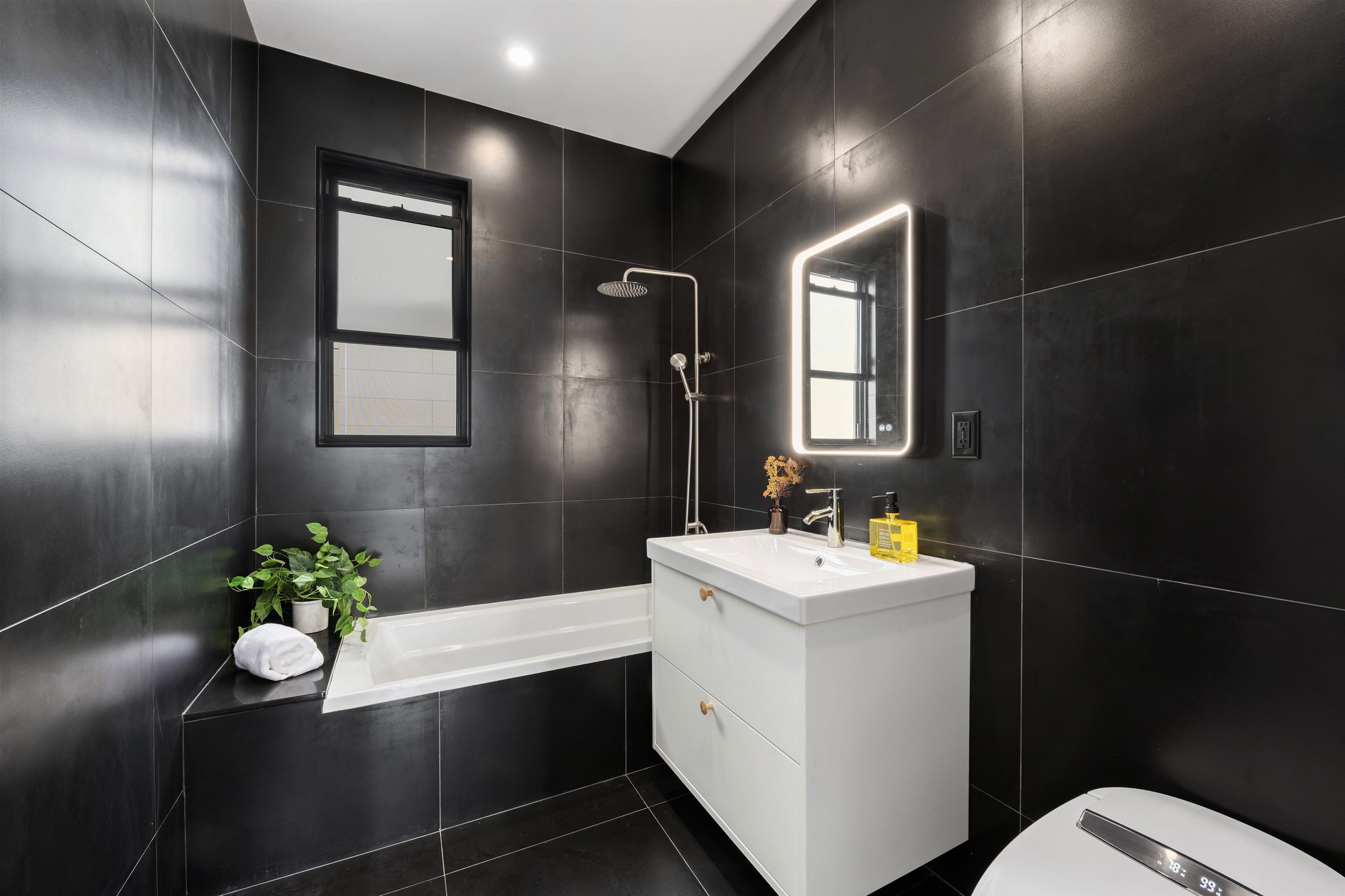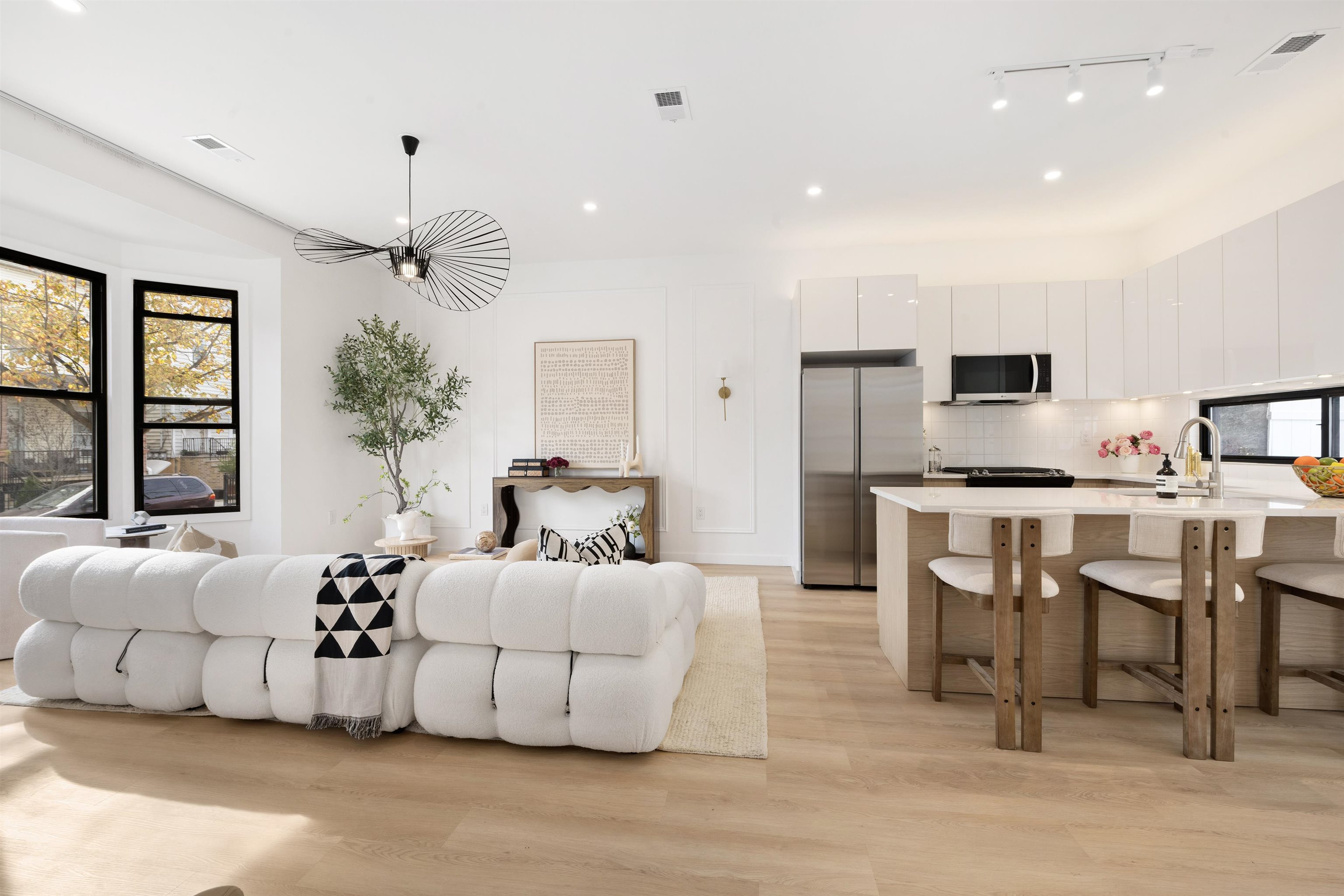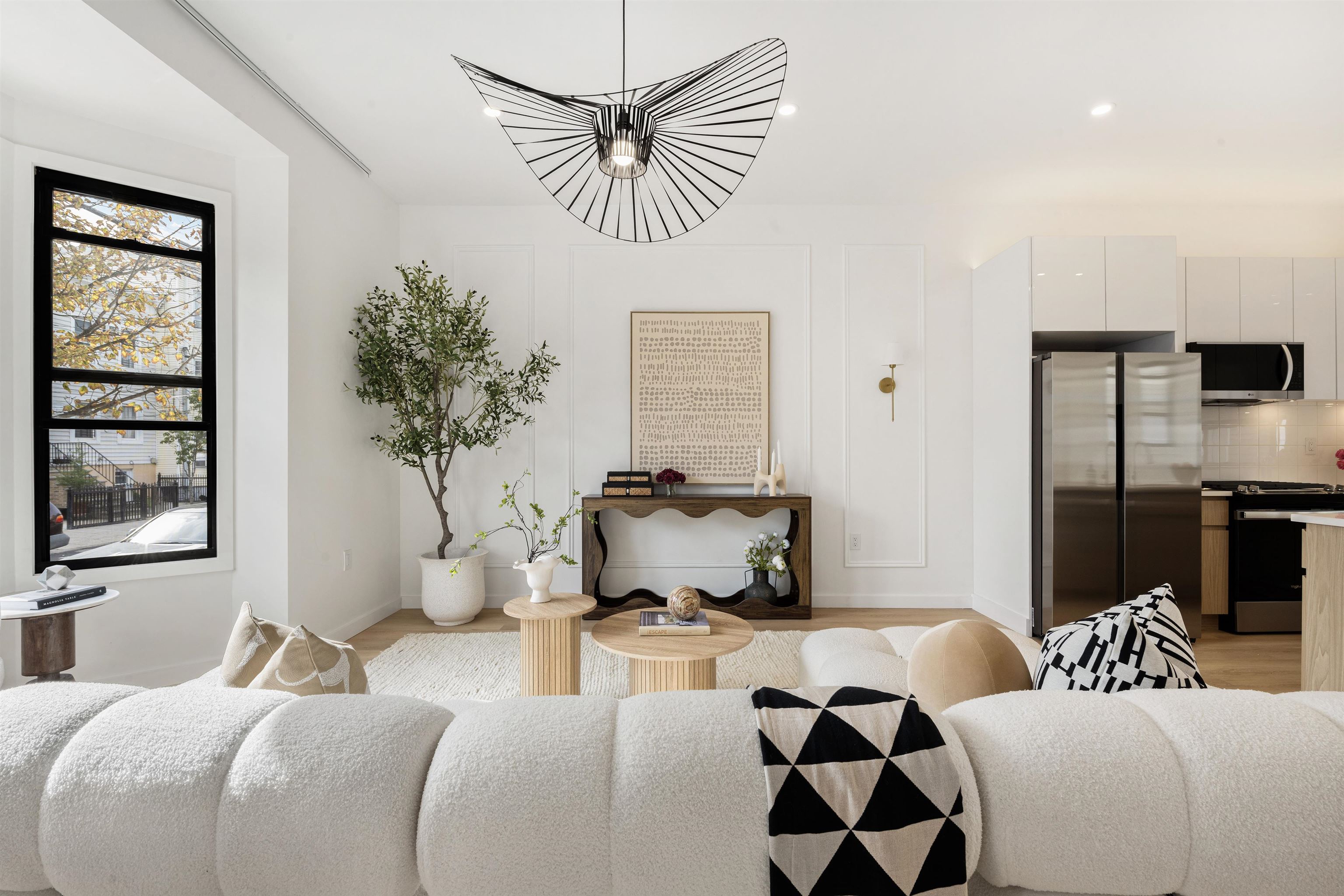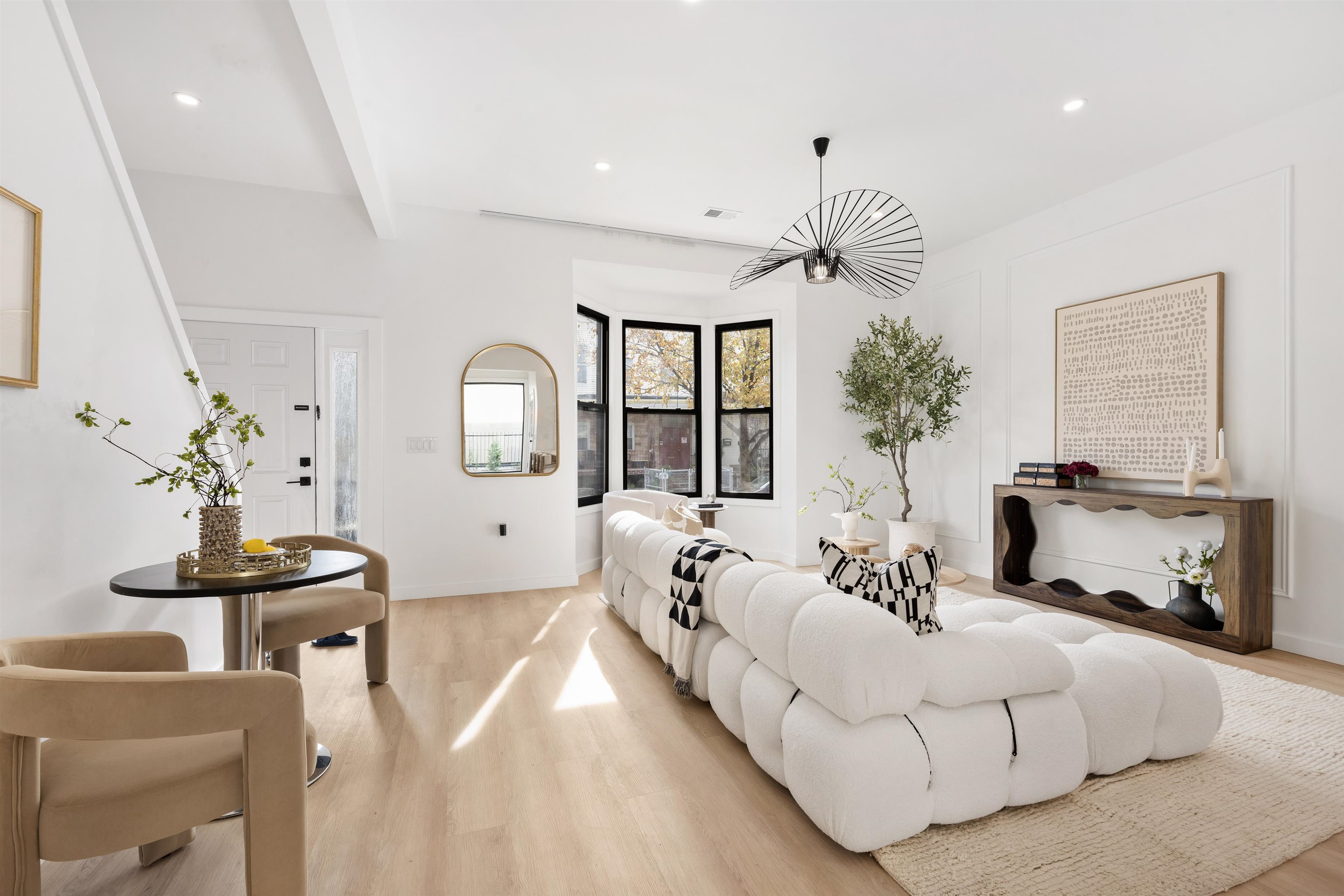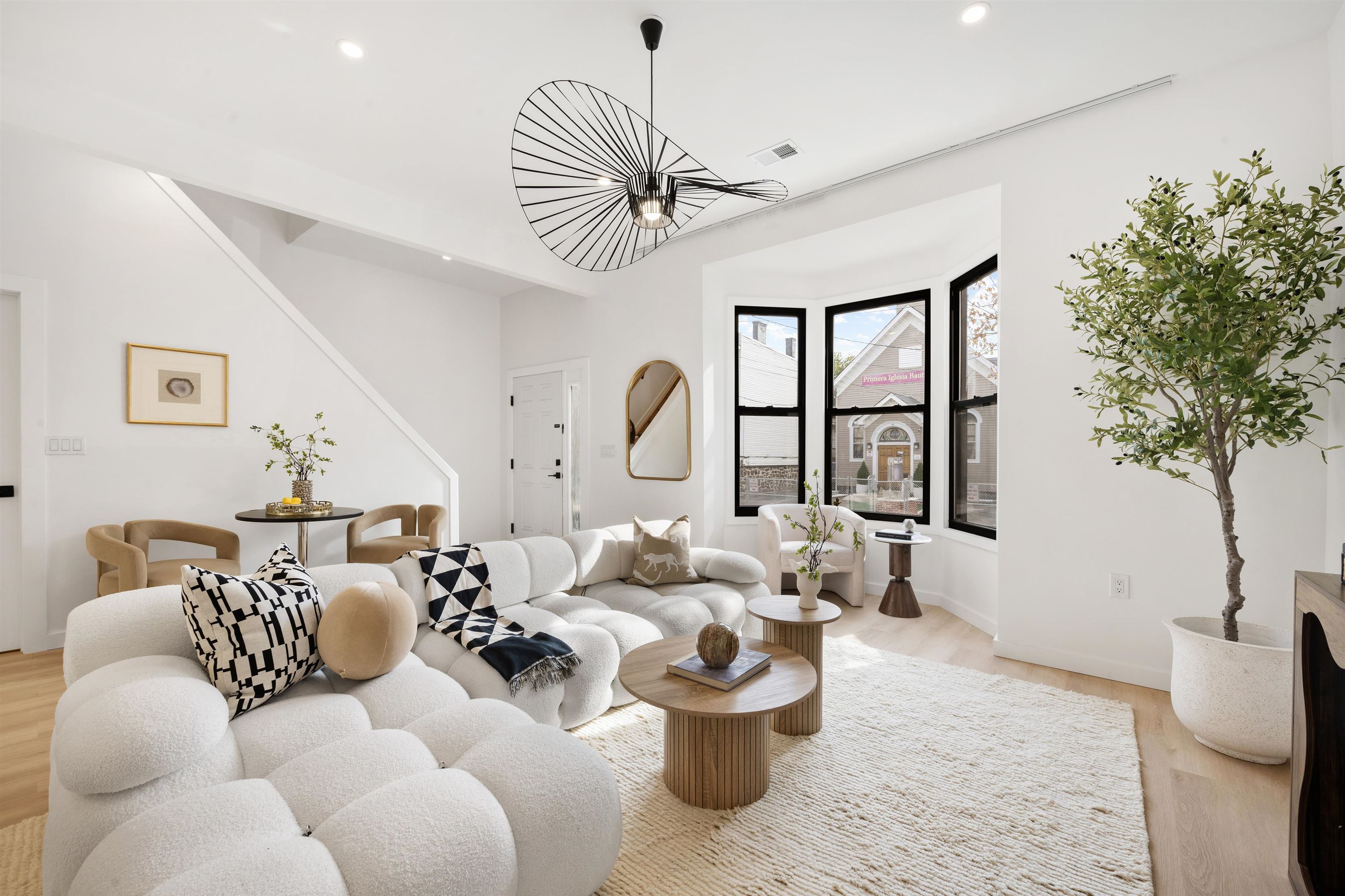 Welcome to this fully reimagined, completely renovated, single-family row house in the heart of Union City. Taken down to the studs and rebuilt in 2025, this home offers the best of modern living with brand-new systems throughout—including roof, HVAC, plumbing, and electrical. Step inside to a light-filled open floor plan with soaring 10’ ceilings and dramatic floor-to-ceiling windows. The Scandinavian-inspired living and dining areas flow seamlessly into the sleek kitchen, while the main level also features a spa-like full bath with a smart toilet and oversized walk-in shower. Upstairs, you’ll find three comfortable bedrooms and a stylish full bath with a smart toilet and a tub/shower combo. The finished basement provides additional living space, perfect for a family room, gym, or office. A fenced-in backyard offers private outdoor enjoyment, completing this thoughtfully designed home. Nestled just steps from Washington Park and Firefighters Memorial Park—where you can swim while taking in sweeping NYC skyline views—this home is surrounded by everything that makes Union City special. Enjoy morning coffee at a local café, stroll to neighborhood shops, or explore the area’s eclectic mix of restaurants. Known for its welcoming spirit, diverse character, and easy access to NYC, Union City offers the perfect blend of community charm and city convenience.