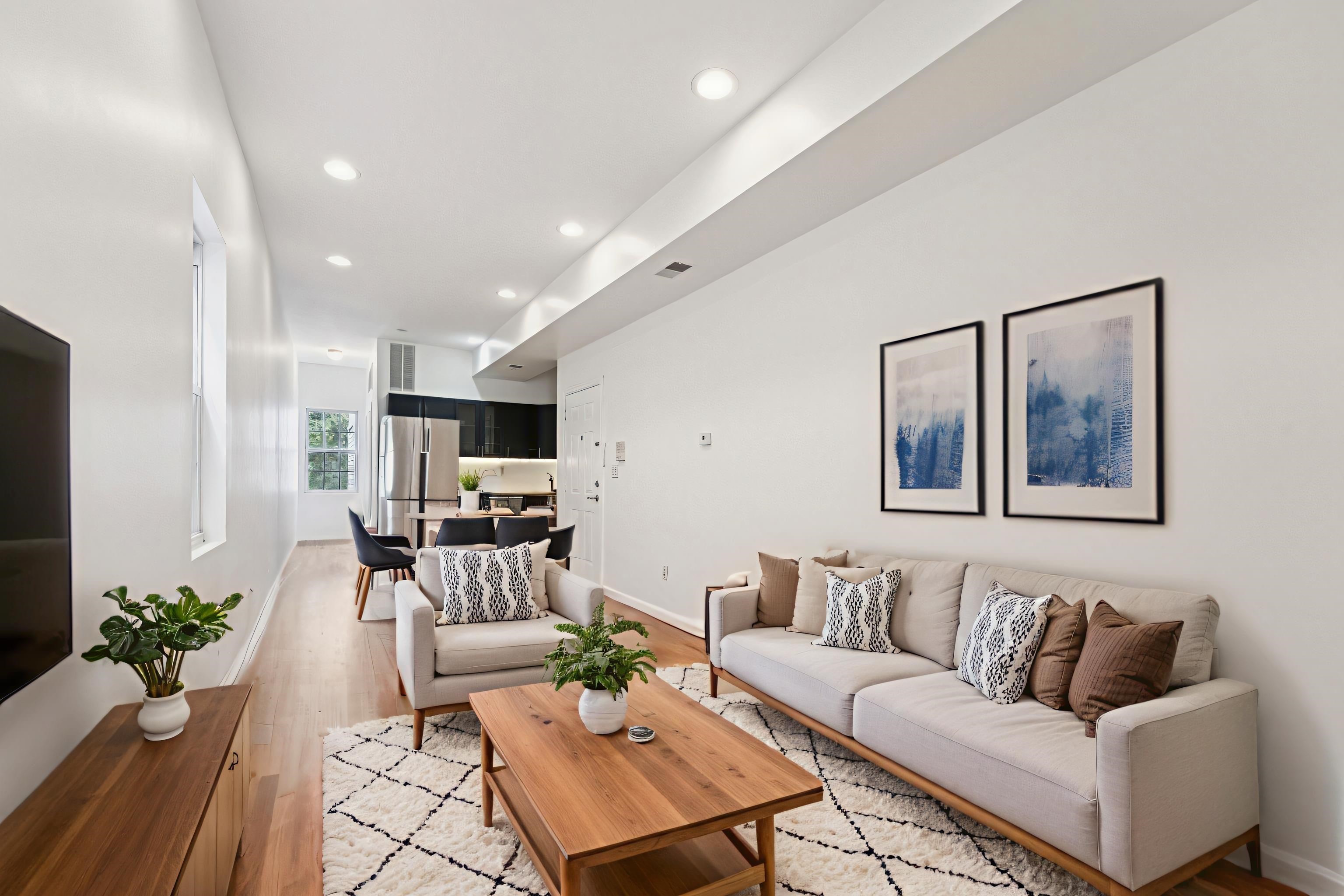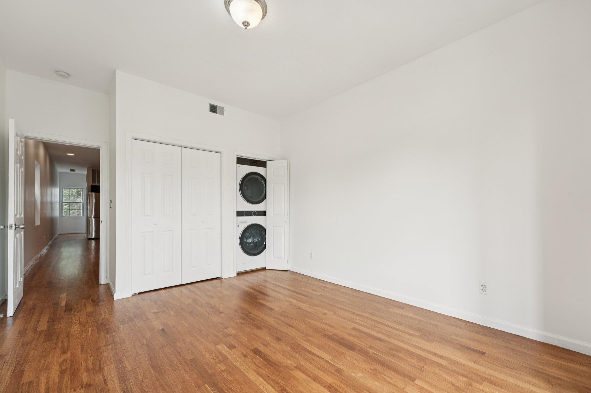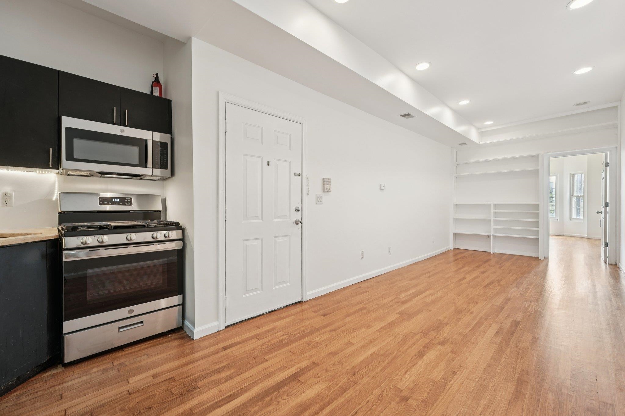 Lovely, 2-bedroom condo located in the heart of Jersey City Heights. This unit features Central Air, newly refinished hardwood floors, a new dishwasher, stove, and microwave. The kitchen and bath boast stone countertops. The large primary bedroom is filled with natural light and has an in-unit washer and dryer. The second bedroom offers a pleasant balcony nestled among the trees. Additionally, the owner also enjoys a separate storage space perfect for your bikes and extra belongings. Easy access to transportation to NYC, downtown JC, or Hoboken is available. The bus is just outside, or just go down Congress St, where you will find the light rail elevator, which connects to the Hoboken light rail and PATH trains. Short distance from Fisk Park, which offers sweeping views of NYC and hosts a thriving farmers' market. This location is ideal if you're looking for a quieter lifestyle, with access to wonderful restaurants, shops, and music, while still being close to NYC.