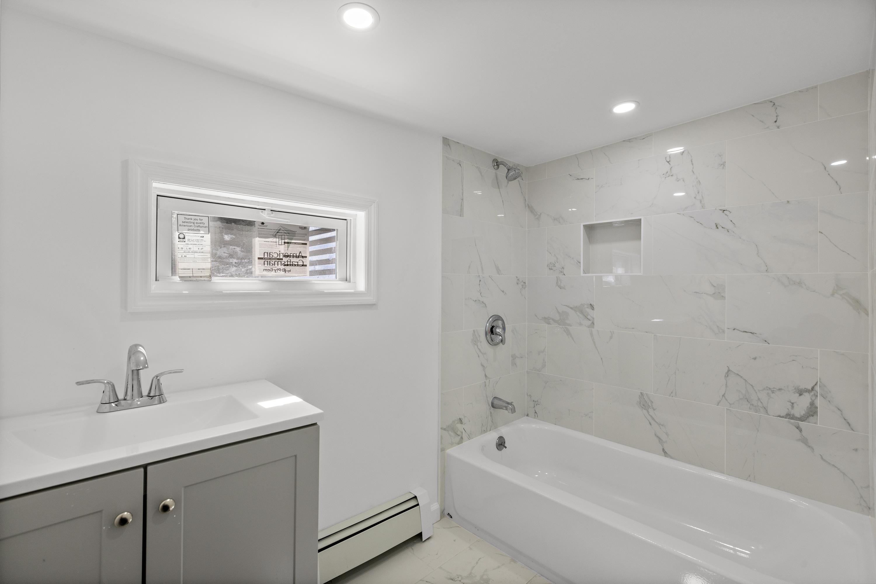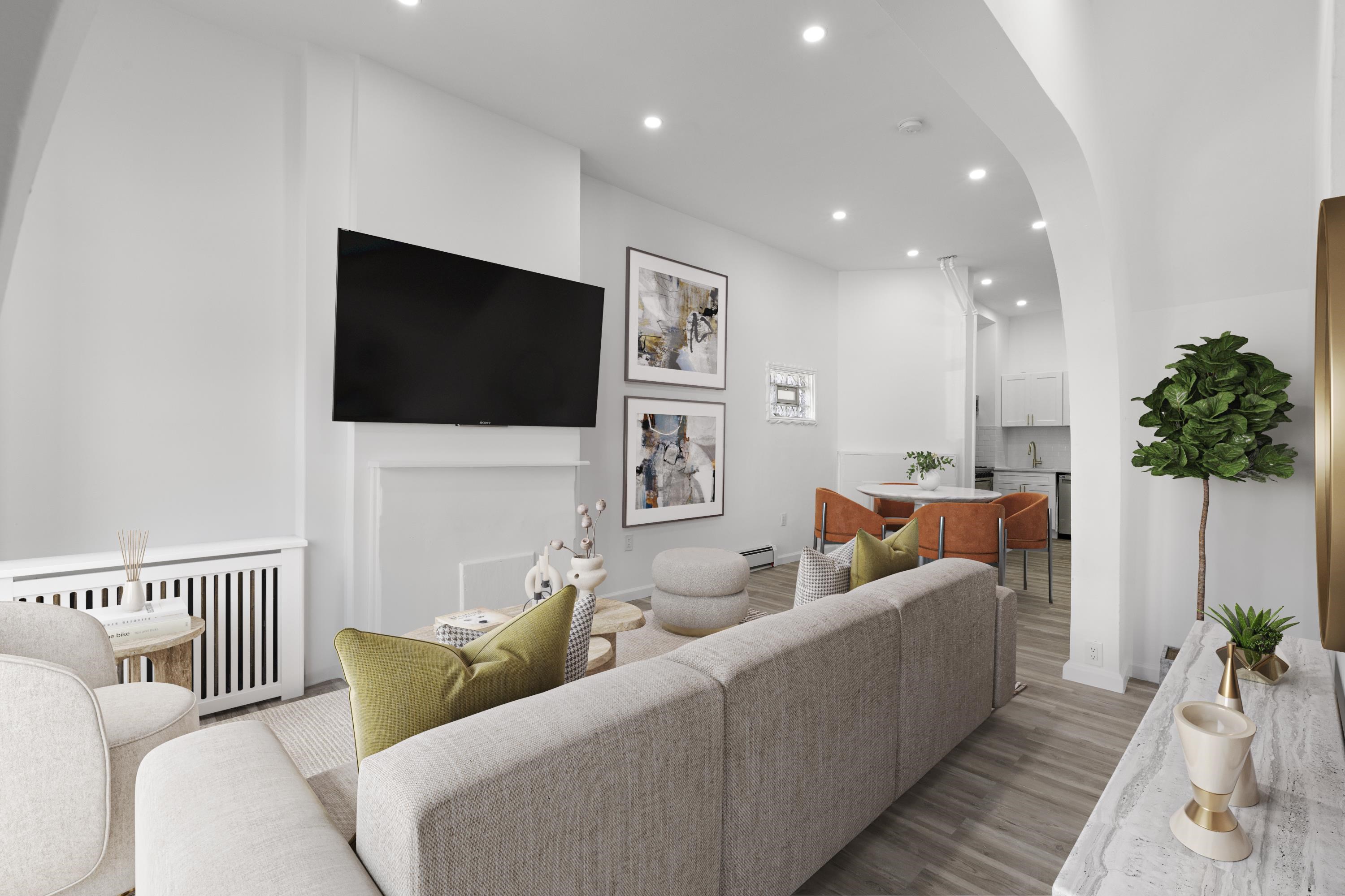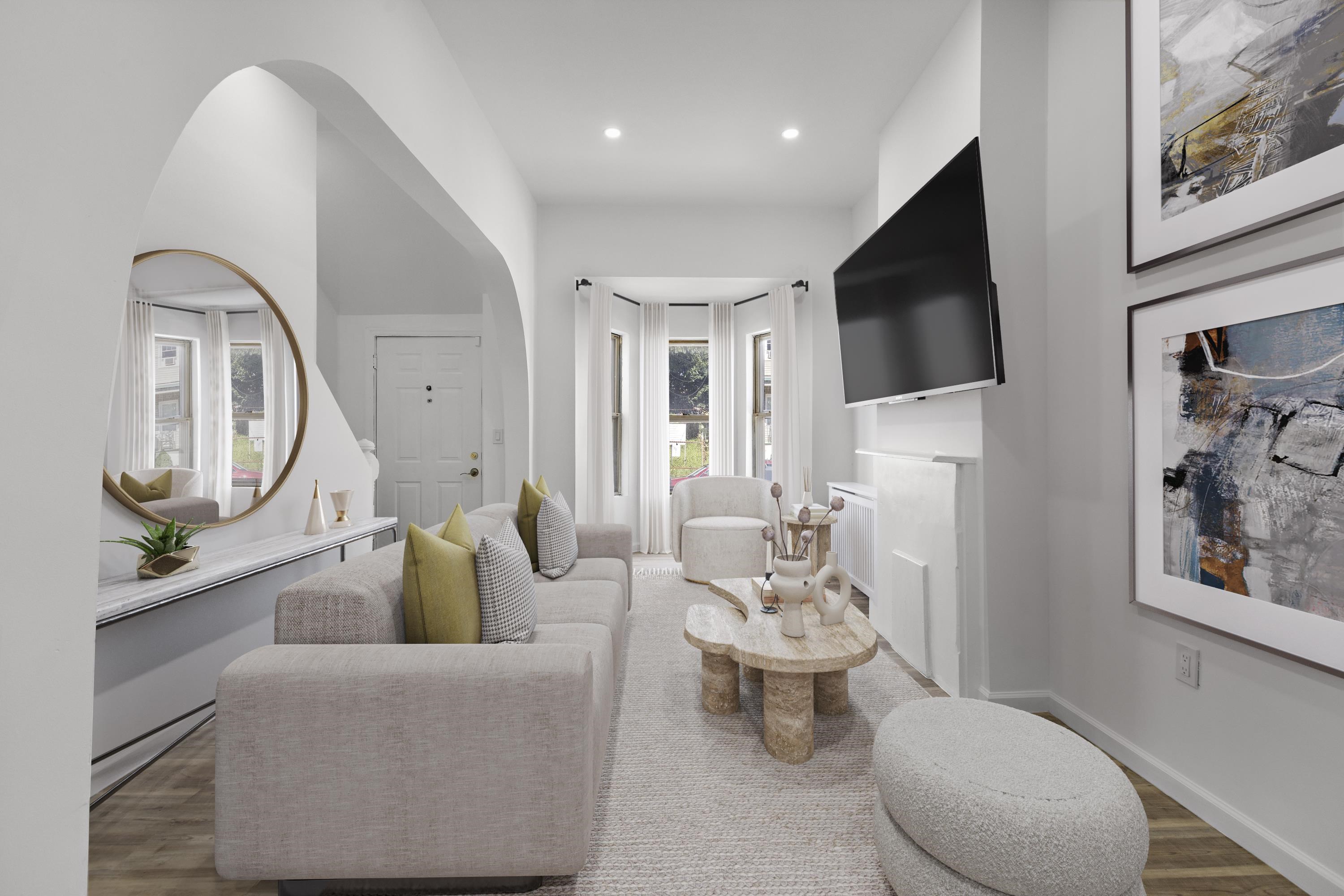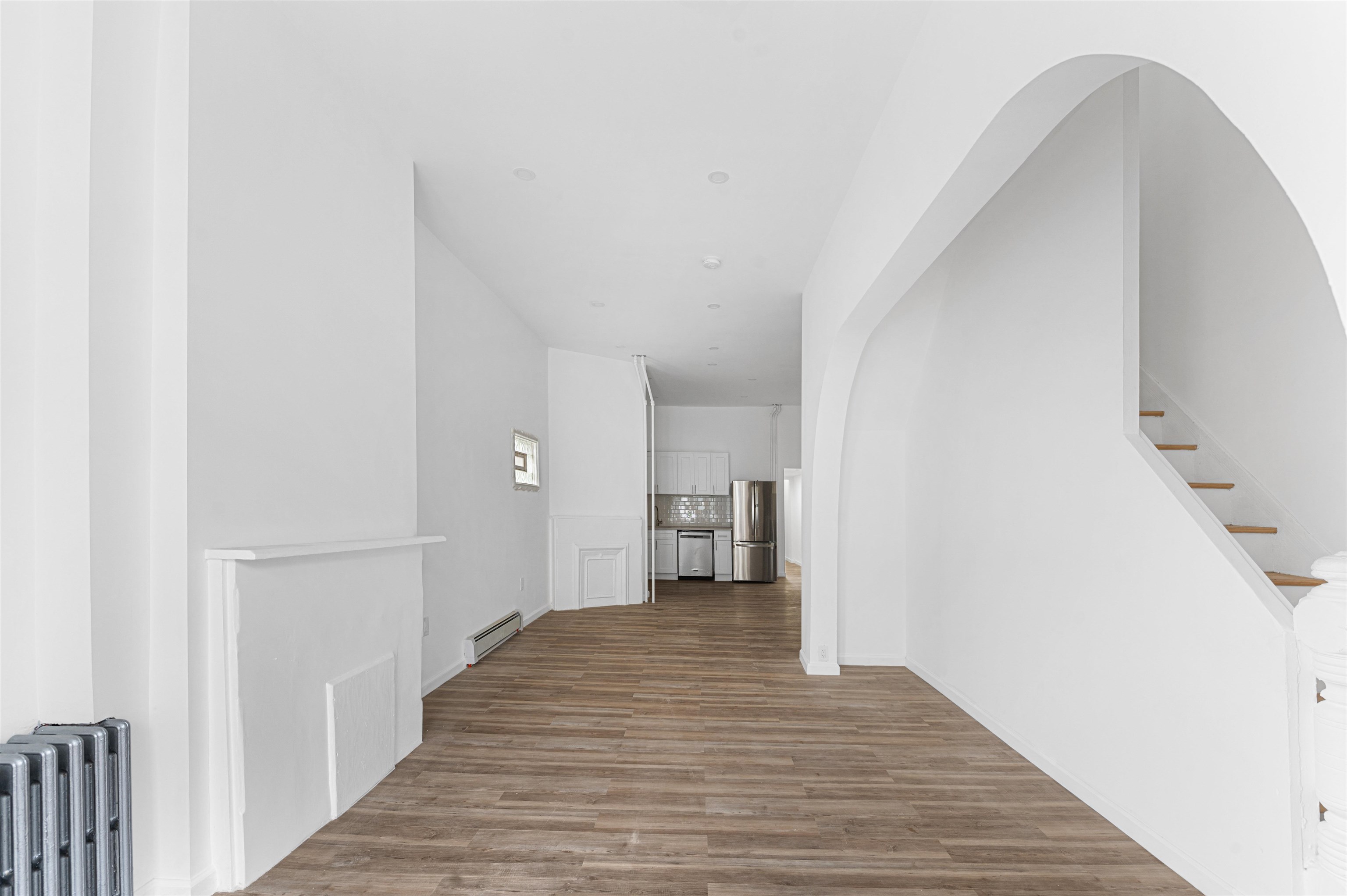 Welcome to 246 Clerk Ave, a beautifully renovated 4-bedroom, 2-bathroom single-family home nestled in the heart of Bergen-Lafayette, Jersey City. Step inside to be greeted by elegant arched entryways that immediately set the tone for the home's distinctive character. The bright and spacious living area features sleek luxury vinyl plank flooring and two charming fireplaces, creating a cozy yet refined ambiance. The open-concept layout seamlessly connects the living and dining areas to a modern kitchen, complete with pristine white cabinetry, stainless steel appliances, and a chic backsplash—ideal for both entertaining and family gatherings. Each bedroom is filled with natural light and offers generous closet space, providing a serene retreat. The two updated bathrooms feature sleek, contemporary fixtures and elegant tile work, providing a perfect blend of comfort and modern style. Step outside to a private backyard oasis surrounded by lush greenery—ideal for summer barbecues, outdoor activities, or cultivating your own garden. Whether you’re seeking a tranquil retreat or a lively gathering space, this adaptable area is ready to meet your needs. The partially finished basement, equipped with washer and dryer hookups, offers untapped potential for further customization. Located just a block from the Garfield Ave Light Rail station, providing easy access to major public transportation hubs, including Historic Downtown, Journal Square, Hoboken, WTC, and Manhattan. Minutes from Berry Lane Park and the vibrant Downtown Jersey City, where you’ll find superb dining, nightlife, shopping, and more. Ideal for first-time buyers, 246 Clerk Ave offers a move-in-ready experience without the hassle of extensive renovations. Don’t miss the opportunity to make this beautifully renovated gem your new home!