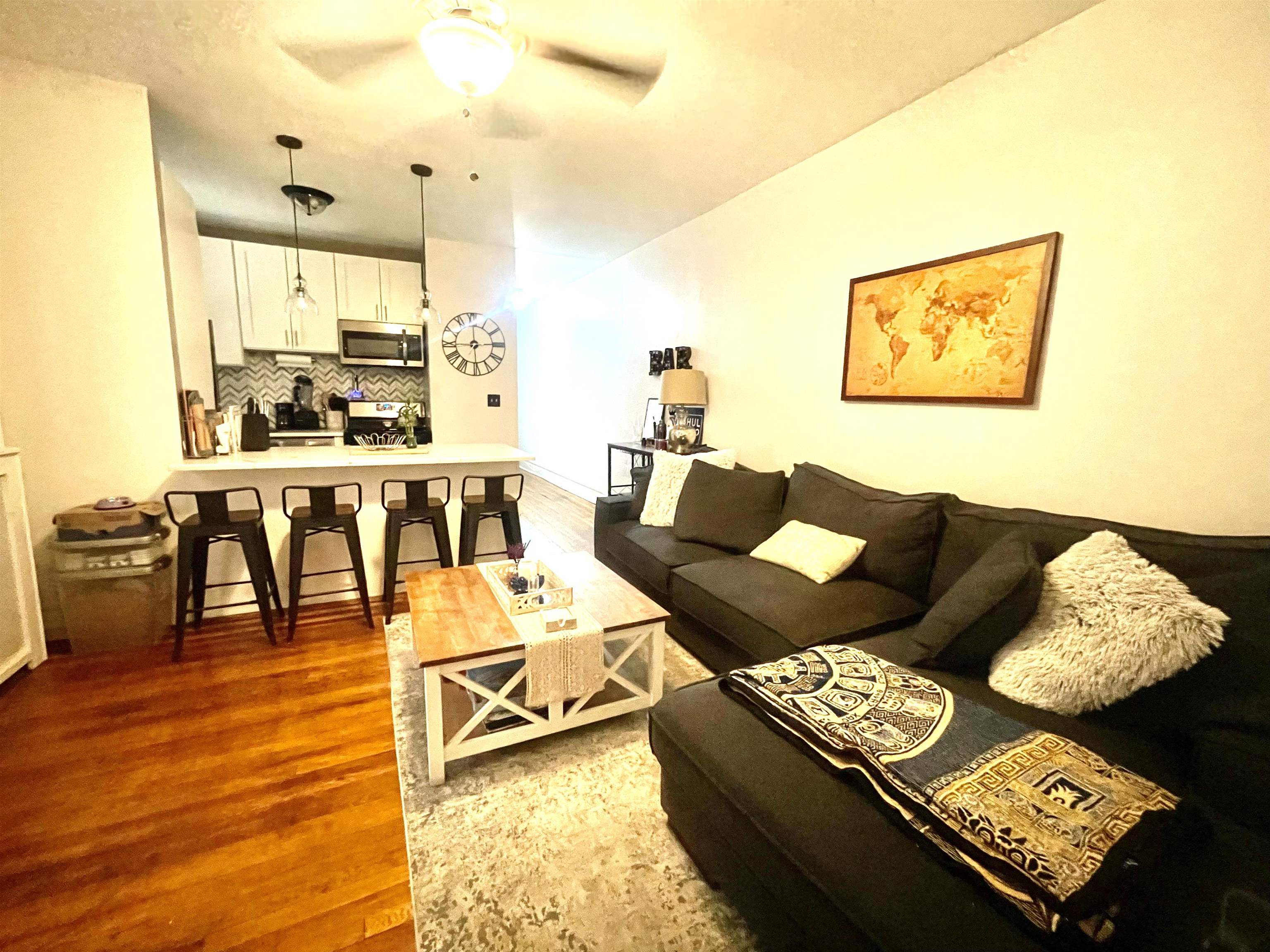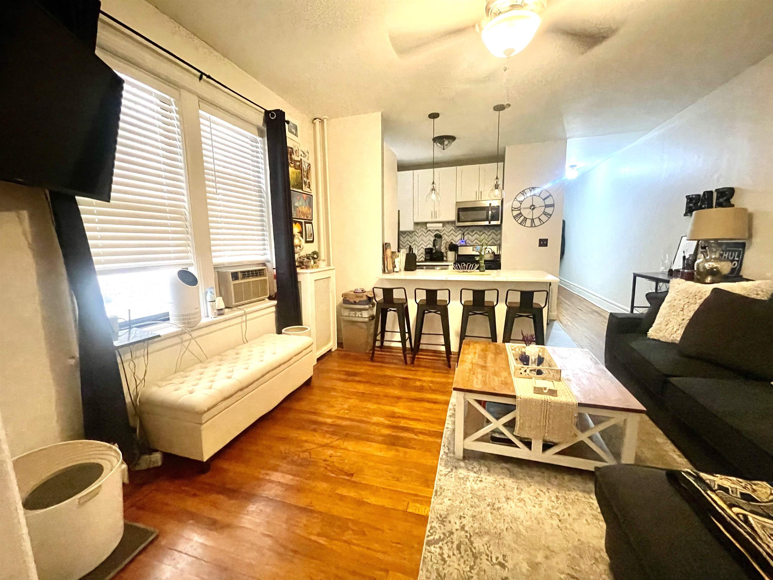 Charming 2-bedroom, 1-bath first-floor condo in desirable West Bergen. The open-concept layout features an updated kitchen with stainless-steel appliances and a convenient breakfast bar, flowing into the living and dining rooms — ideal for everyday living and entertaining. Beautiful hardwood floors and oversized windows flood the space with natural light. Both bedrooms are generously sized, offering comfort and storage. Tastefully renovated a few years ago and delivered in move-in condition. Enjoy easy access to major transit options, neighborhood shops and restaurants — perfect for commuters to the city. Ideal for first-time buyers or investors seeking a turnkey unit.