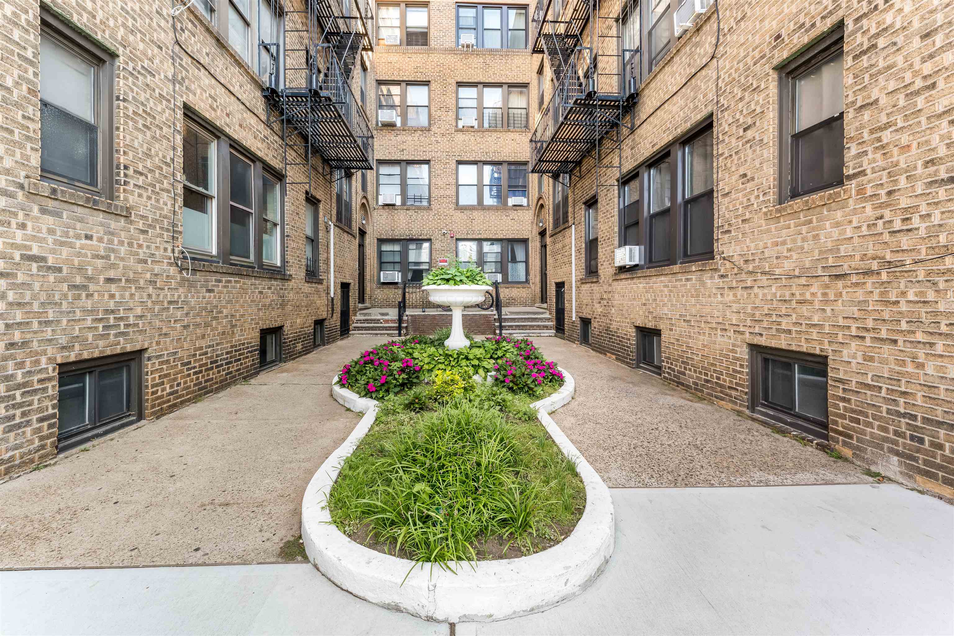 Welcome to Residence D4 — a bright and spacious one-bedroom home where thoughtful upgrades meet the timeless charm of 1930s architecture. This flexible, convertible two-bedroom apartment greets you with a gracious entry foyer, complete with multiple oversized closets offering exceptional storage. Beyond, elegant architectural archways lead you into a large living and dining area, ideal for both everyday comfort and entertaining. Soaring ceilings enhance the sense of space, while the home’s coveted corner positioning allows natural light to pour in throughout the day. A window is found in every room illuminating each area with warmth and character. The generously sized bedroom easily accommodates a king-size bed with plenty of room to spare for a home office or additional furnishings. The inviting eat-in kitchen is a true highlight, featuring granite countertops, some stainless appliances, and a spacious chef’s pantry. The recently updated bathroom offers a spa-like experience with a sleek floating vanity, modern washbasin, and a tub/shower combination. Set just three flights up, this top-floor residence provides exceptional privacy and an abundance of natural light. The building itself is rich with Art Deco details, from its marble-accented common areas to original floral ceilings all lovingly maintained to preserve its historic character. Pet-friendly and complete with a convenient common laundry room, the building is ideally situated in the heart of Union City with easy access to New York City and other desirable surrounding areas via bus or light rail. Surrounded by dining, shops, and everyday conveniences, Residence D4 offers the perfect blend of charm, comfort, and convenience.