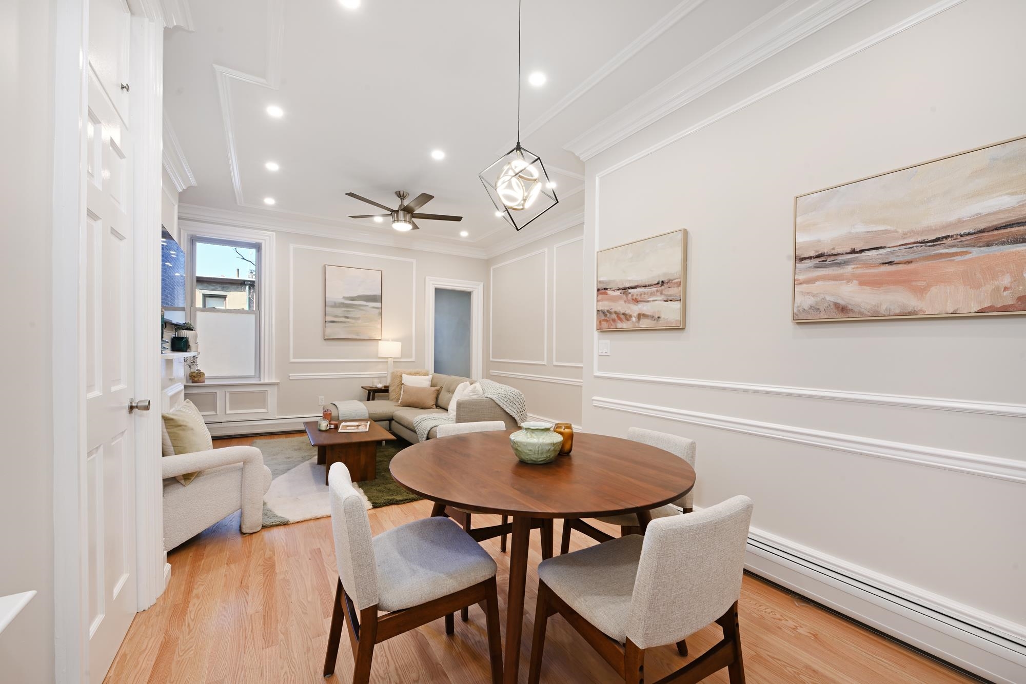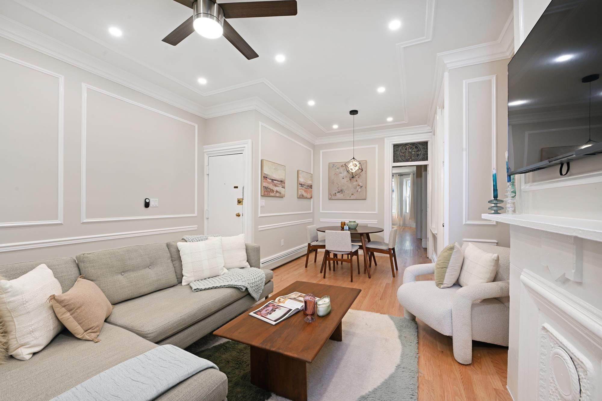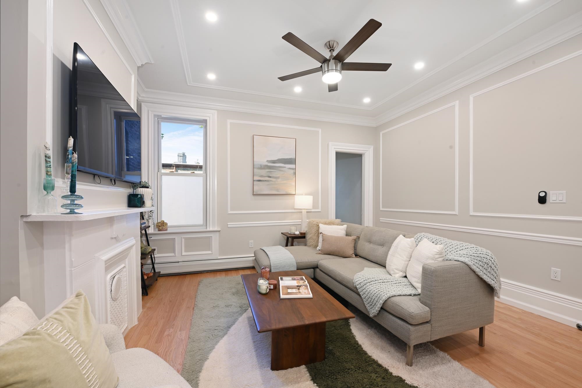 Step into timeless charm paired with today’s comforts in this beautifully updated 1-bedroom plus den residence. The oversized bedroom, spacious living and dining rooms, bonus den, and generous closets ensure you’ll never run short on space. The sleek chef’s kitchen is as functional as it is stylish, with abundant cabinetry, a DeLonghi stove, and Bosch refrigerator and dishwasher—making both cooking and cleanup effortless. Character abounds with a bay window, hardwood floors, decorative fireplace, and detailed crown molding and trim throughout. Added conveniences include secured basement storage and in-building washer/dryer. Nestled in uptown Hoboken, this fantastic home offers easy access to transportation, dining, shopping, and everything the city has to offer. Don’t miss the chance to make it yours!