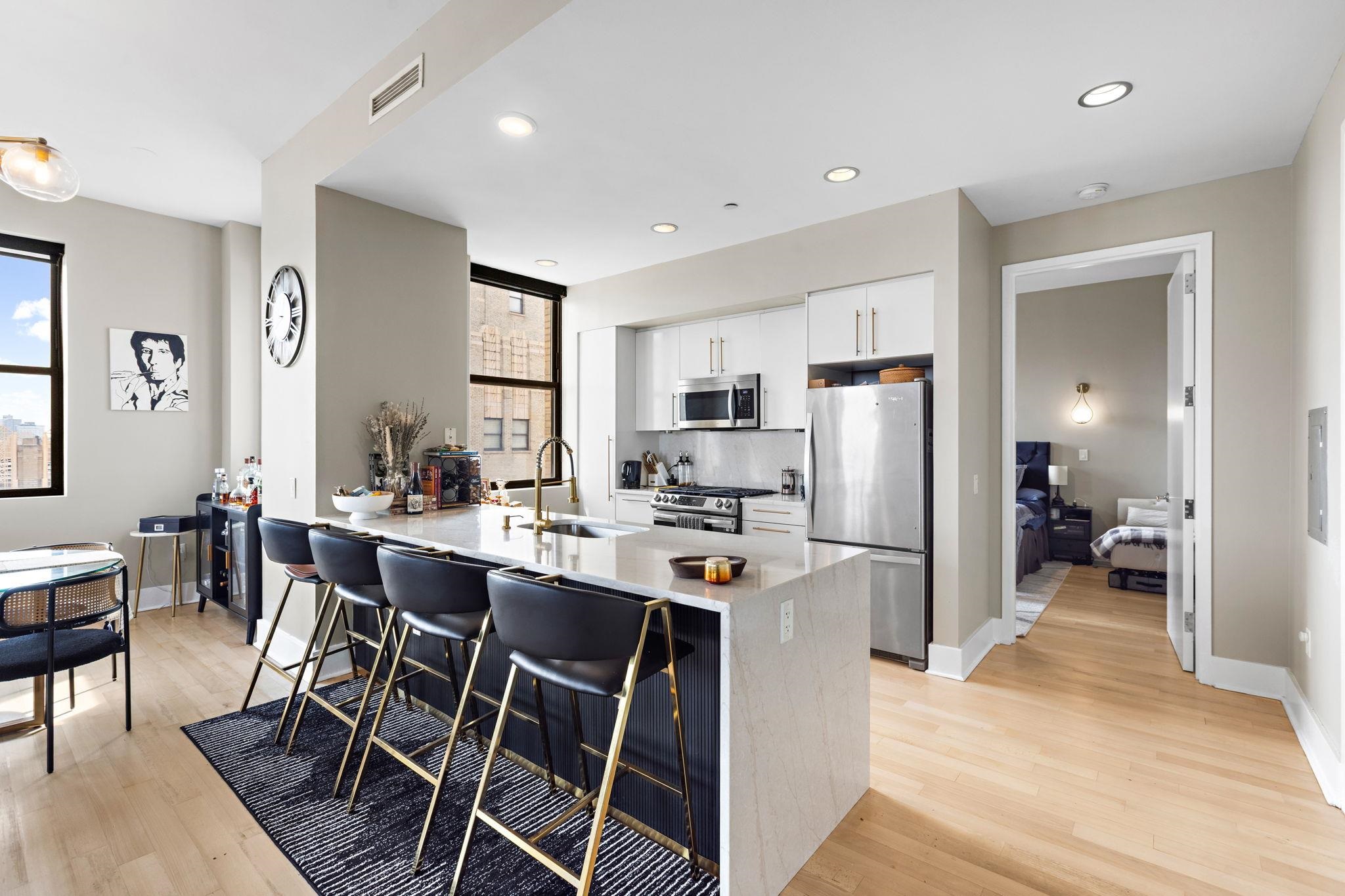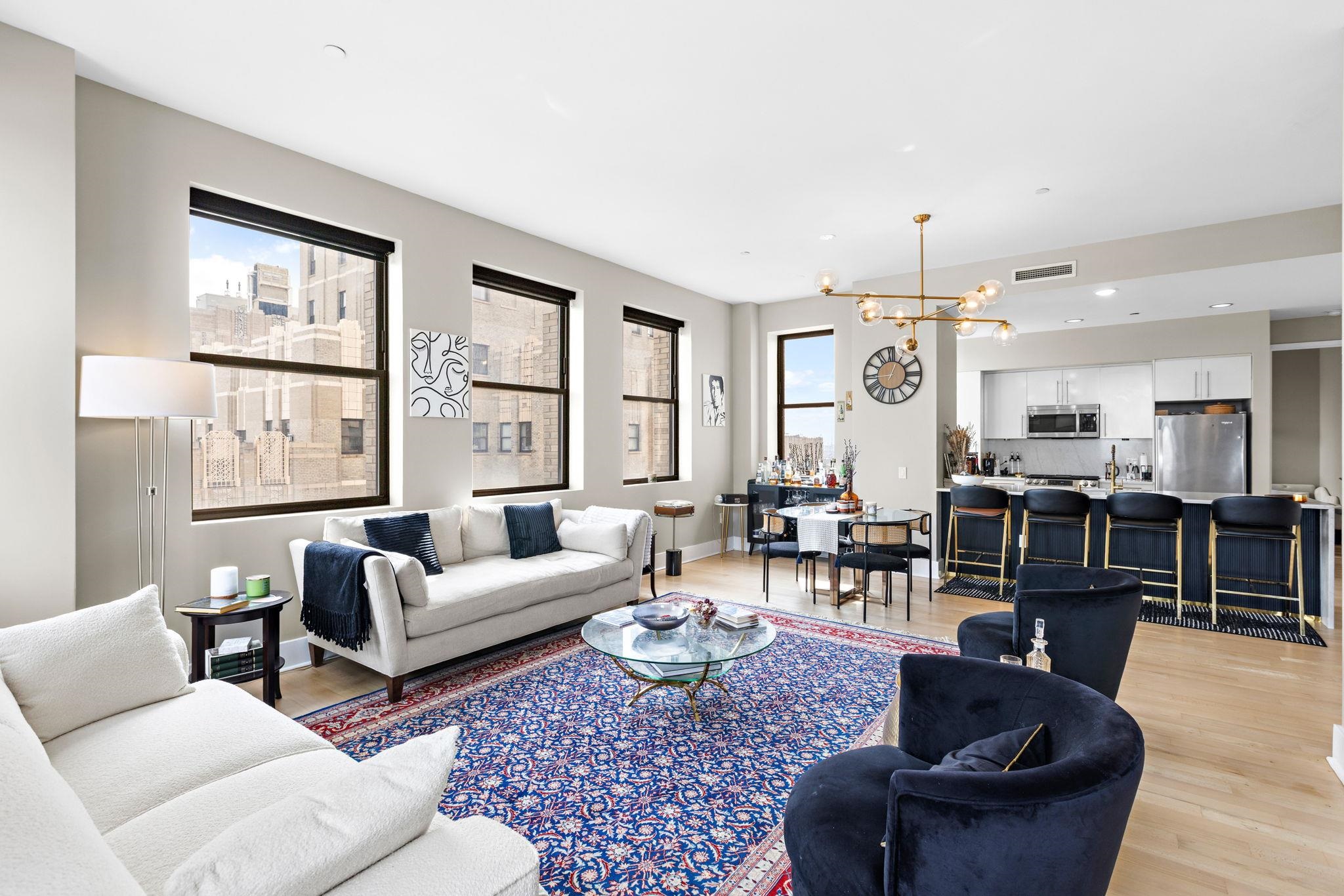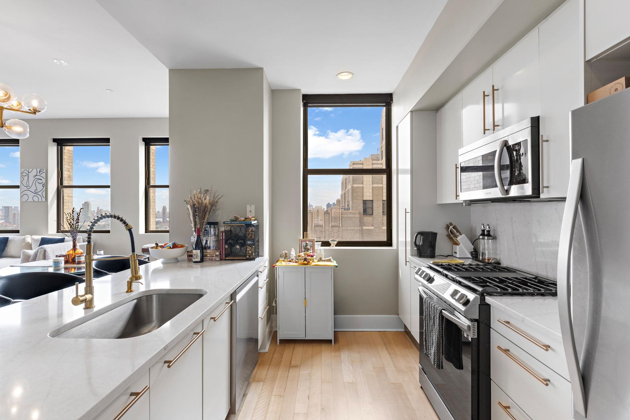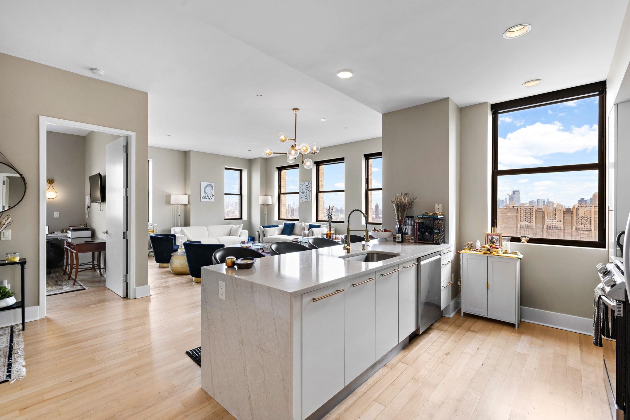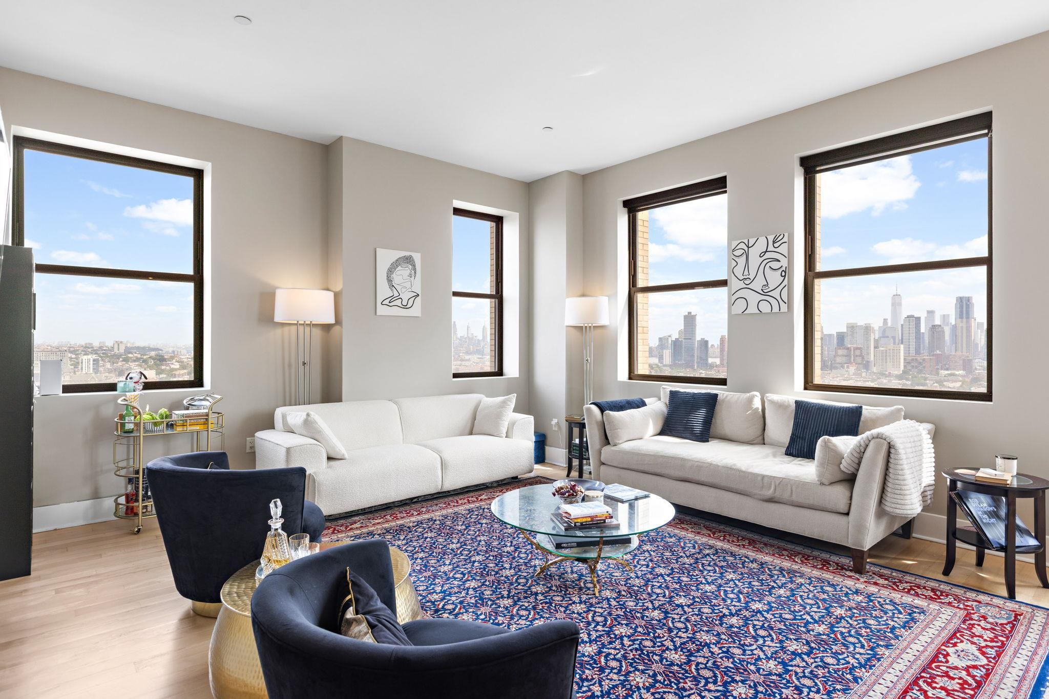 One-of-a-kind fully renovated 2 bed corner home with stunning NYC views in the highly desirable luxury Beacon Rialto building. Newly renovated kitchen with custom white cabinetry, quartz countertops, stainless steel appliances and a full island. Open floor plan offers a spacious living area with direct NYC views from the WTC to GW Bridge. The expansive primary bedroom has a walk-in closet and ensuite bathroom with double vanities and soaking tub. The second bedroom and second full bath are on the opposite side of the home for maximum privacy. The home also features hardwood floors, in-unit washer/dryer, central air, and private deeded storage #CS111. The prestigious Beacon Rialto community offers 24/7 doorman and concierge, gym, indoor pool, jacuzzi, sauna, library, game/poker room, community room, playroom, theatre, 13 acres of gated grounds, an onsite convenience store and a shuttle to the Path. Parking is available onsite for an additional fee.