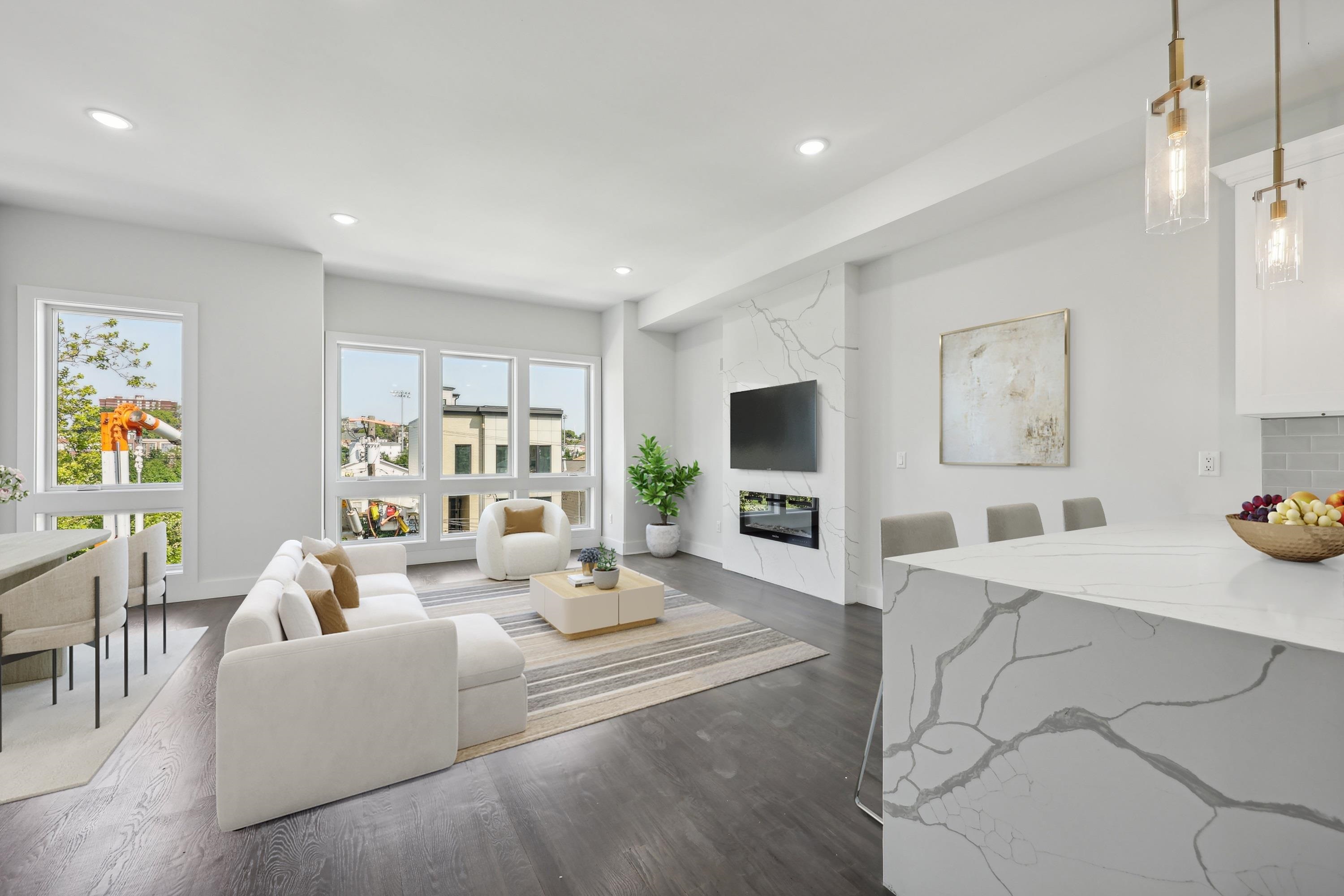 There’s nothing out there quite like this — pure happiness wrapped in a home you’ll love to live in. The last of its kind, perched on the top floor with a magical private roof deck. Located in the heart of the Bergen Lafayette neighborhood, it is a blend of old-world charm and modernity. This brand-new construction offers three spacious bedrooms and two full baths — the perfect blend of comfort, tranquility, and peace of mind. Enjoy the security of a 10-year builder’s warranty at closing. Thoughtfully designed with imported tiles throughout the primary suite and guest bathroom, featuring soaring cathedral ceilings and an open-concept layout made for entertaining. The sleek waterfall quartz island seats four comfortably — a true showpiece for gatherings and everyday living.