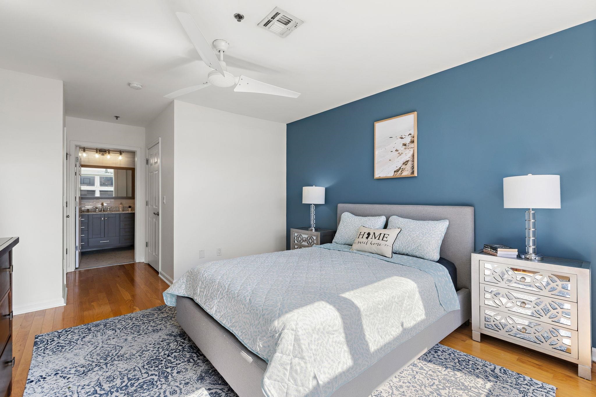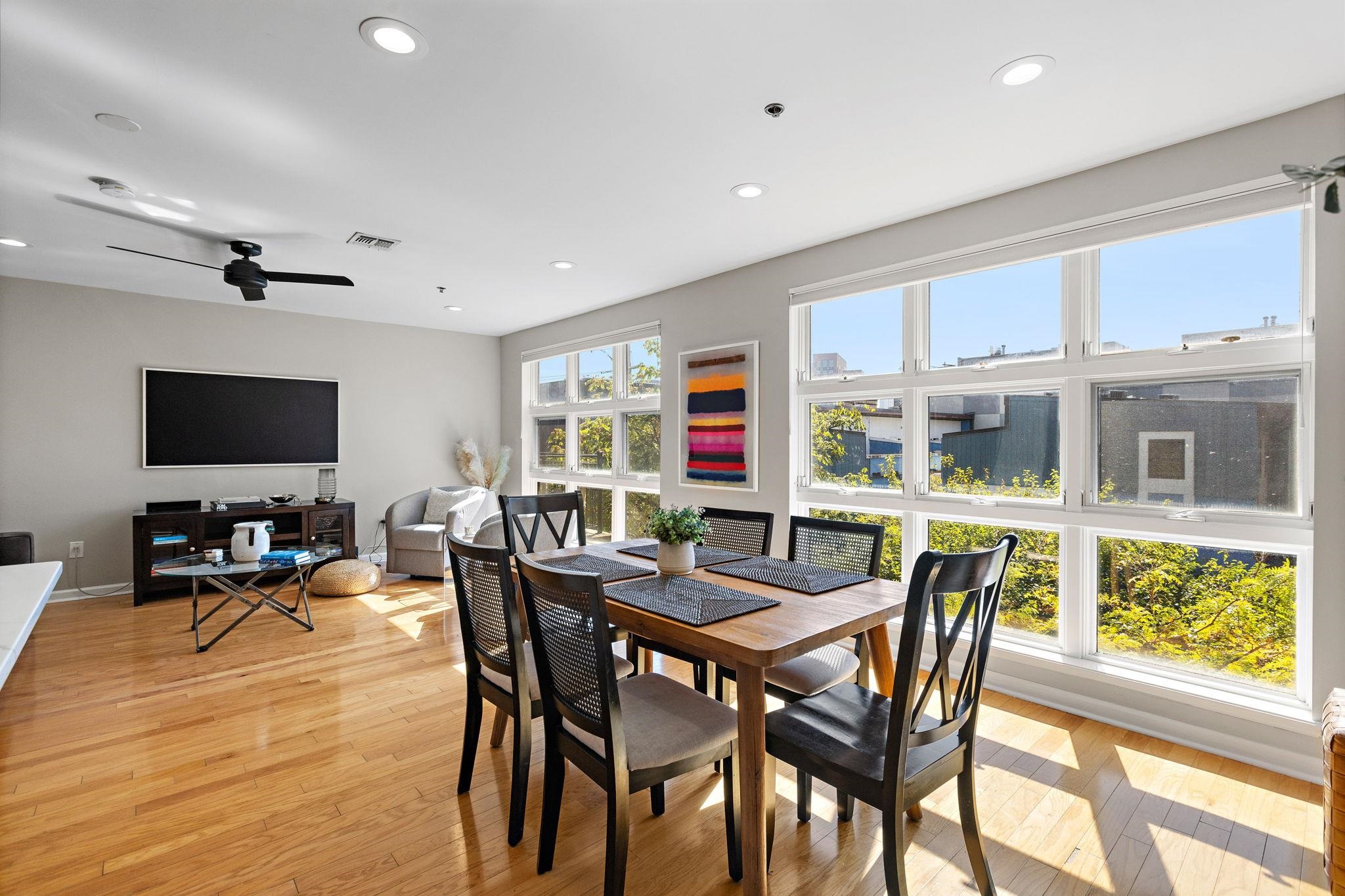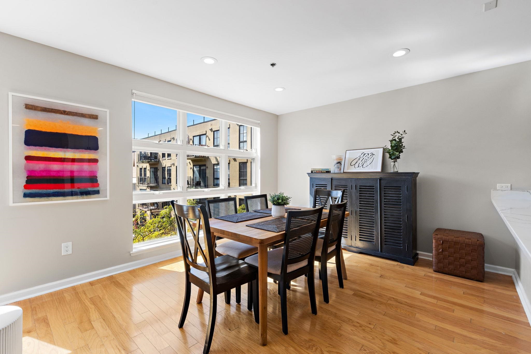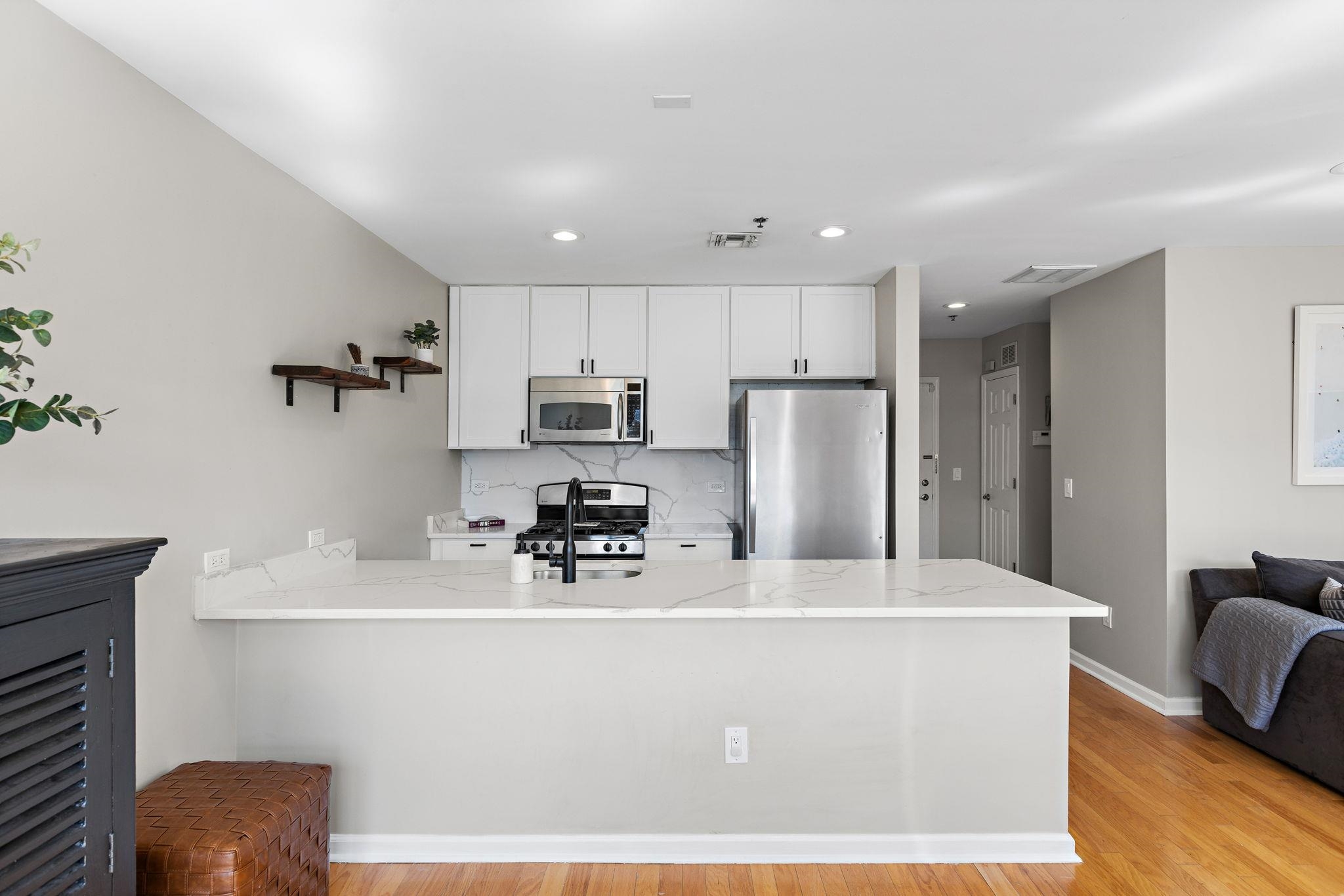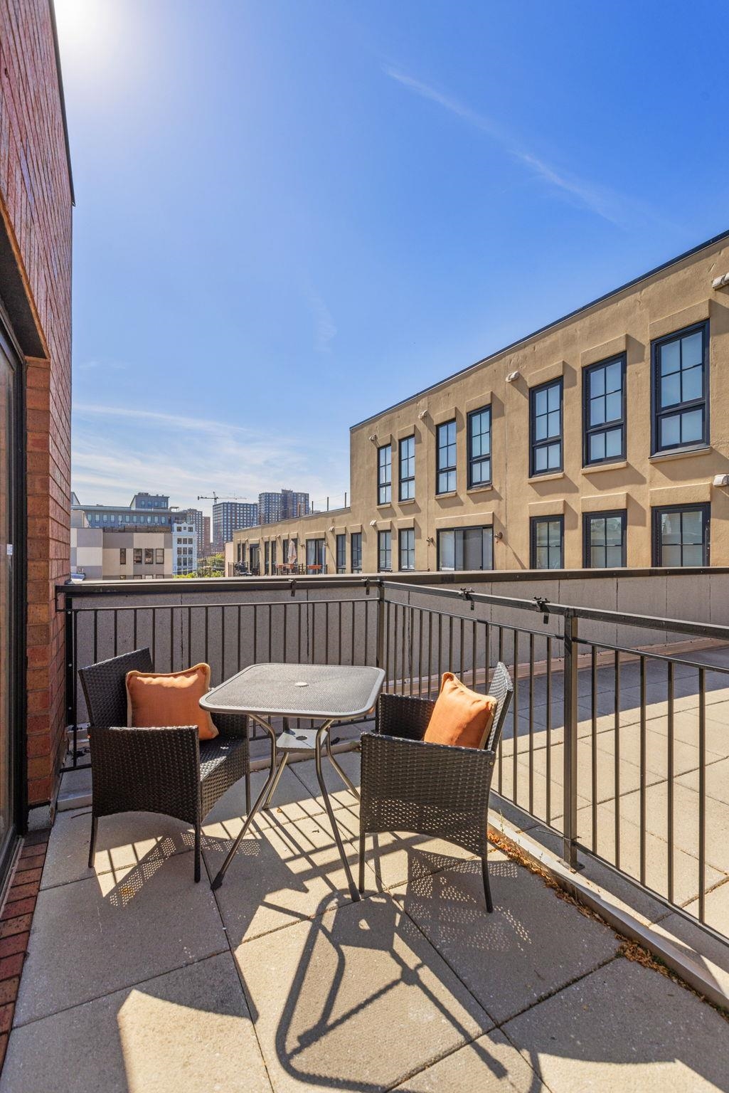 Experience elevated Hoboken living in this striking top-floor duplex residence at Harrison Court, a sought-after steel-and-concrete elevator building known for its modern amenities and prime location near Southwest Park. Residence 410 offers 2 bedrooms, 2 baths with 1366 square feet of living space and onsite garage parking. Step into an open, sunlit living space anchored by floor-to-ceiling windows that bring the outdoors in and fill the home with natural light. The chef-inspired kitchen features sleek quartz countertops, a large center island, stainless steel appliances, and custom cabinetry — creating the perfect hub for cooking, dining, and entertaining. Enjoy a seamless flow from your spacious living room and designated dining area & your kitchen without missing a beat. The main level also includes a renovated full bathroom, in-unit washer/dryer, and a spacious entry closet for extra storage. Upstairs, retreat to a tranquil primary suite with a beautifully updated ensuite bathroom and custom walk-in closet. The second bedroom offers versatility for guests or a home office — and opens to a private balcony where you can enjoy your morning coffee or evening relaxation. Throughout the home, hardwood floors add warmth and sophistication, while thoughtful design maximizes space and light at every turn. Residents of Harrison Court enjoy access to a fitness room, common rooftop terrace, and shared courtyard, plus secure video-monitored entry for peace of mind. This home also includes one deeded garage parking space for ultimate convenience. Set within the thriving neighborhood of Southwest Hoboken, you’re just steps from the 2nd Street Light Rail, the new Southwest Resiliency Park with pickle ball and basketball courts, and an ever-growing selection of neighborhood cafés, restaurants, and boutiques. Easy access to downtown Hoboken, PATH, and major highways make commuting a breeze-all while coming home to a peaceful, design forward space. 659 1st Street offers the perfect blend of style, comfort and convenience.