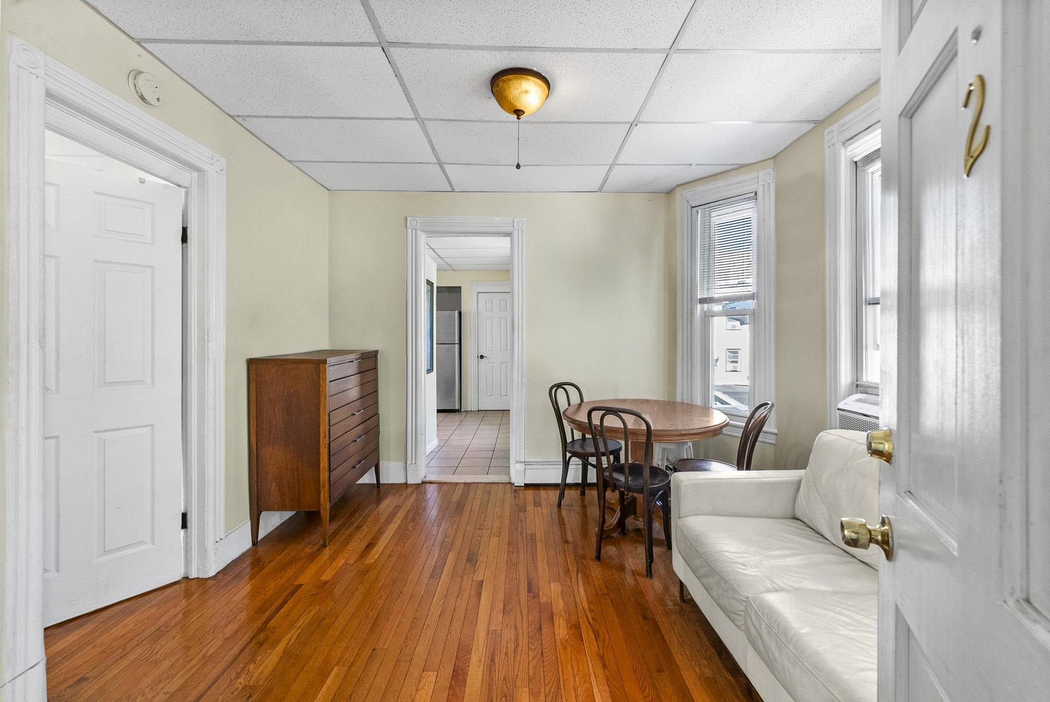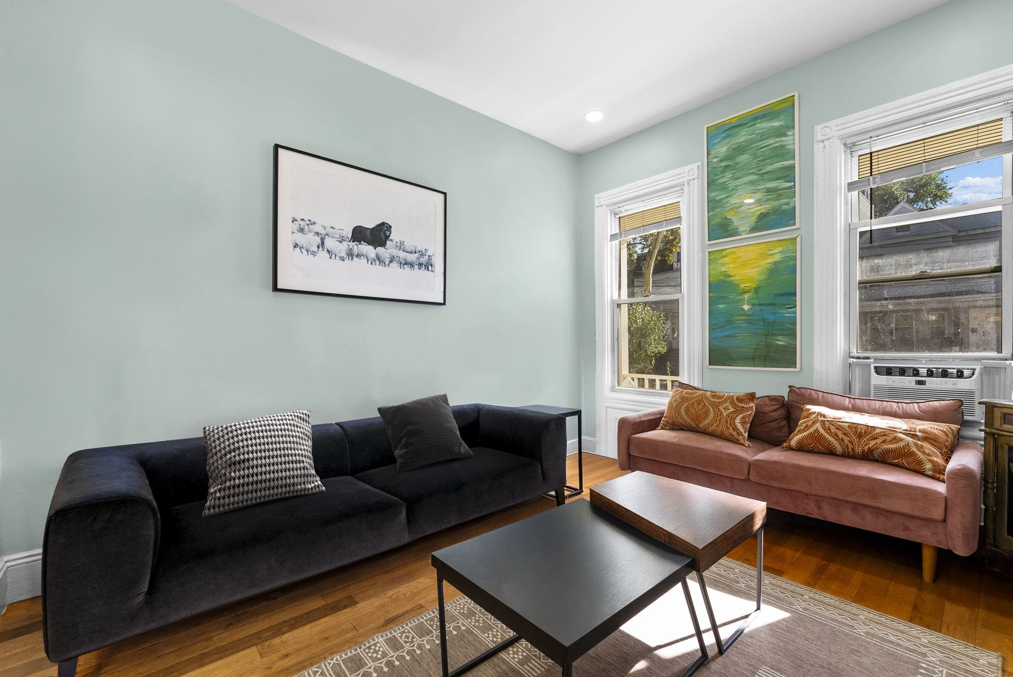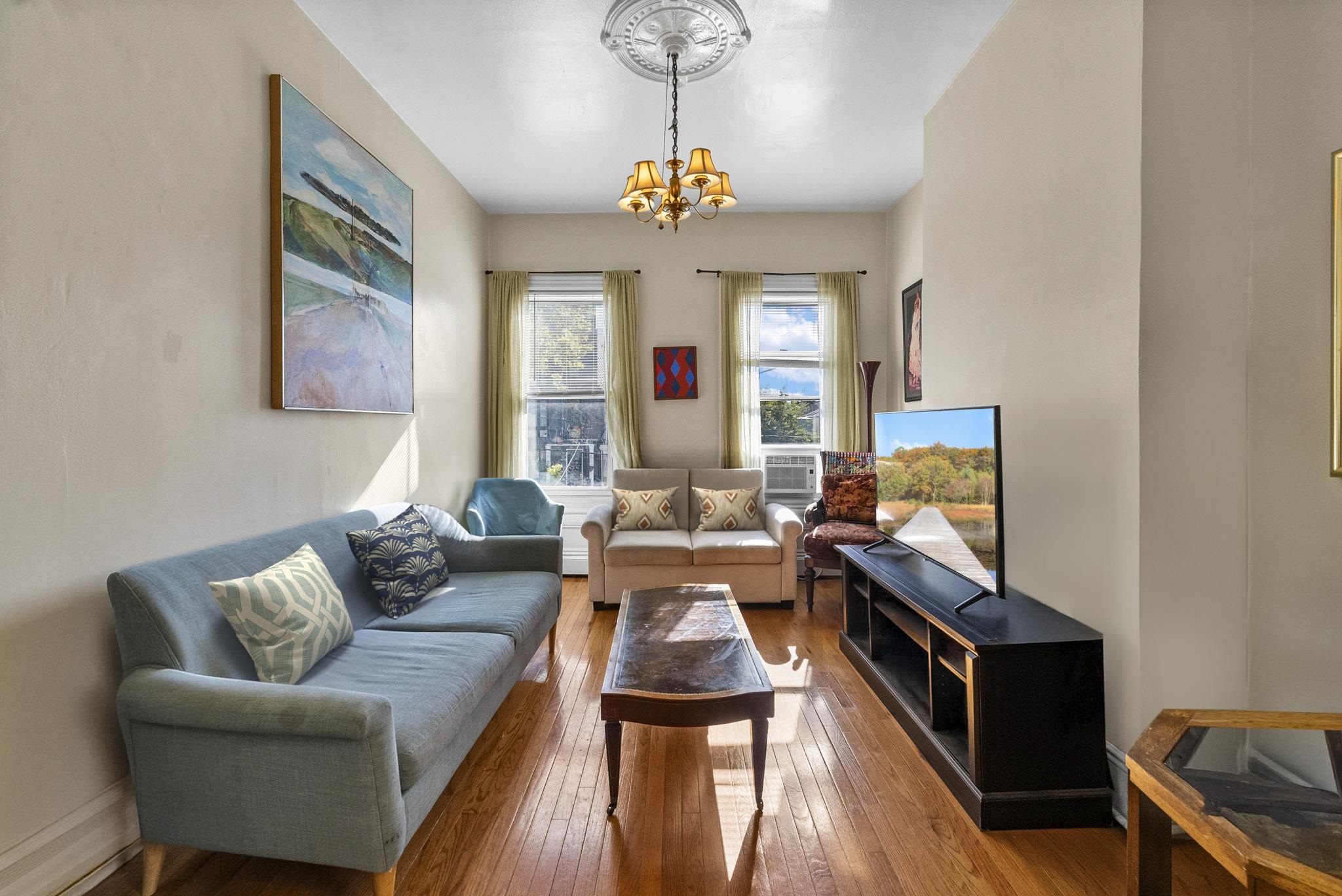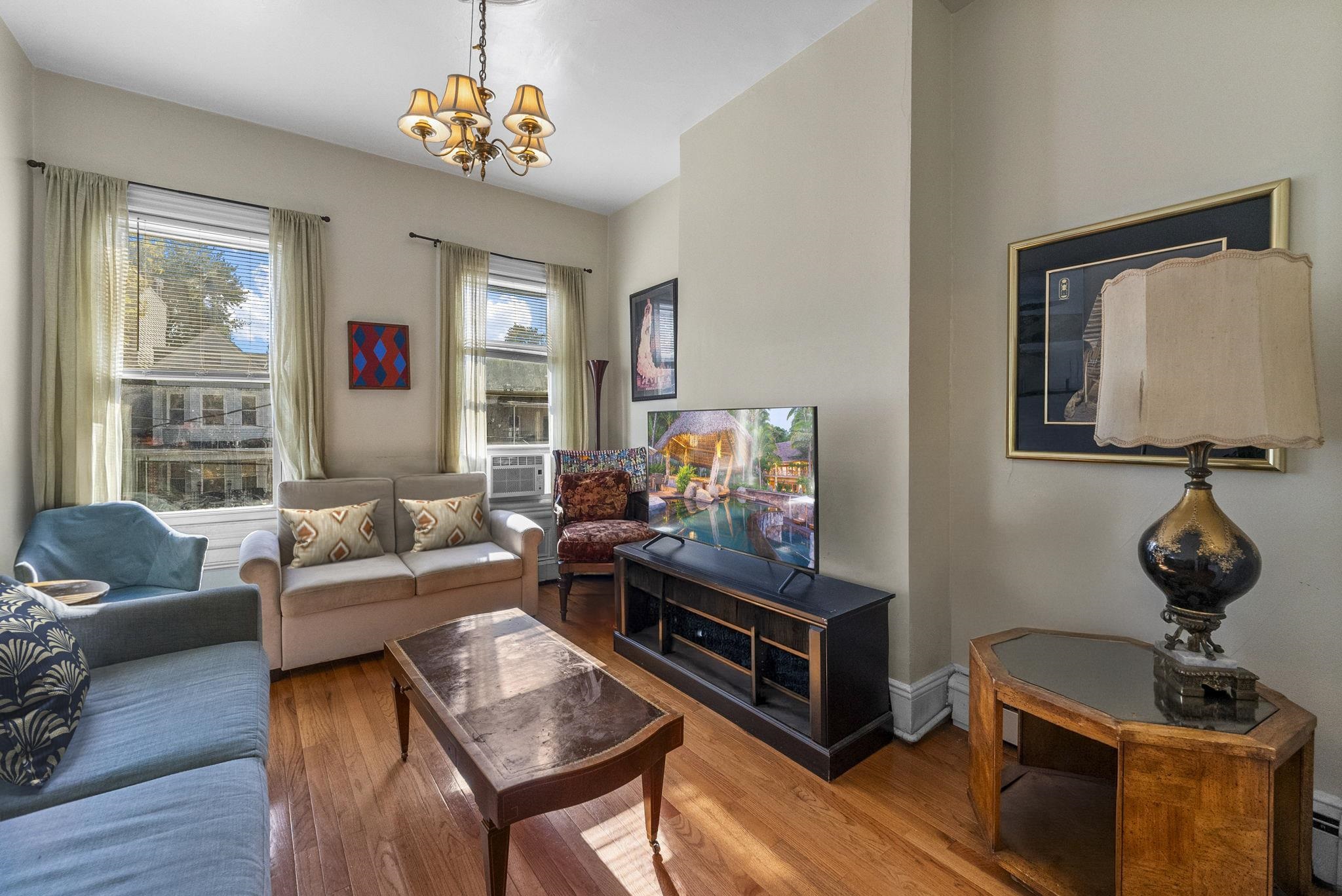 Full of warmth, character, and versatility, this sunlit two-family home offers the perfect blend of old-world charm and modern-day convenience whether you're looking to live, invest, or both. From the inviting front porch to the private backyard, this property feels like home from the moment you arrive. Inside, you'll find soaring ceilings, hardwood floors, and fireplaces on both levels that add a cozy, vintage touch. Each unit features 2 bedrooms, a full bath, a kitchen, and flexible living space ideal for multigenerational living, rental income, or future condo conversion. Upstairs also includes a bonus room perfect for a home office, music space, or extra storage. The full basement is clean and cemented great for storage or future finishing. Located just 2 blocks from the park and minutes to Lincoln Park, Berry Lane Park, and Liberty State Park, it's a walker's paradise. Commuting is a breeze with the PATH train nearby and a bus stop just half a block away. Gas heat (forced air + baseboard), public utilities, and all appliances included. A rare find with curb appeal, income potential, and timeless charm.