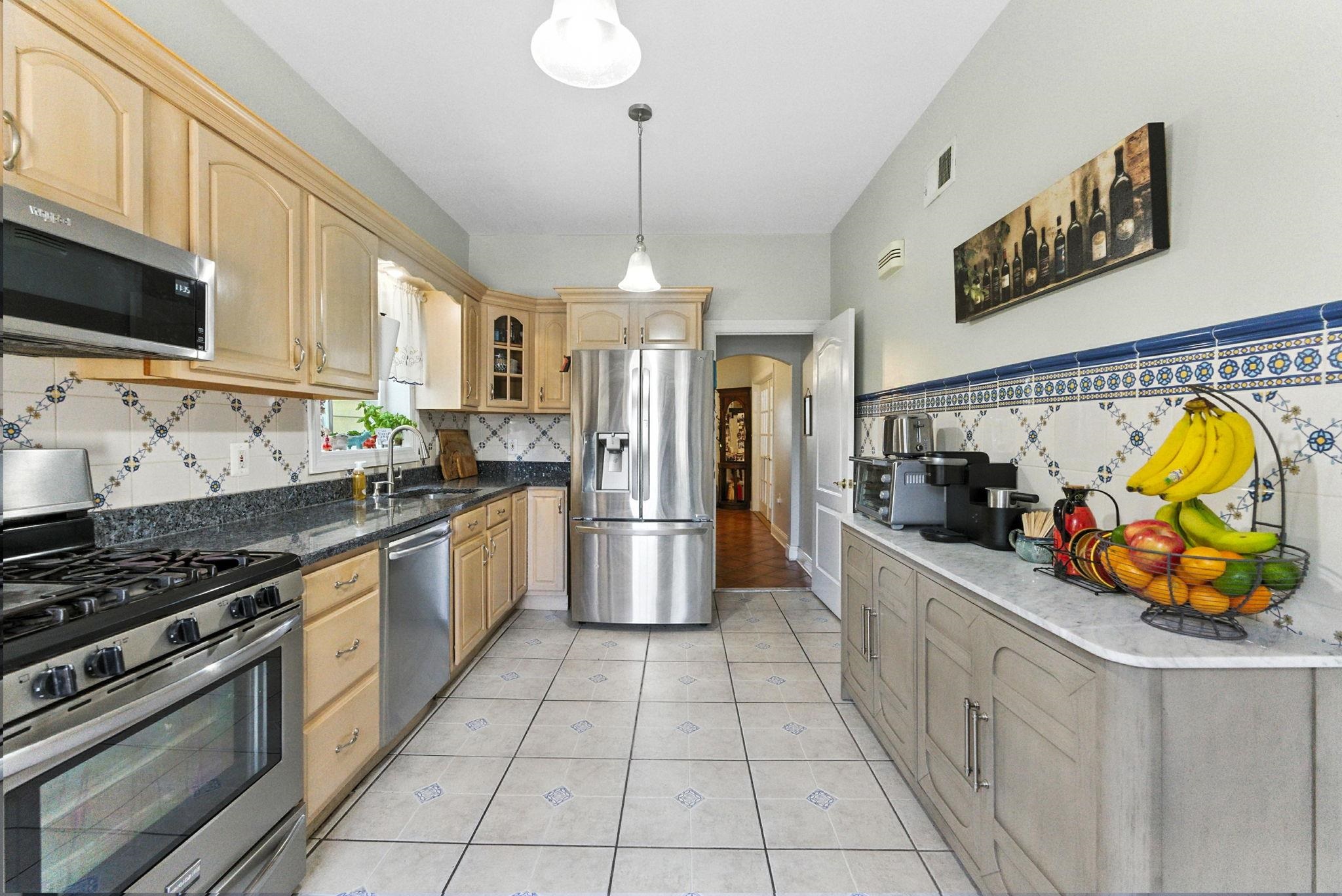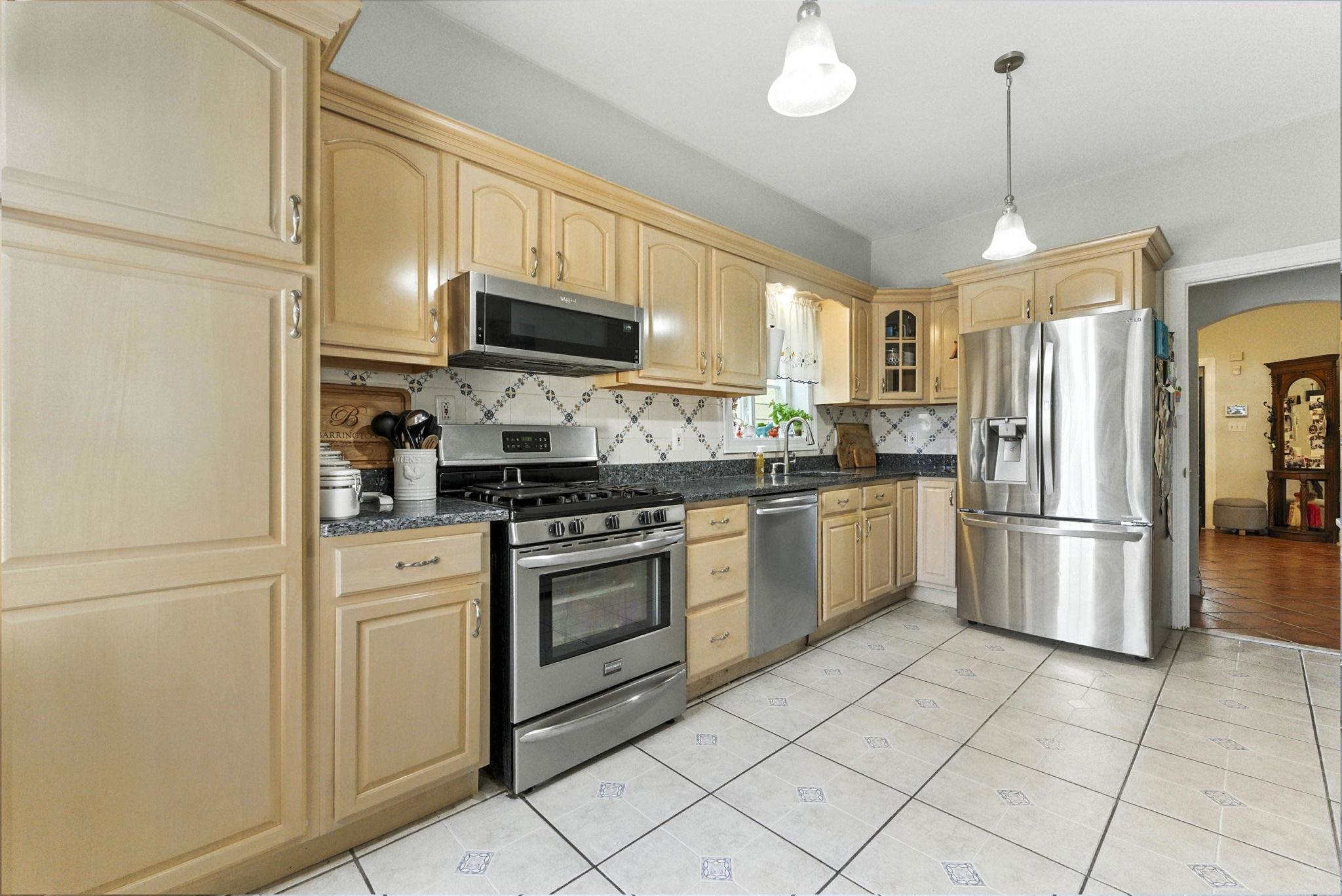 Welcome to this 6-bedroom, 3.5-bath colonial offering space and versatility. A bright living room flows into a formal dining area, and the kitchen features ceramic tile flooring, timeless cabinetry, and stainless steel appliances. The finished basement with a separate entrance adds flexible use, while two-zone heating/cooling and ATT security cameras provide convenience. Enjoy a backyard built for entertaining with an above-ground pool.
