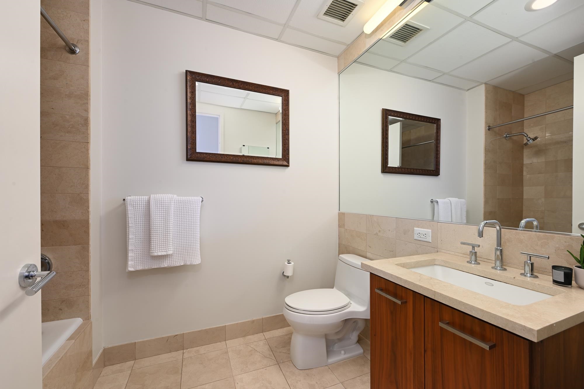 A Rare Corner Jewel at The Beacon’s Rialto Tower. Experience elevated living in this sun-splashed corner two-bedroom, two-bath residence spanning 1,264 square feet of refined design and dramatic skyline views. Framed by nine oversized windows, every room captures breathtaking panoramas of Manhattan, Downtown Jersey City, and beyond. This home is further distinguished by soaring twelve-foot ceilings unique to this floor and elegant custom moldings throughout the gallery-style corridor, creating a sense of grandeur and architectural sophistication rarely found in the building. A wide entry foyer opens to a sophisticated chef’s kitchen with sleek black stone counters, stainless steel appliances, and an inviting island that flows effortlessly into the expansive living and dining areas, perfect for entertaining or relaxing in style. The primary suite is a private retreat, featuring six oversized windows with custom shutters, two large closets, and a spa-inspired ensuite with dual vanity, soaking tub, and modern finishes. The second bedroom offers open city views, a custom wood built-in, and versatility for guests or a home office. Additional highlights include new Bosch washer and dryer, hardwood floors throughout, and a gallery corridor ideal for displaying art. At The Beacon, residents enjoy a full suite of resort-style amenities including an indoor pool, hot tubs, sauna, steam room, state-of-the-art gym, fitness classes, co-working lounges, and thirteen landscaped gated acres with outdoor lounges, dog run, and an on-site convenience store. Parking, EV charging, guest parking, and a shuttle to PATH complete the picture of comfort and convenience. Move-in ready and meticulously maintained, this rare offering combines space, light, and luxury in one of Jersey City’s most distinguished full-service communities.