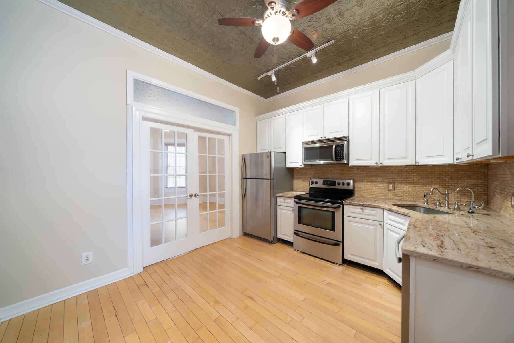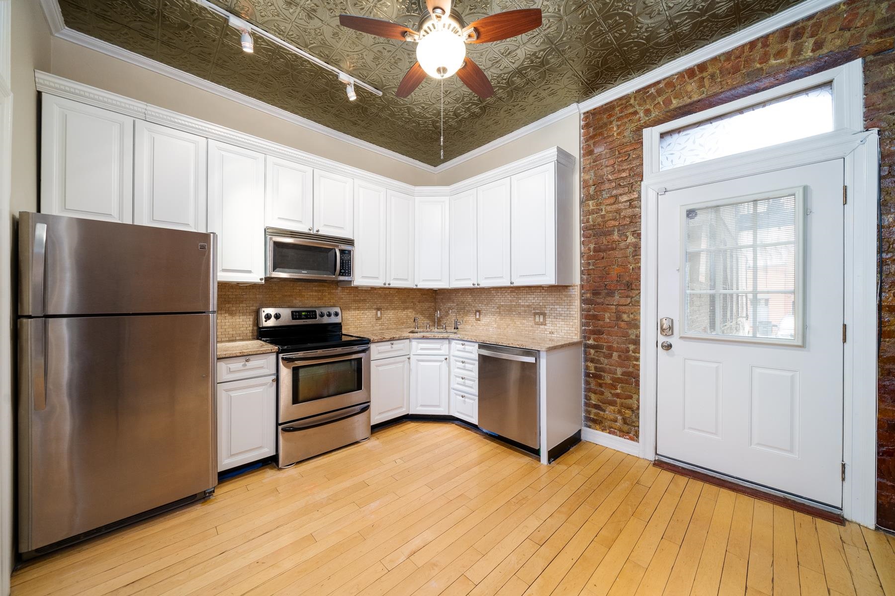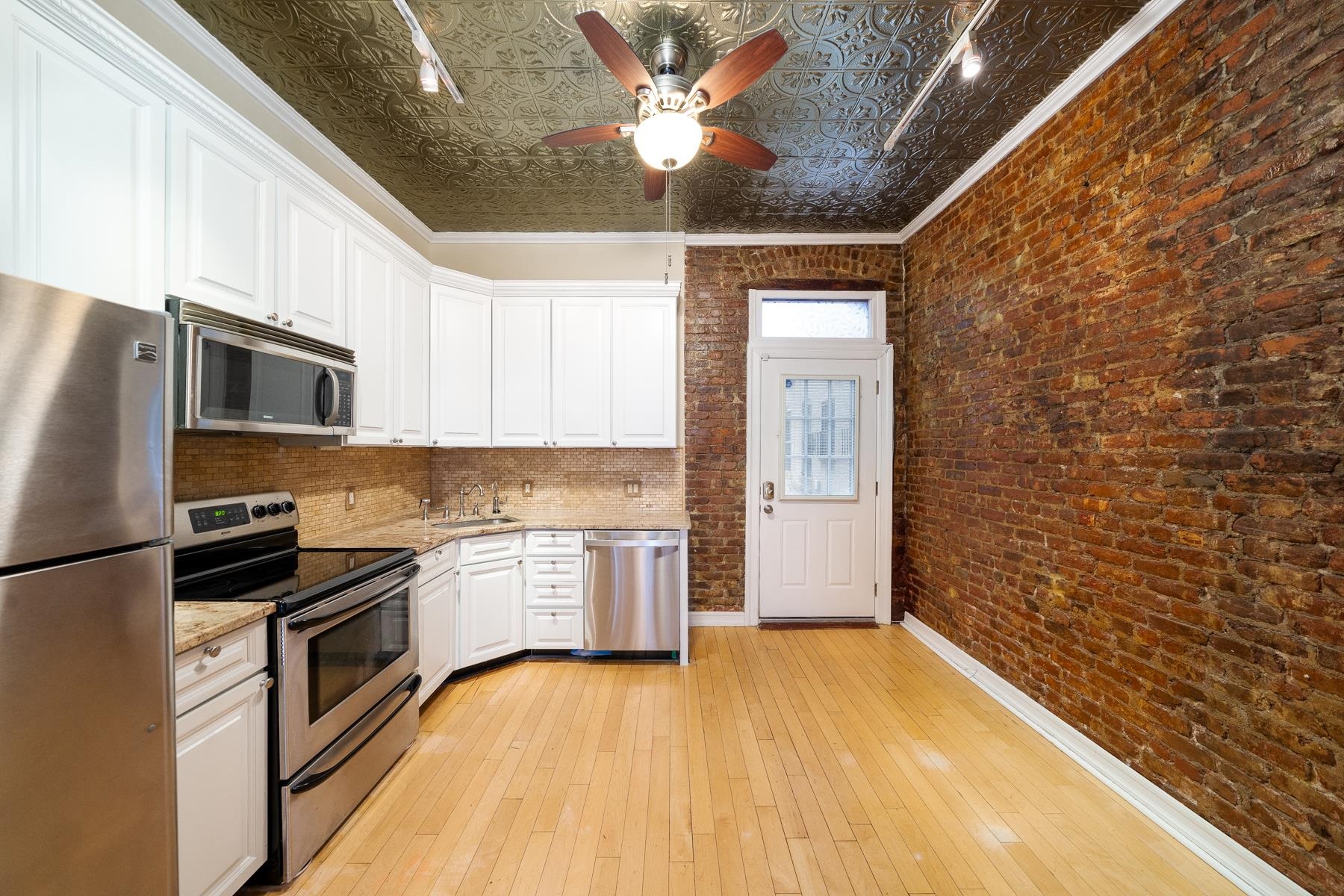 Great investment opportunity with tenant in place until Nov 2026. This beautiful 1 bedroom condo on downtown Hudson St. is ideally located only 3 blocks to PATH and NYC ferry with a quick commute to NYC and 1 block from Washington Street with all the shopping and restaurants Hoboken has to offer. It includes a private parking space and has its own private entrance and small garden outdoor space on Court Street. The property has the perfect blend of modern appliances and fixtures mixed with historic charm - exposed brick walls, original tin ceilings, and a decorative mantle/fireplace. The bedroom fits a queen sized bed and a custom closet built-in. High ceilings and hardwood floors throughout, storage space included, and common laundry in the building.