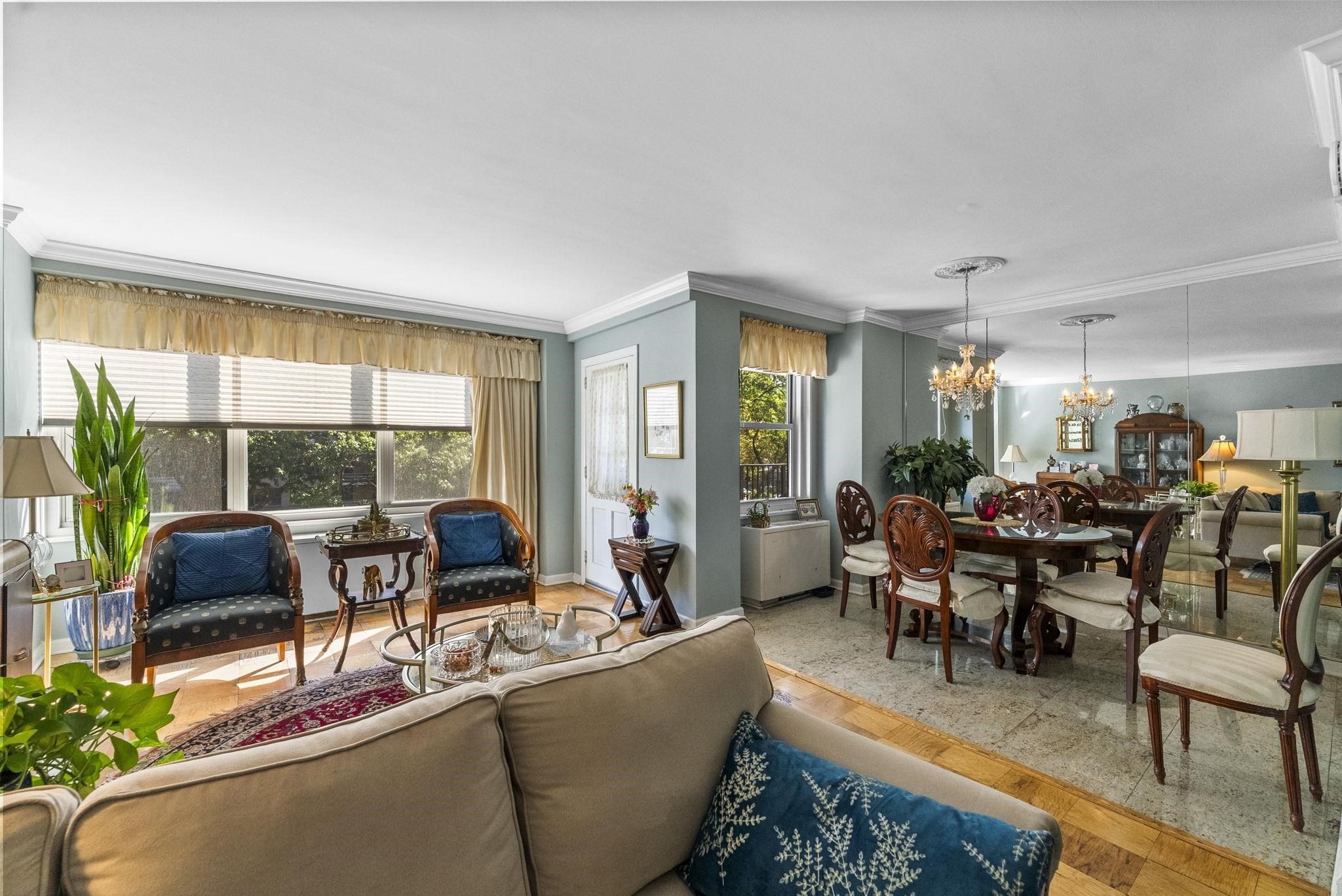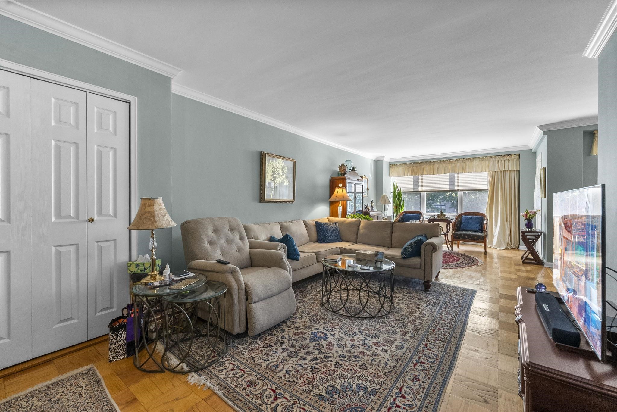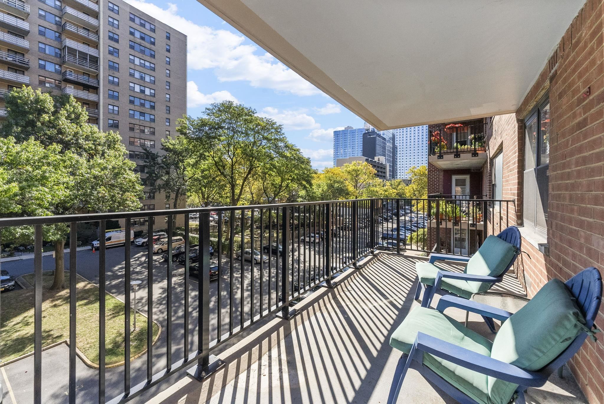 Discover the crown jewel of urban luxury in this expansive 984 sq ft condominium—the largest one bed unit in the entire complex—boasting a generous private terrace perfect for al fresco dining or serene morning coffee. Step inside to a seamless passthrough kitchen brimming with ample cabinets for all your culinary essentials, complemented by abundant closet space throughout and a spacious bathroom area designed for effortless indulgence. Flooded with natural light from oversized windows, this home exudes openness and tranquility. Enjoy peace of mind with a monthly HOA fee that covers heat, hot water, cooking gas, and central A/C, allowing you to focus on what matters most. Nestled in a multi-floor building with 24-hour concierge service and a newly renovated entry lobby, you'll also appreciate the on-site laundry room for added convenience. Venture into the vibrant common areas featuring a playground for family fun, a soothing meditation garden, and an inviting outdoor swimming pool complete with a BBQ area for summer gatherings. Situated in the heart of the newly revitalized Journal Square, this gem is just four blocks from the JSQ PATH station, offering unparalleled access to NYC and beyond—your gateway to elevated city living awaits!