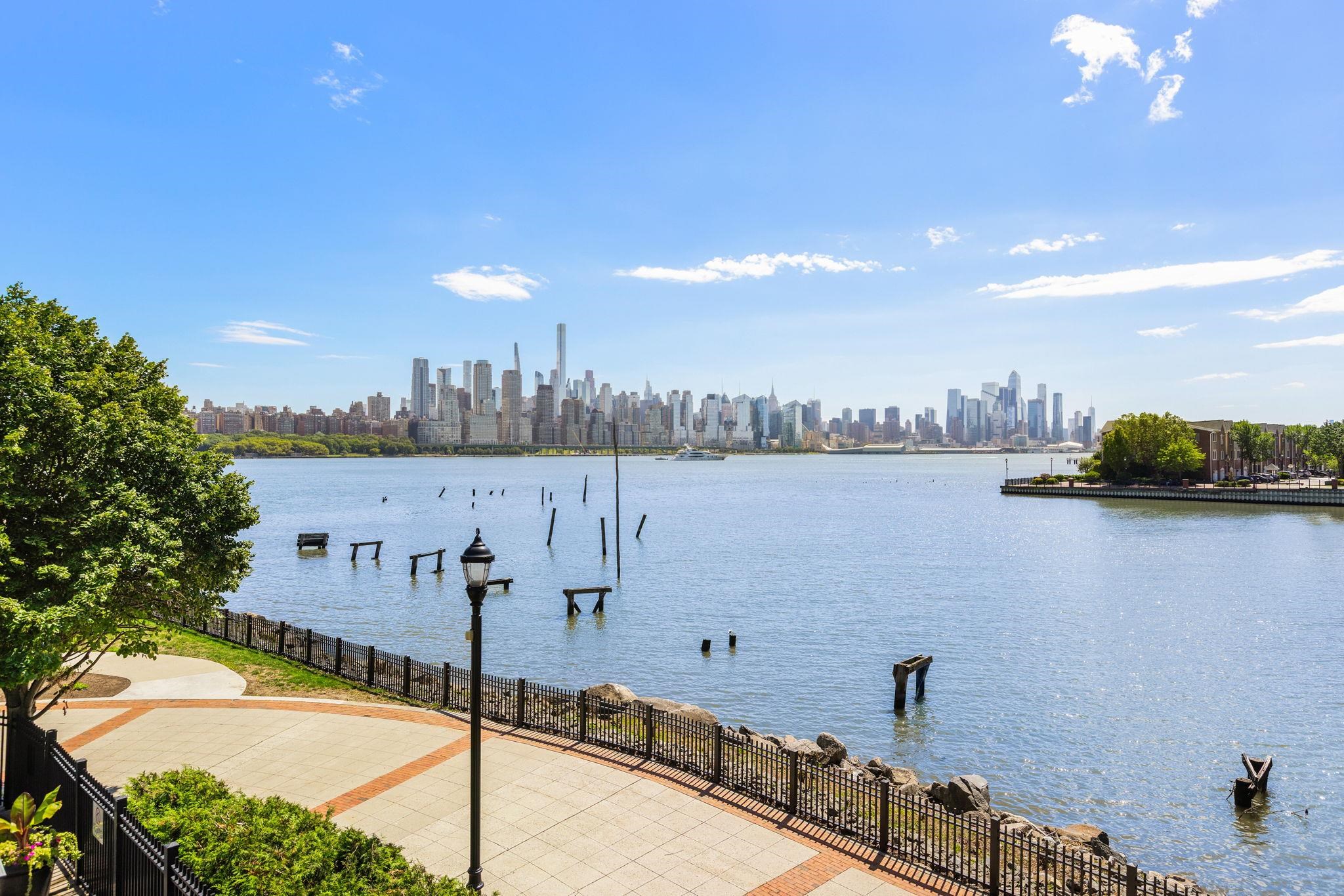 Welcome to The Views at Hudson Pointe, where luxury, convenience, and breathtaking scenery meet on New Jersey’s prestigious Gold Coast. This three-bedroom, two-bath corner residence offers a rare opportunity to own a waterfront home with the most sought-after east-facing Manhattan skyline views. The open-concept living and dining areas flow seamlessly, with natural light enhancing the warm hardwood floors and elegant finishes. The kitchen is designed for both style and functionality, featuring granite countertops, stainless steel appliances, and a breakfast bar ideal for casual dining or entertaining. The primary suite serves as a private retreat with a spa-inspired bathroom and generous closet space. Two additional bedrooms provide flexibility for family, guests, or a home office, all while enjoying the tranquility of the waterfront setting. Two covered parking spaces are included at this incredible price point. Residents of The Views at Hudson Point enjoy effortless connectivity with the Port Imperial Ferry, Light Rail, and Port Authority bus, providing seamless access to Manhattan. The lobby and recreational spaces, masterfully reimagined by the acclaimed design firm JLA Interiors, set the tone for modern luxury the moment you arrive, offering both a grand first impression and inviting communal spaces to relax or entertain. Additional lifestyle amenities include a fully equipped fitness center and an outdoor pool overlooking the iconic Manhattan skyline.