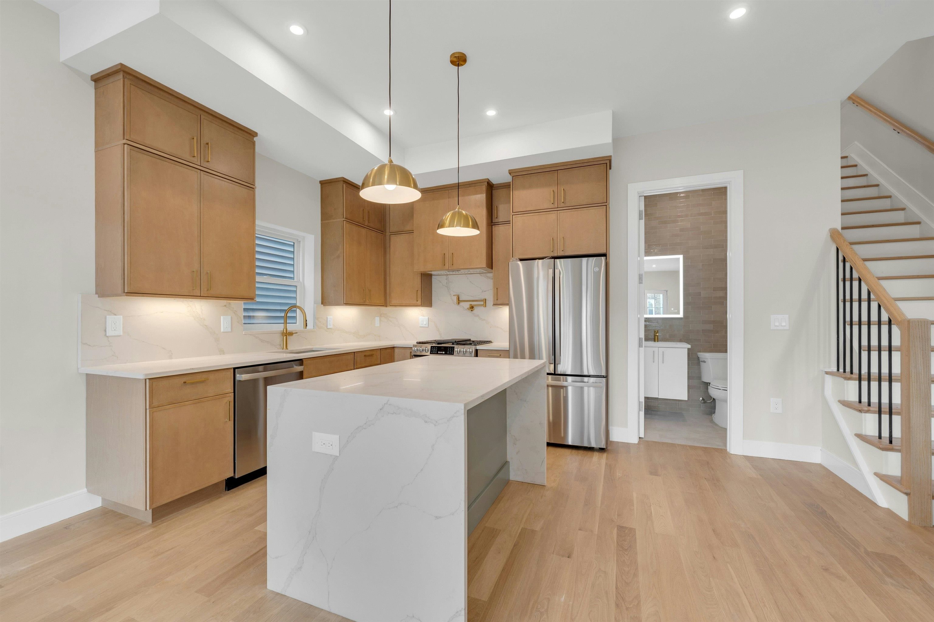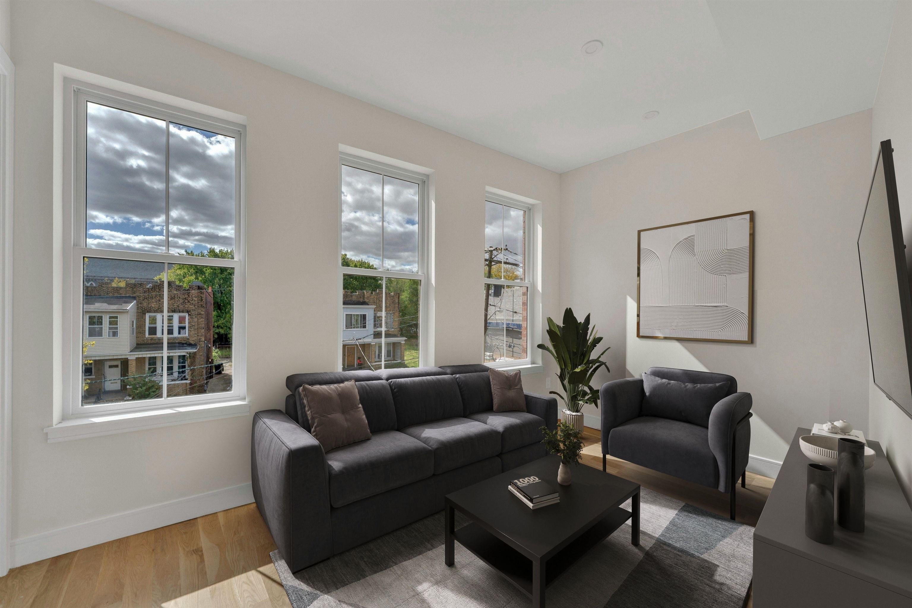 Step inside Unit 2 at 28 Clinton Avenue, a new-construction condominium that blends modern design, premium finishes, and smart functionality in Bergen-Lafayette. With ~1,355 sq ft, this three-bedroom, two-and-a-half-bath residence delivers luxury and a thoughtful layout, featuring 10-foot ceilings, 8- foot doors, and white oak hardwood floors throughout. The kitchen features Fabuwood Luna cabinetry, a Pistachio island, quartz countertops and backsplash, and brass fixtures—creating a sophisticated and timeless aesthetic. Each bathroom offers backlit designer mirrors and high-end finishes, while bedrooms are spacious and bright, with the primary suite including a private balcony and en-suite bathroom. Enjoy a finished private roof deck with breathtaking skyline views of Manhattan and Downtown Jersey City, creating an unmatched entertaining and relaxation space. Additional highlights include brand-new Rheem HVAC systems, 40-gallon powervent hot water tanks, and energy-efficient Andersen 100 Series windows. Located in Bergen-Lafayette—Jersey City’s fastest-growing and most rapidly appreciating neighborhood—this residence is surrounded by a wave of investment, development, and community energy, making 28 Clinton Ave a rare and valuable opportunity.
