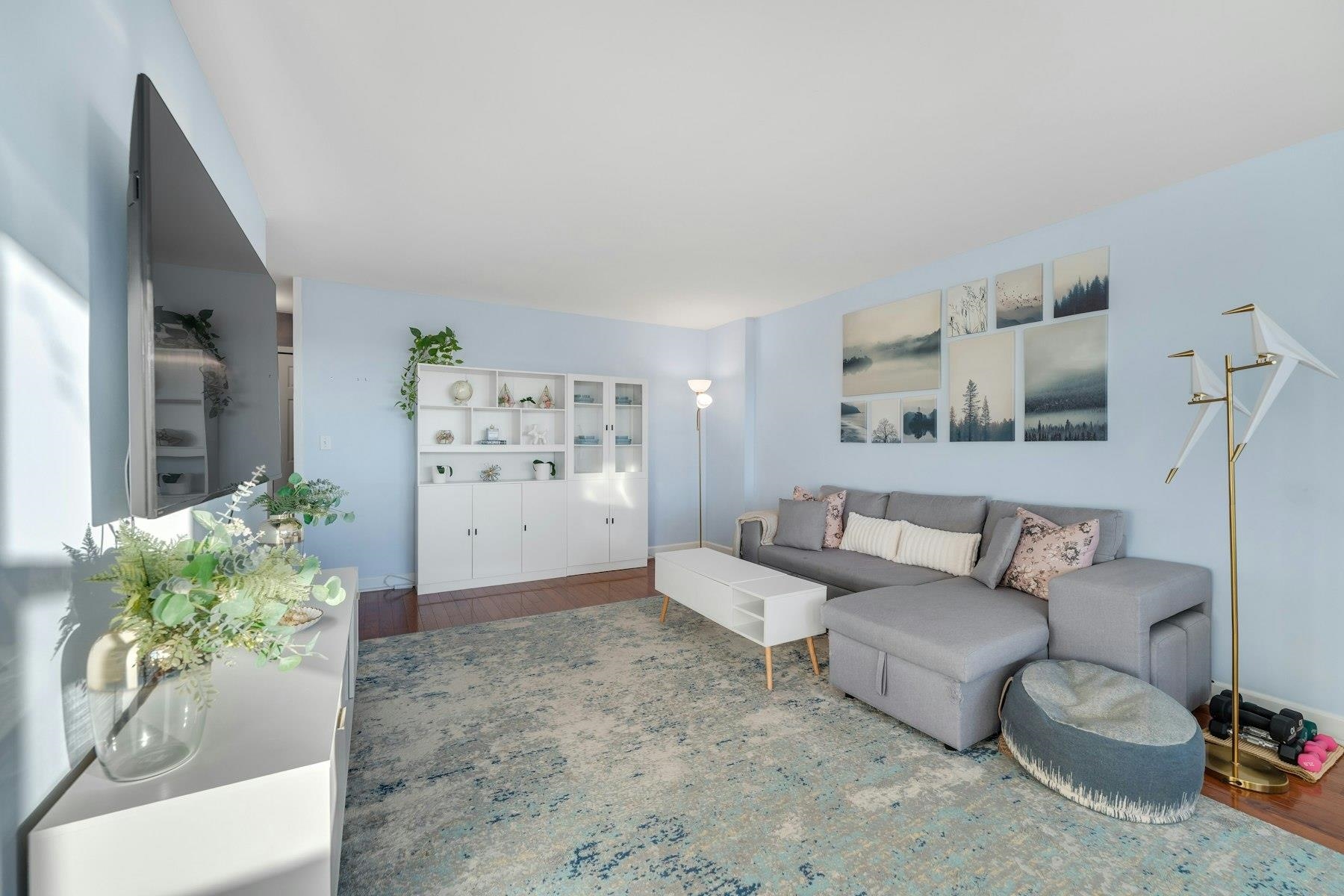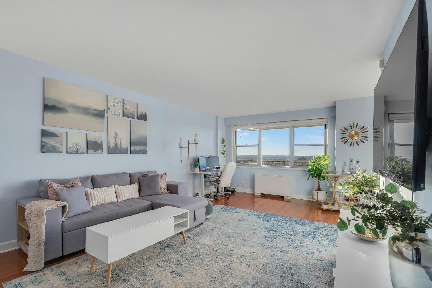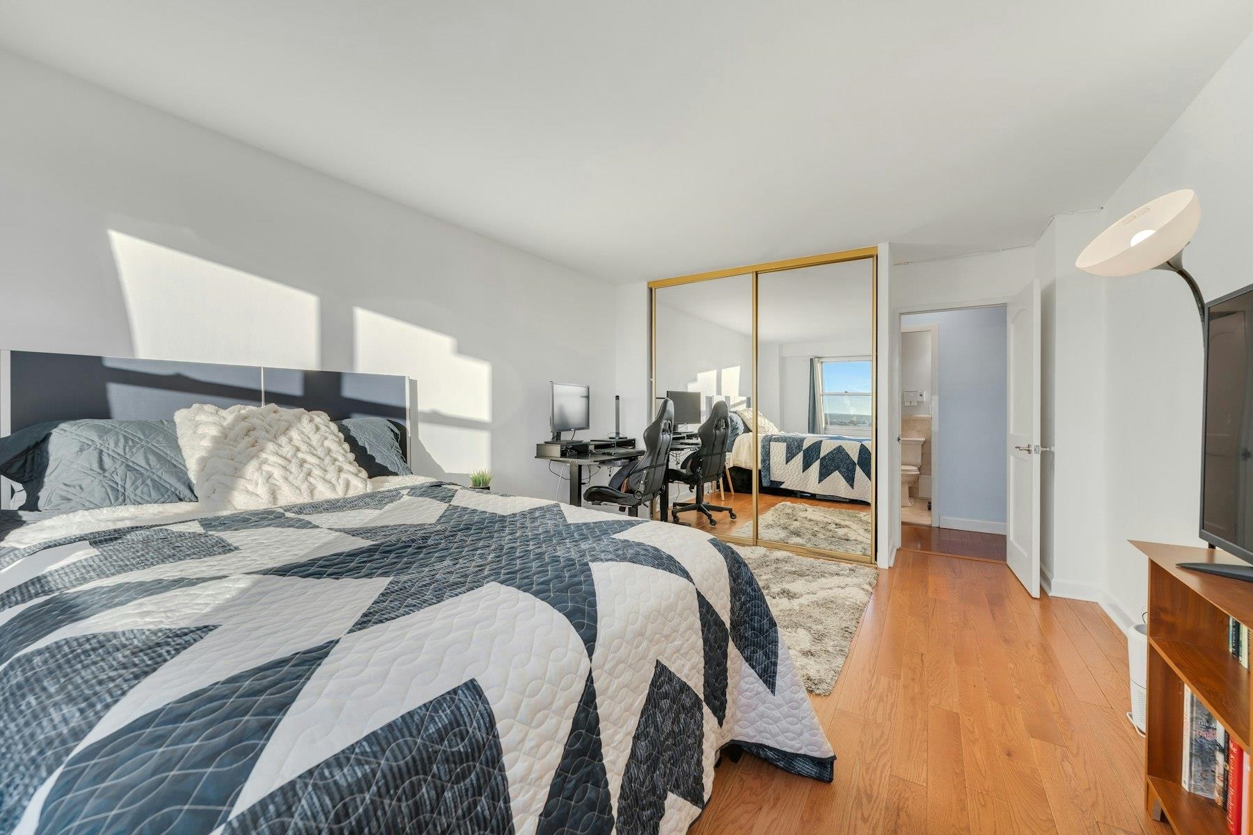 Live above it all in this 21st-floor corner residence with panoramic, limitless views stretching from the American Dream Mall to the surrounding mountains—while enjoying minimal street noise. Priced to sell, this deluxe two-bedroom home with a private terrace in the highly sought-after The Versailles combines sophisticated updates with an unbeatable location. The home features a well-proportioned layout and modern upgrades throughout, including new wood flooring and an upgraded kitchen with a brand-new tile backsplash, tile flooring, and high-end stainless steel appliances. The kitchen includes a Samsung Smart Refrigerator with interior camera, built-in screen, integrated speaker, and AI features, along with a new Samsung Dishwasher and energy-efficient GE Microwave. The primary bedroom offers partial Manhattan and Hudson River views, creating a serene retreat with cityscape charm. Residents enjoy full-service luxury amenities, including an outdoor pool, BBQ area, fully equipped gym, laundry facilities, and 24/7 security. The prime location provides easy access to NYC via buses, ferries, and the light rail, and is near Whole Foods, Trader Joe’s, Mitsuwa Marketplace, parks, restaurants, and shopping. Monthly maintenance covers real estate taxes, gas, electric, hot and cold water, A/C, and all amenities. Parking rates are $100–$130/month, depending on garage location. Subject to board approval.