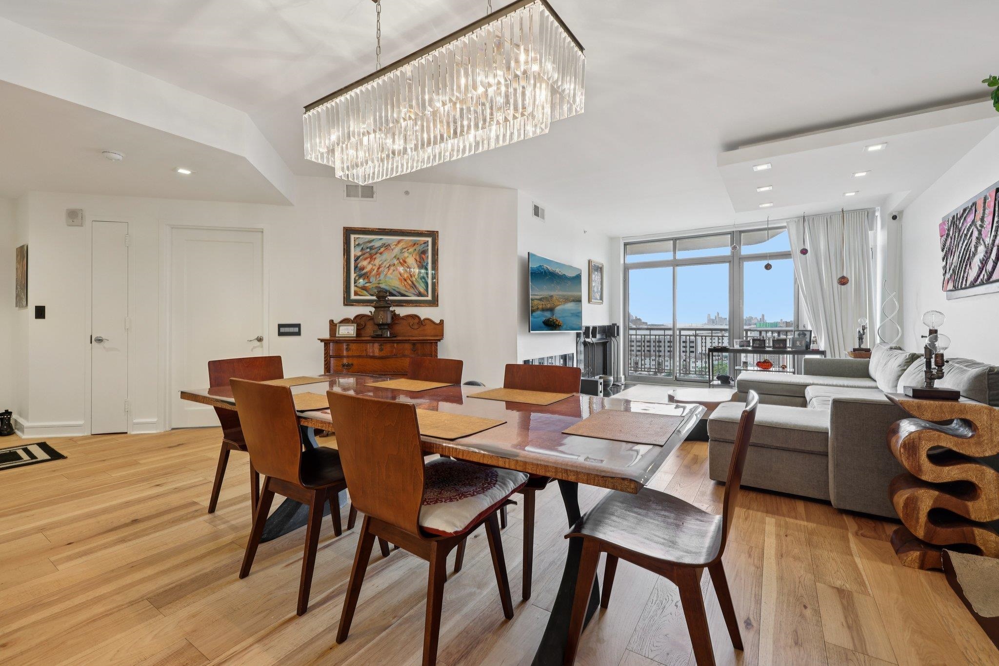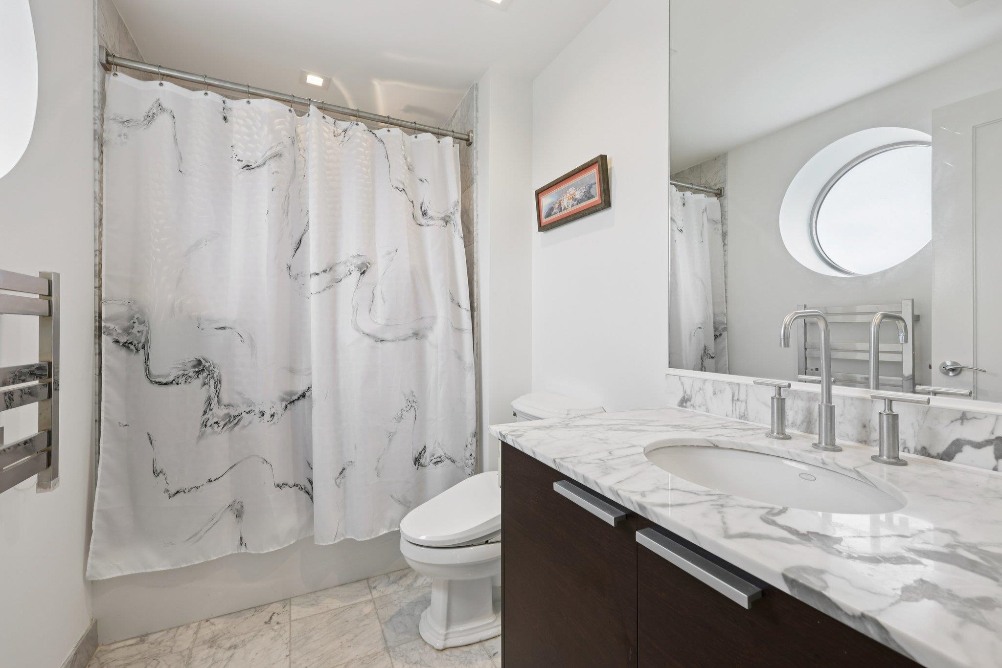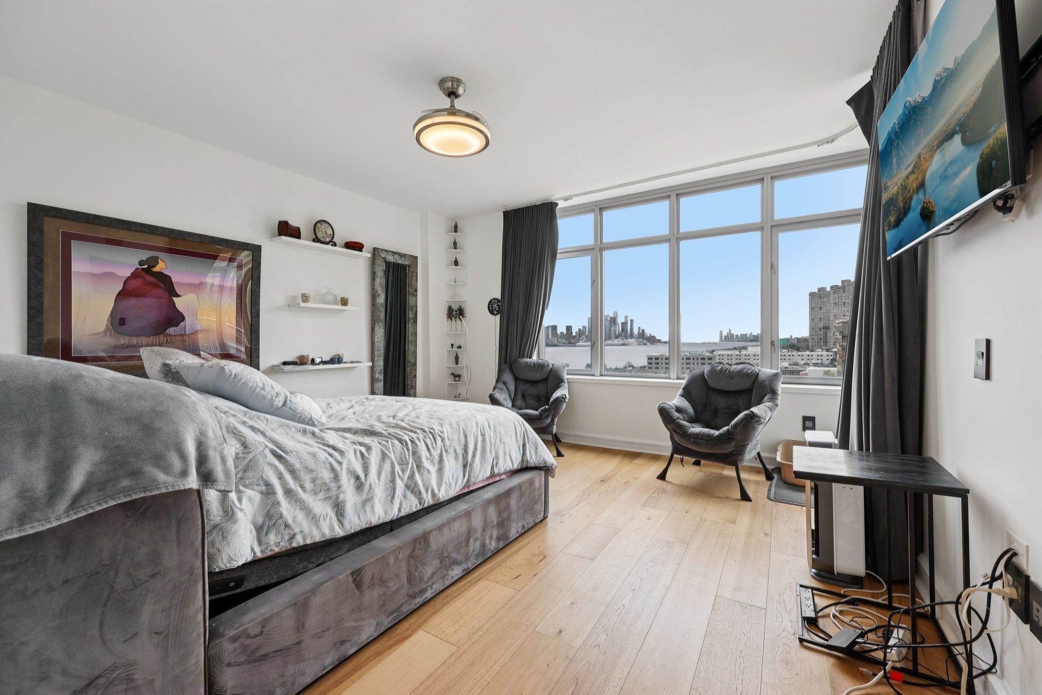 Waterfront living on the Hudson Gold Coast at its finest. Arrive through a glass-canopied porte-cochere to a full-service building with attention to detail. Inside, an open great living room showcases floor-to-ceiling windows, wide-plank hardwoods, recessed tray lighting, and seamless flow to a private balcony with skyline vistas. The sleek chef’s kitchen pairs crisp white cabinetry with quartz counters, an entertainer’s island with seating, stainless appliances, and a built-in wine fridge. The flexible third bedroom functions perfectly as a home office or guest room. The river-view primary suite spans the windowed facade like a panoramic photo and offers a calming retreat. A marble-clad bath features a soaking tub, dual vanity, and separate glass shower. Additional perks include abundant storage, modern fixtures, and a true indoor-outdoor feel. Moments to NYC transit, waterfront parks, dining, and shopping—this residence delivers the convenience of condo living with the polish of a boutique hotel as you indulge in over 40,000 sq. ft. of world-class amenities, including a spa, fitness center, indoor and outdoor pools, cinema room, golf simulator, playroom, executive lounge, plus two guest suites. 24/7 doorman and concierge, valet parking, and a private shuttle to NY Waterway ferry service. At The Watermark, luxury meets effortless living—where impeccable design and five-star amenities redefine waterfront elegance.