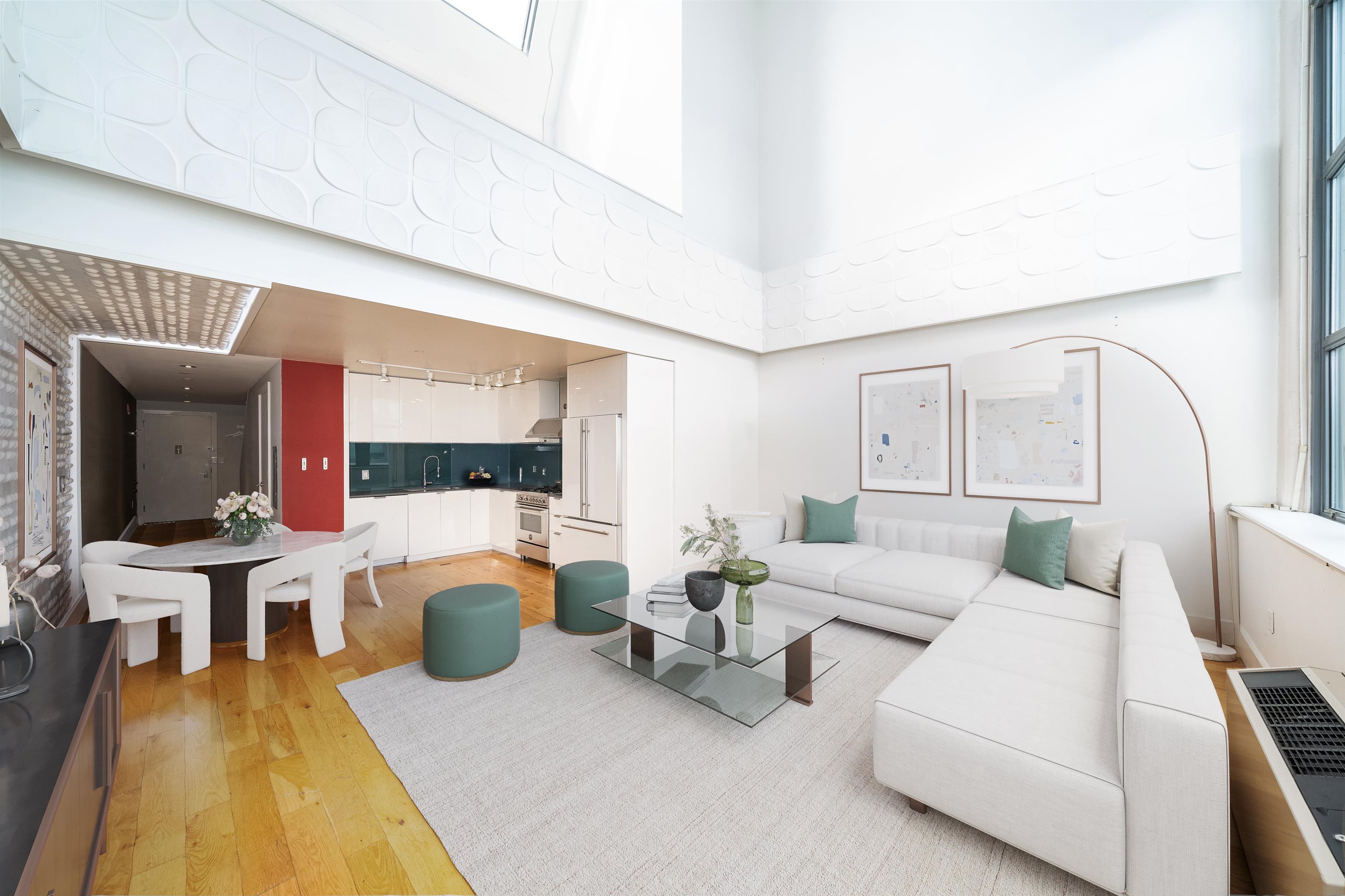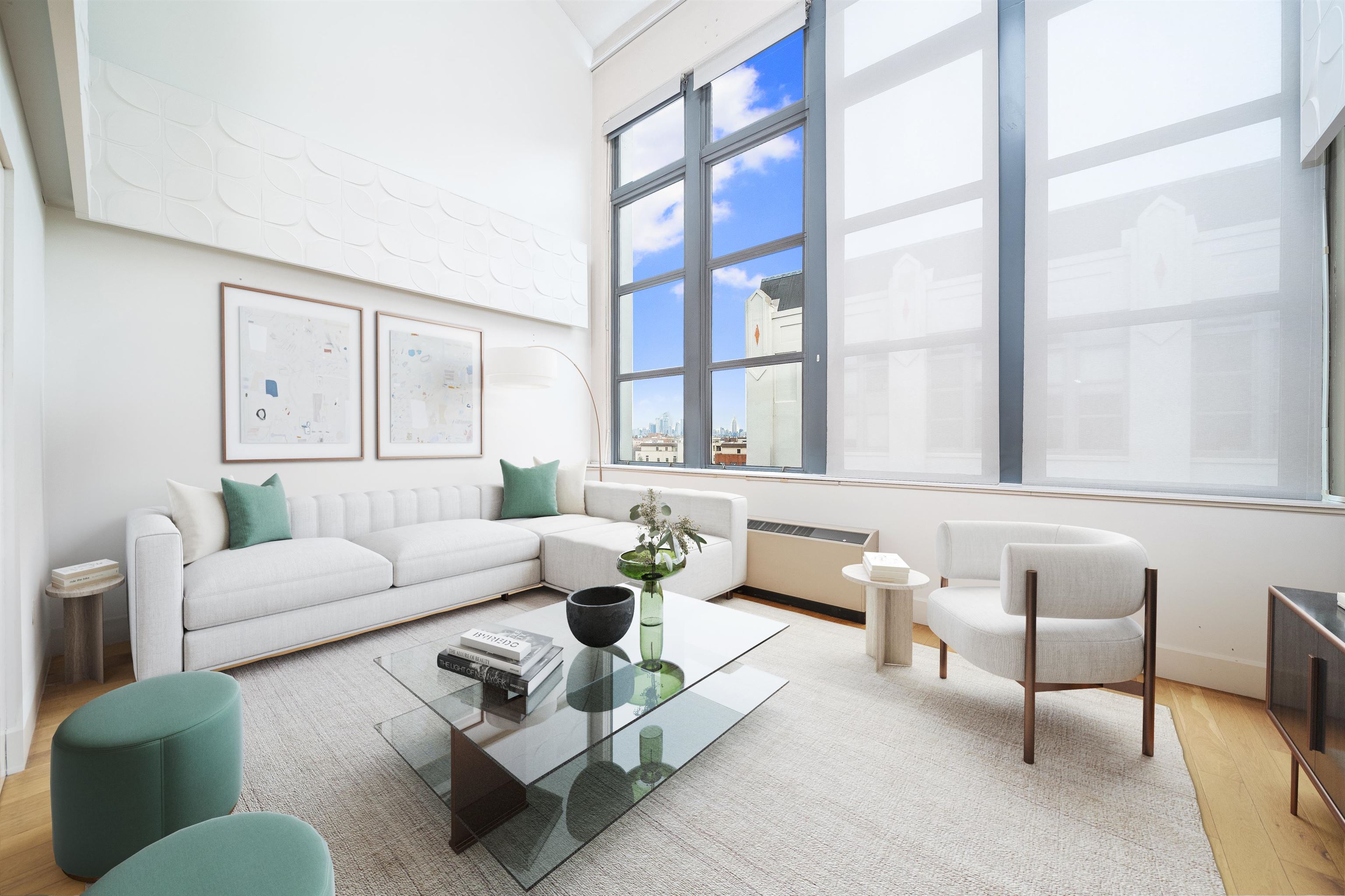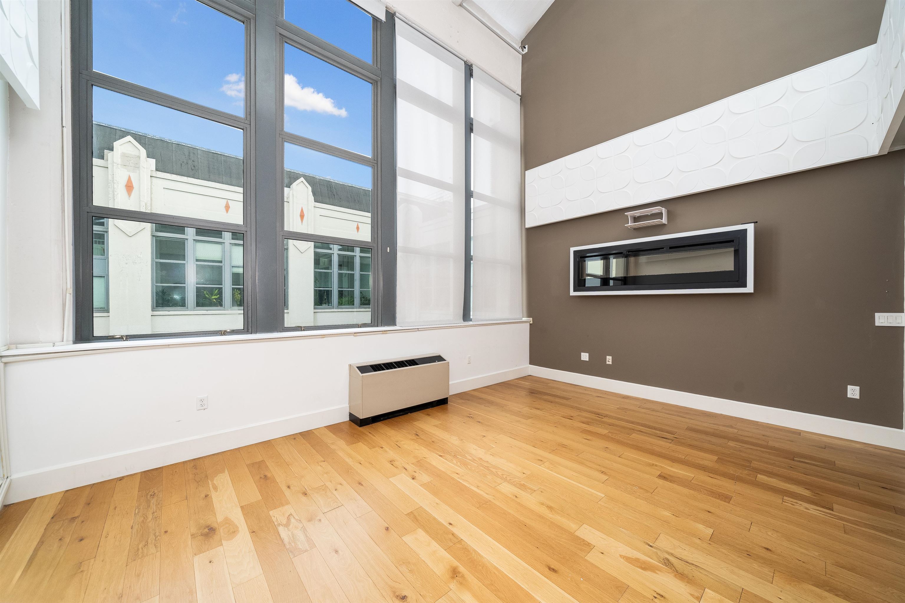 This 1,400 sq.ft. 2 bedroom, 2 bathroom duplex penthouse at Canco Lofts is a must see! The open floor plan highlights soaring 28’ ceilings with north and east facing floor to ceiling windows capturing dramatic Empire State Building views and city views. The first floor offers a large living space with a dry bar next to the kitchen, built in fireplace and tons of custom touches throughout. The kitchen and two full bathrooms maintain a contemporary design with an industrial feel: finishes like white lacquer cabinets, engineered stone countertops, glass tile backsplash & high-end stainless steel appliances complete the look. The oversized space upstairs accommodates 2 large bedrooms, both of which have vaulted ceilings and skylights. Other key features of the home include 5" plank white oak flooring & multi-zone A/C and heat; garage parking can be rented for an additional cost. Canco Lofts is a full service, 24 hour doorman building that features over 10,000 sq.ft. of amenity space including screening room, entertainment room, indoor basketball court, sun deck, outdoor grills, a massive gym that competes with private gyms, dog park & spa, and children’s play room. Canco Lofts is also footsteps away from bustling Newark Avenue and a short walk or resident shuttle ride to the PATH. Plus there is almost 15 years left on Canco’s 30 year tax abatement!