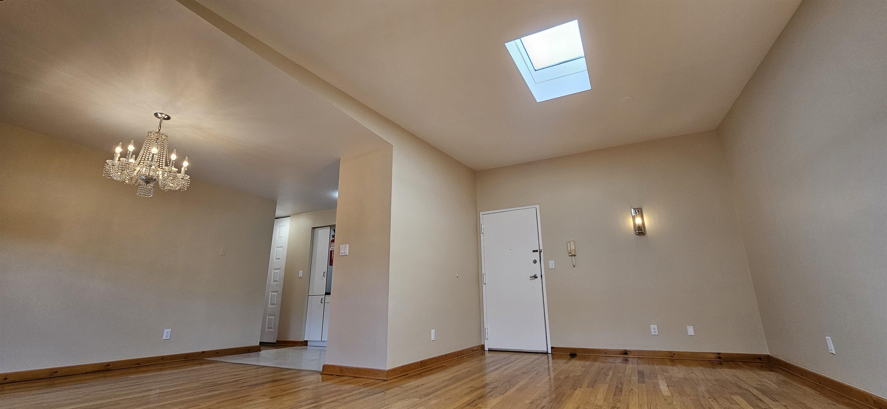 Top-Floor Gem Near NYC! 1-Bedroom with Skylight & Great Location. Step into this bright and spacious top-floor 1-bedroom penthouse offering 757 sq. ft. of comfort and style with no neighbors above you. The living room is bathed in sunlight from a beautiful skylight, highlighting the gleaming hardwood floors and open-concept layout perfect for entertaining. Enjoy a modern dining area with chandelier, a kitchen featuring a brand-new stove and oven, and freshly painted interiors with new light fixtures throughout. The large bedroom offers wall-to-wall closets, while the updated bathroom adds a clean, contemporary touch. Big windows fill the home with natural light, creating a warm and inviting atmosphere. Garage parking space (#10) is available for an additional cost. Located just half a block from NJ Transit and only 10 minutes to the Lincoln Tunnel, commuting to Manhattan couldn’t be easier. You’re also close to the NY Waterway Ferry in Weehawken, City Place Edgewater for shopping and dining, and the 167-acre James J. Braddock Park with trails, a lake, and skyline views. Enjoy the best of urban convenience and suburban tranquility, move in before the holidays and start living your best life near New York City!