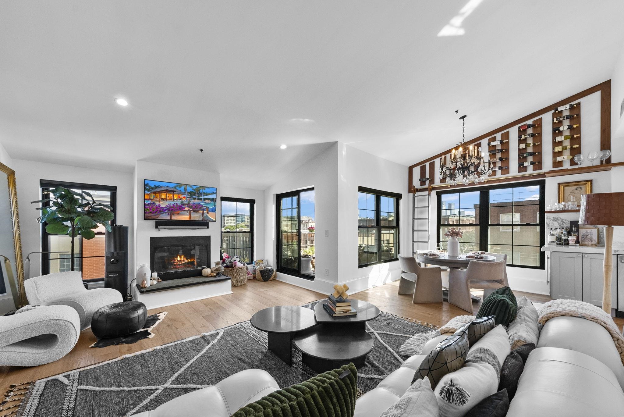 Welcome to 700 1st Street #16PV, a rare and beautifully designed 2-bedroom, 2-bath penthouse with a flexible study alcove that perfectly balances modern elegance, everyday comfort, and a premier address in southwest Hoboken. Spanning nearly 1500sqft, this home offers a light-filled, open layout and oversized floor to ceiling windows that frame picturesque sunset views. Step inside to an inviting kitchen, designed for both function and style featuring stainless steel appliances, granite countertops and a breakfast bar which naturally flows into the living and dining spaces. The expansive main space is truly a showpiece, anchored by a gas fireplace for cozy evenings and designed for seamless entertaining. A rarity to have a dedicated true dining space alongside a spacious living room all while being connected to your private terrace which is a peaceful escape above the city. The primary king size suite creates a tranquil retreat complete with walk in closet, a recently updated en-suite bath as well as direct access to your terrace, where you can relax at the end of your day. A generously sized guest bedroom with an adjacent full bath offering a dual sink vanity, stylish farmhouse shelving and a gorgeous tiled shower which round out this comfortable space for all of your guests. This spectacular home also offers a study alcove which can be designed to house your home office or a space dedicated to whatever your heart desires. Additional highlights include hardwood floors throughout, Nest controlled central air conditioning & heat, in-unit washer and dryer, and an oversized private terrace that has direct access from not only the living space-but both bedrooms as well. The Sky Club offers a suite of amenities including a 24 hour concierge, elevators, shuttle to the Path, resident lounge, storage (fee) and an onsite fitness center with pool (fee) providing the ease and convenience of modern urban living. Residence 16PV is offering one year of parking in the onsite connected garage. Situated in Hoboken’s thriving southwest neighborhood, this location continues to grow with the exciting new SW expansion resiliency park which acts as a major community mainstay drawing neighbors for recreation & events while cafés, restaurants, and retail options are just steps away. Commuting is effortless with close proximity to the PATH train, Light Rail, and bus service to Manhattan, as well as easy access to major highways. Whether you’re looking for stylish sophistication, open living space, or a peaceful place to call home, this new addition to the market delivers it all — a penthouse home that truly captures the best of modern Hoboken living.