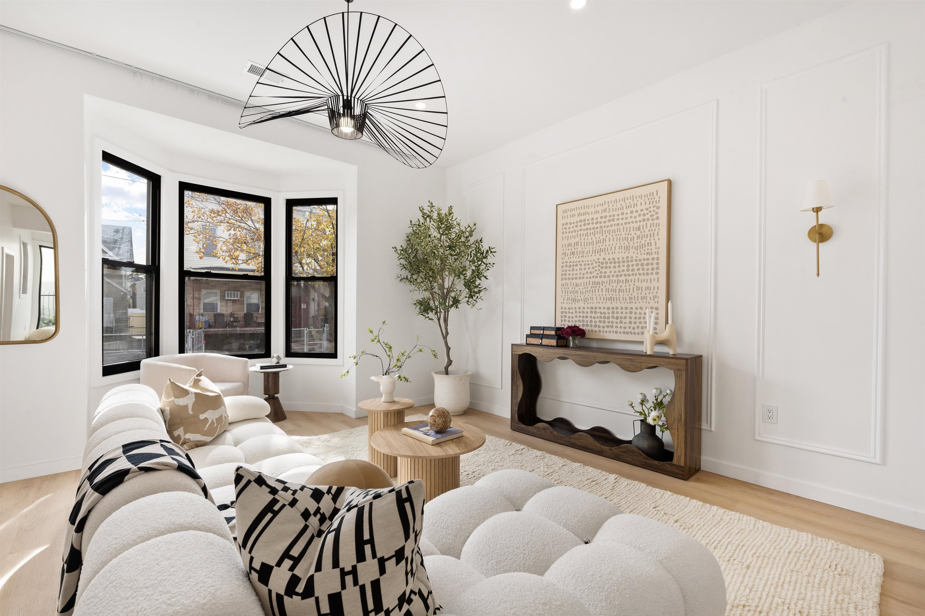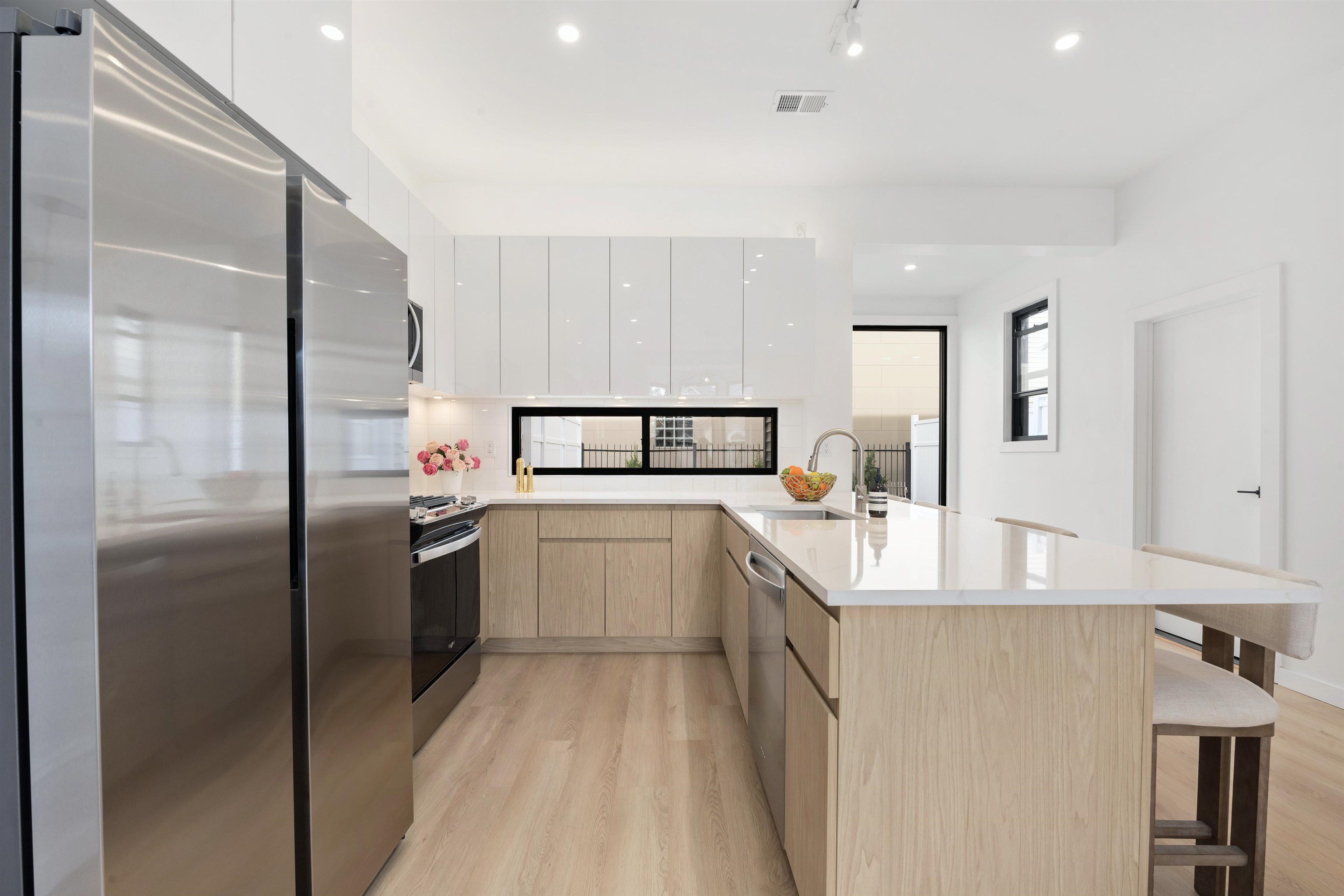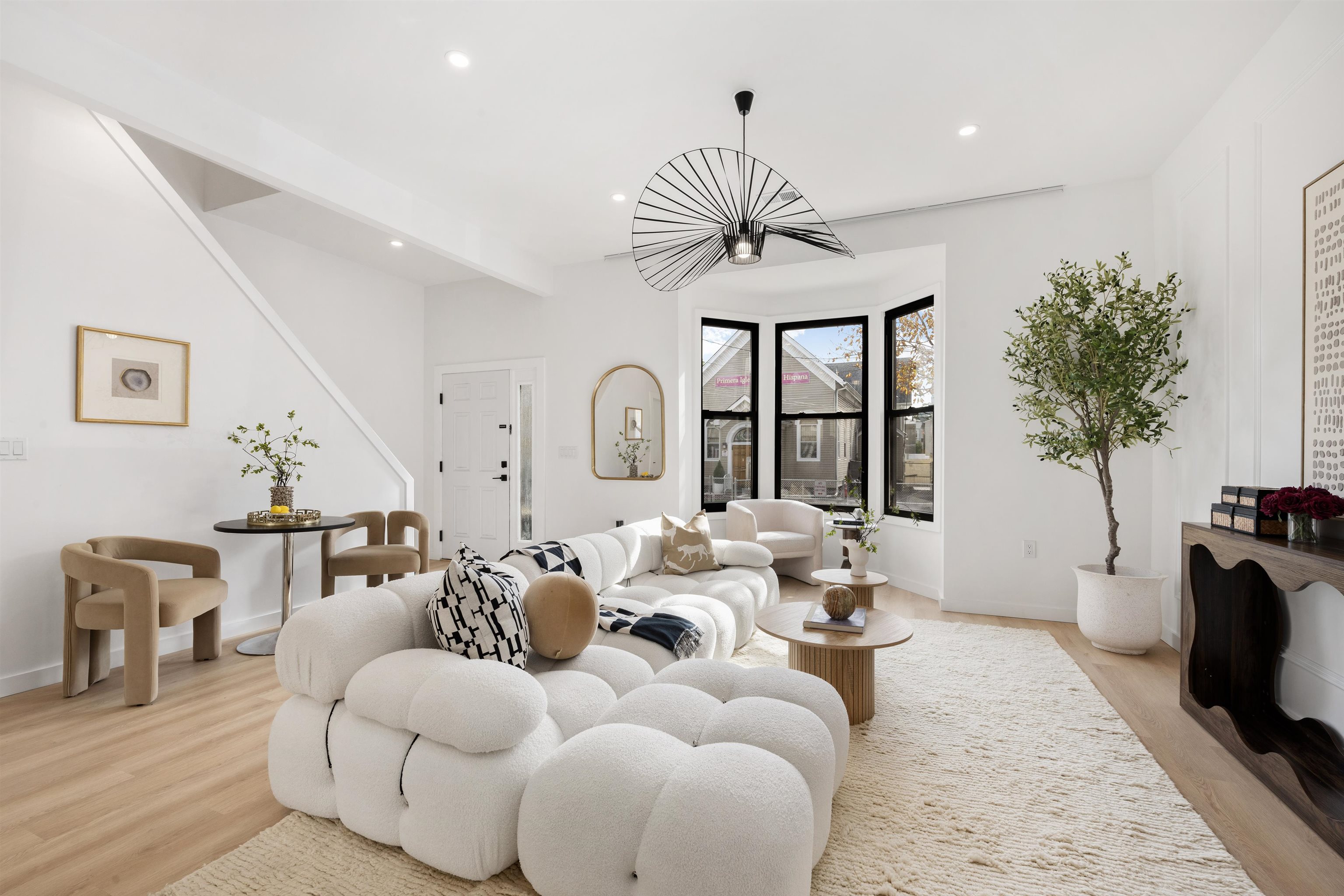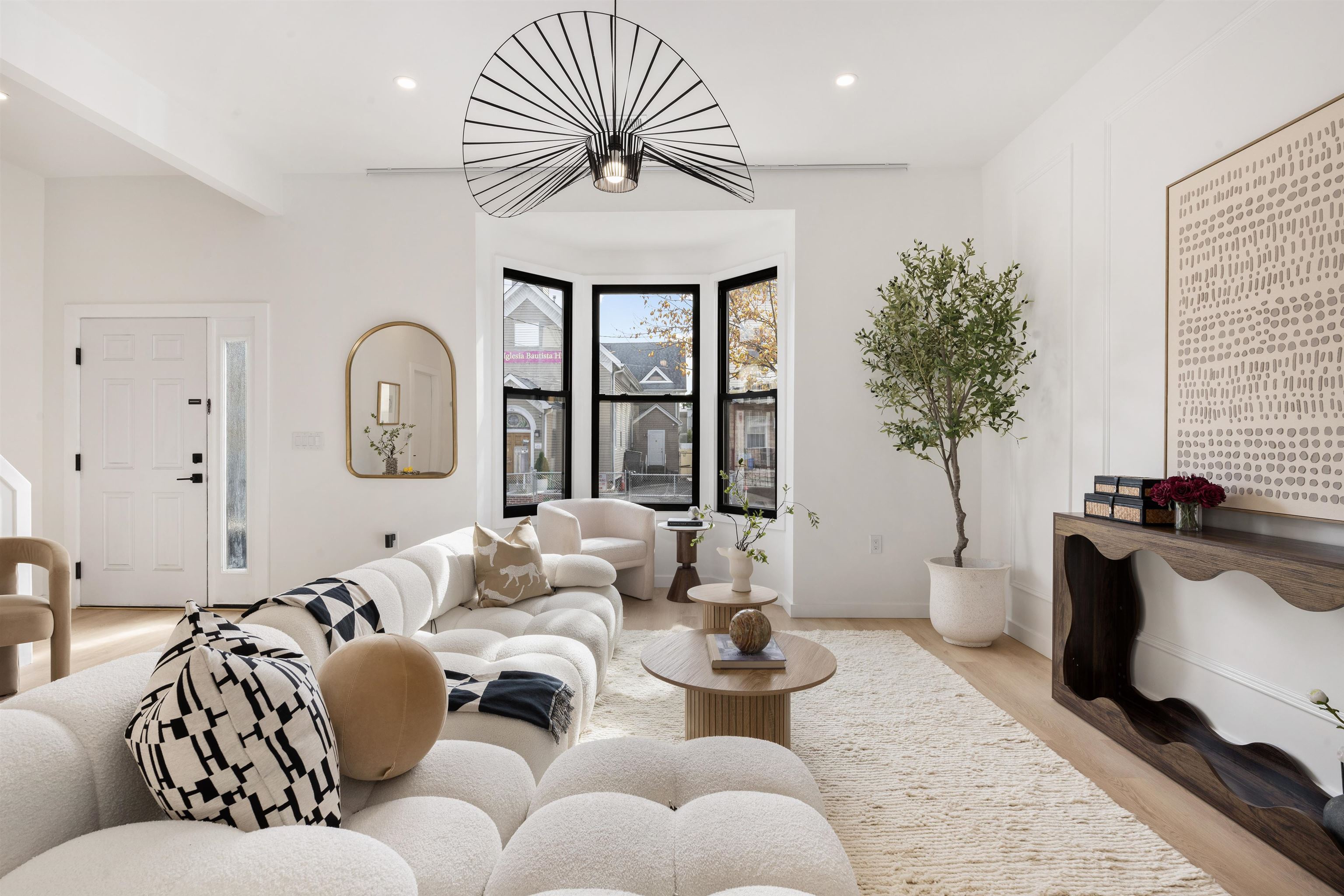 This fully renovated single-family row house offers 2 spacious bedrooms, a dedicated office, 2 full bathrooms, a finished basement, and a private fenced backyard. Taken down to the studs and rebuilt in 2025, the home features brand-new systems throughout—including roof, HVAC, plumbing, and electrical—for true peace of mind. Inside, the open-concept main level boasts soaring 10’ ceilings and dramatic floor-to-ceiling windows, filling the space with natural light. Scandinavian-inspired living and dining areas connect seamlessly to the sleek, modern kitchen. A spa-like bathroom with a smart toilet and oversized walk-in shower completes the first floor. The upper level includes 2 bright bedrooms, a windowed office, and a second full bath with a tub/shower combo, smart toilet, and in-unit washer/dryer. The finished basement provides flexible space—ideal for a family room, gym, or home office. Enjoy the outdoors in your fenced backyard, with rental parking conveniently available nearby. Perfectly located just steps from Washington Park and Firefighters Memorial Park—where you can swim while enjoying NYC skyline views—this home is surrounded by cafés, shops, and restaurants that reflect Union City’s vibrant character. With its welcoming community, diverse charm, and unbeatable access to New York City, Union City is the ideal place to call home. Special Financing Available: First-time home buyers can purchase with only 5% down, rates as low as 5.375%, no PMI, and no application or bank fees.
