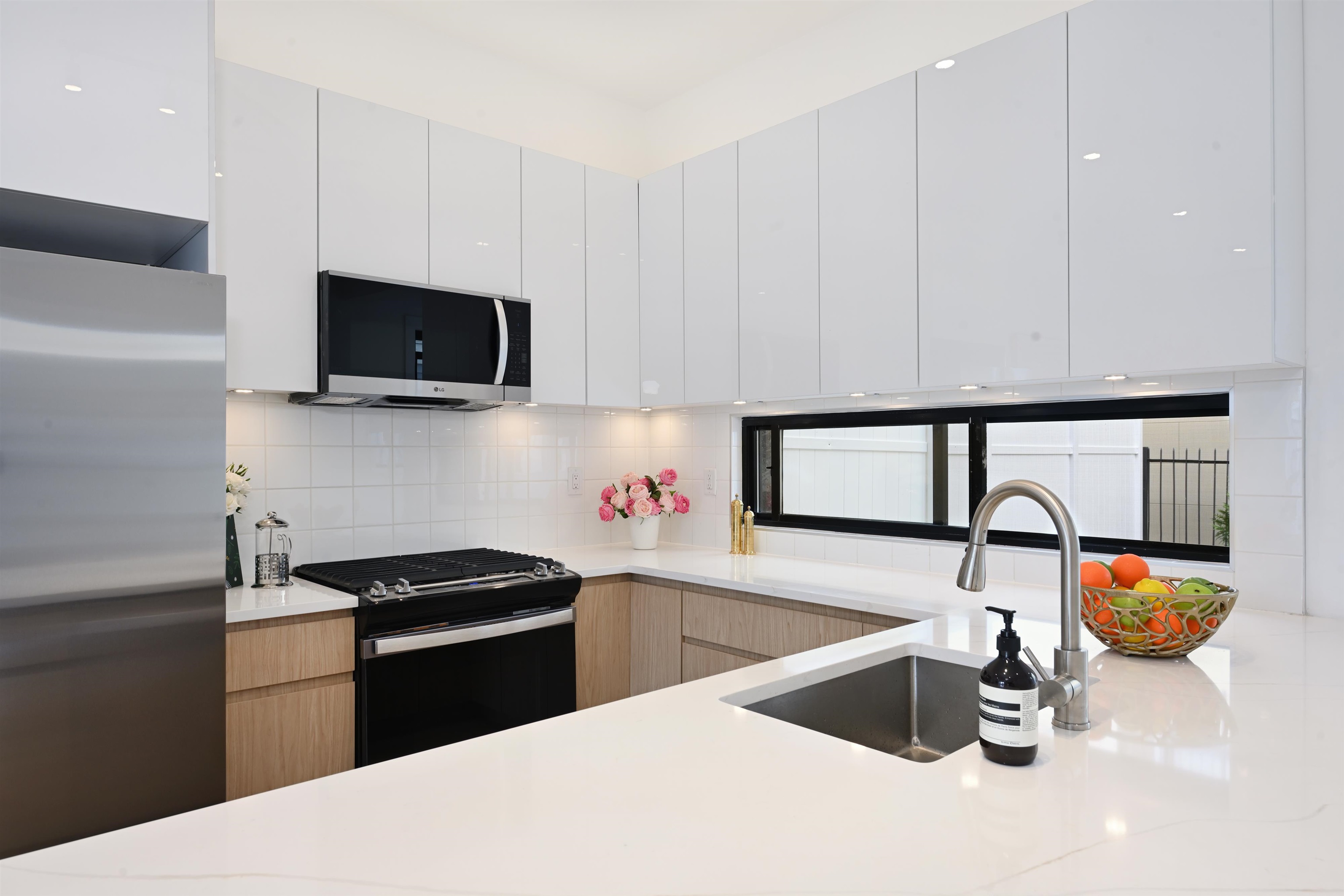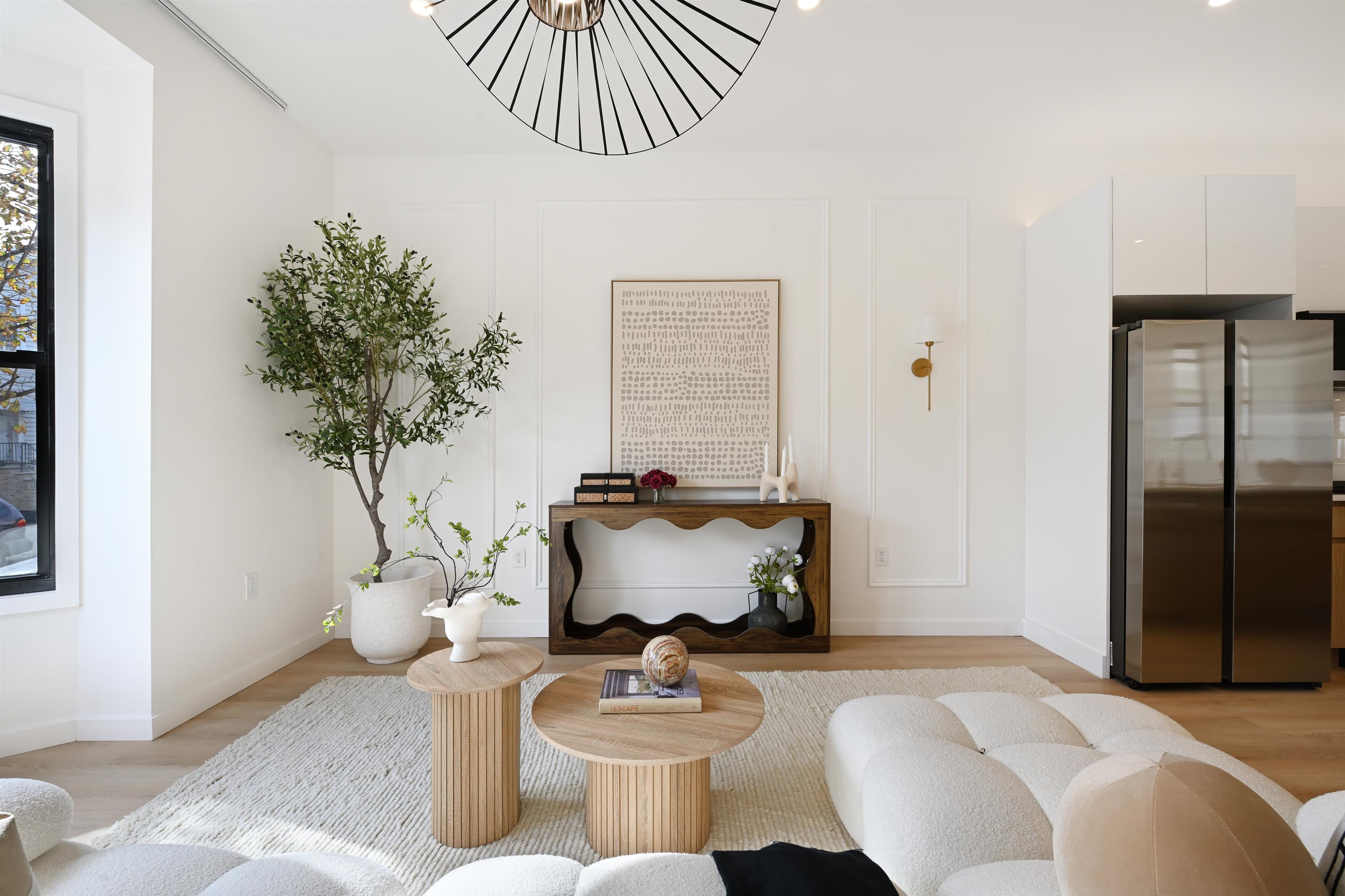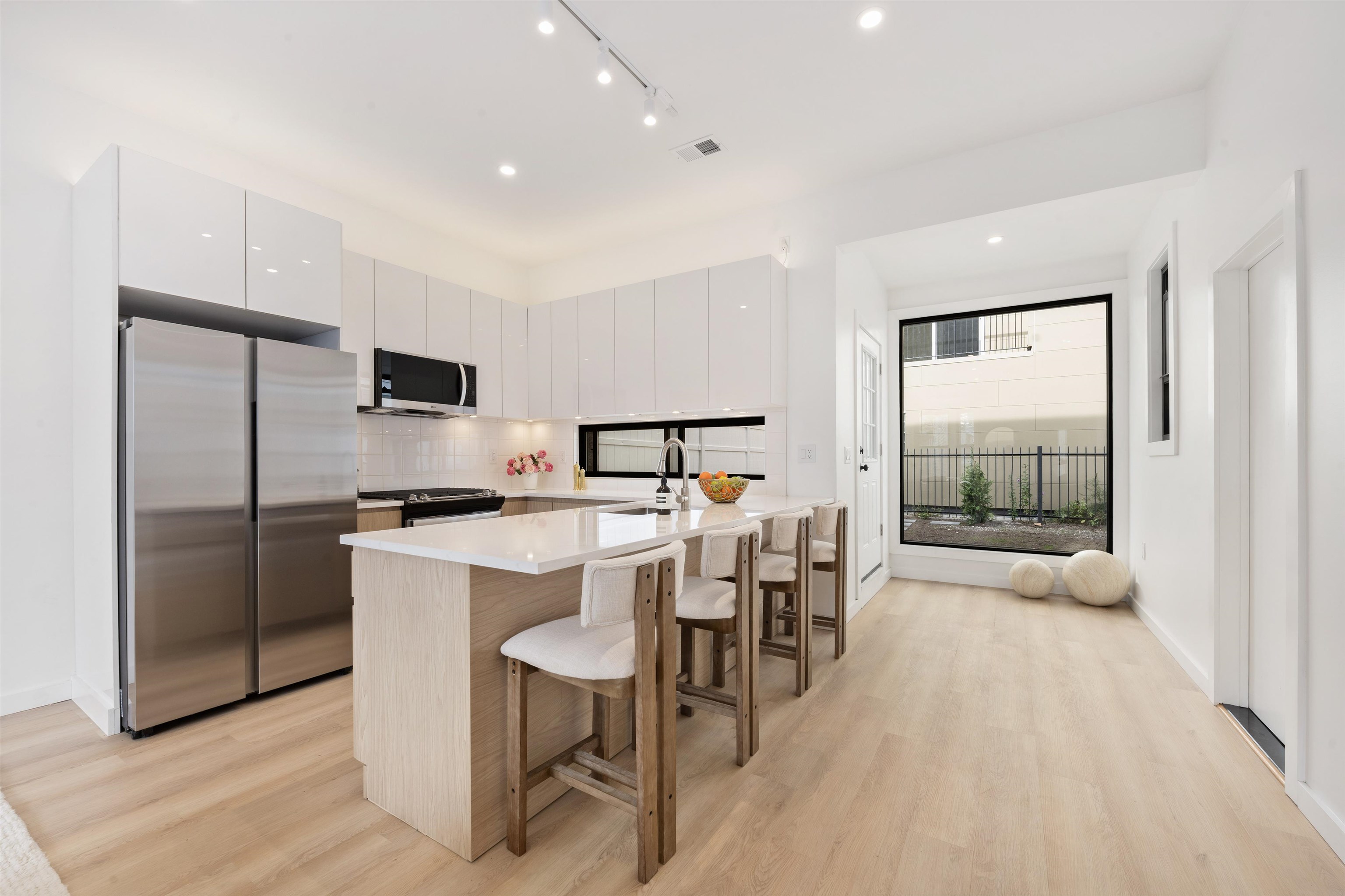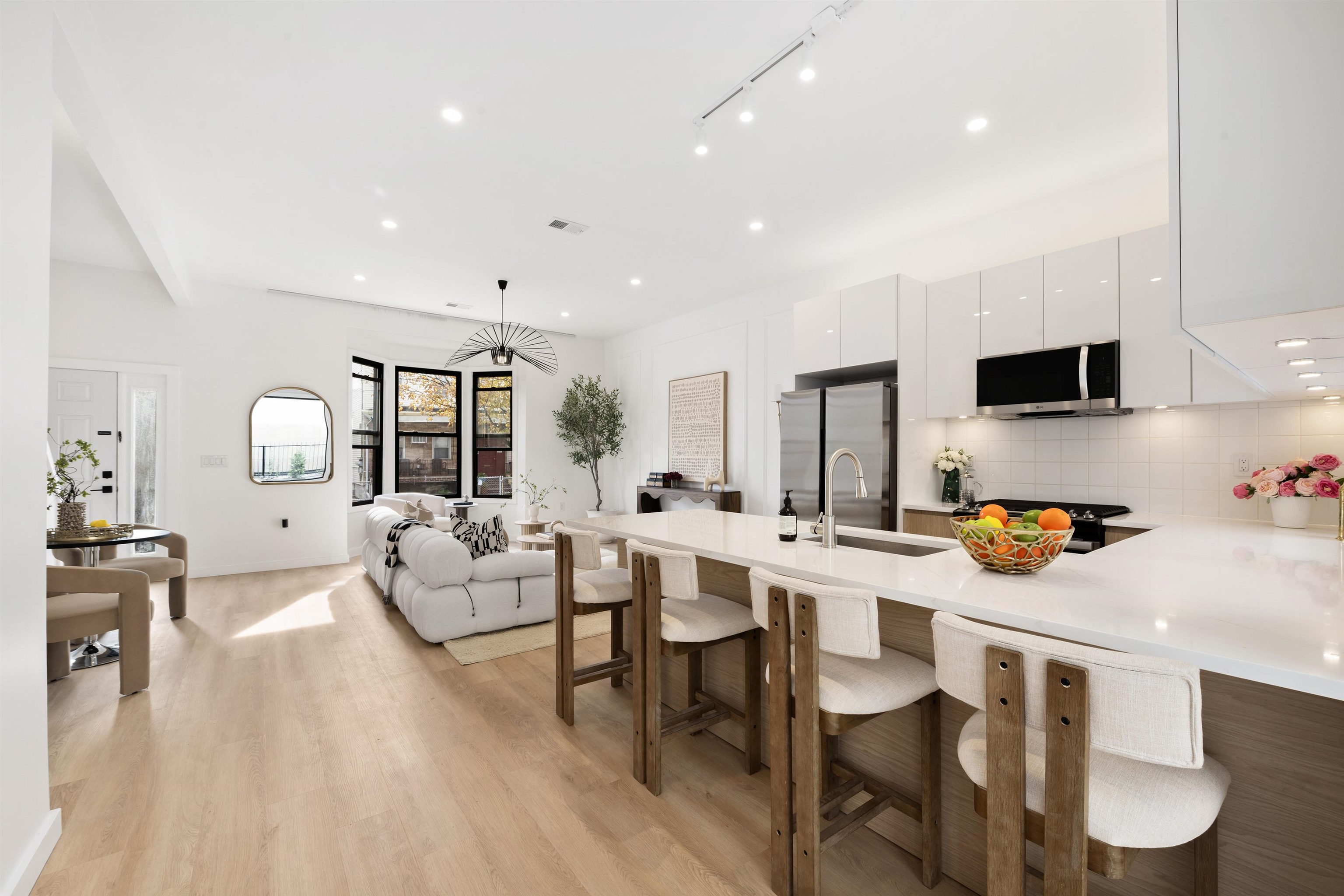 This fully renovated single-family row house offers 2 spacious bedrooms, a dedicated office, 2 full bathrooms, a finished basement, and a private fenced backyard. Taken down to the studs and rebuilt in 2025, the home features brand-new systems throughout—including roof, HVAC, plumbing, and electrical—for true peace of mind. Inside, the open-concept main level boasts soaring 10’ ceilings and dramatic floor-to-ceiling windows, filling the space with natural light. Scandinavian-inspired living and dining areas connect seamlessly to the sleek, modern kitchen. A spa-like bathroom with a smart toilet and oversized walk-in shower completes the first floor. The upper level includes 2 bright bedrooms, a windowed office, and a second full bath with a tub/shower combo, smart toilet, and in-unit washer/dryer. The finished basement provides flexible space—ideal for a family room, gym, or home office. Enjoy the outdoors in your fenced backyard, with rental parking conveniently available nearby. Perfectly located just steps from Washington Park and Firefighters Memorial Park—where you can swim while enjoying NYC skyline views—this home is surrounded by cafés, shops, and restaurants that reflect Union City’s vibrant character. With its welcoming community, diverse charm, and unbeatable access to New York City, Union City is the ideal place to call home. Special Financing Available: First-time home buyers can purchase with only 5% down, rates as low as 5.375%, no PMI, and no application or bank fees.