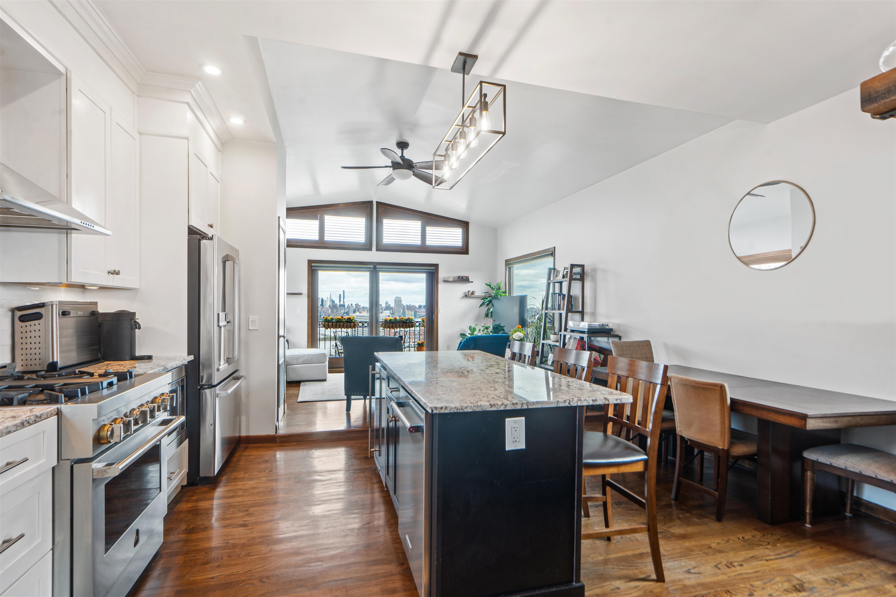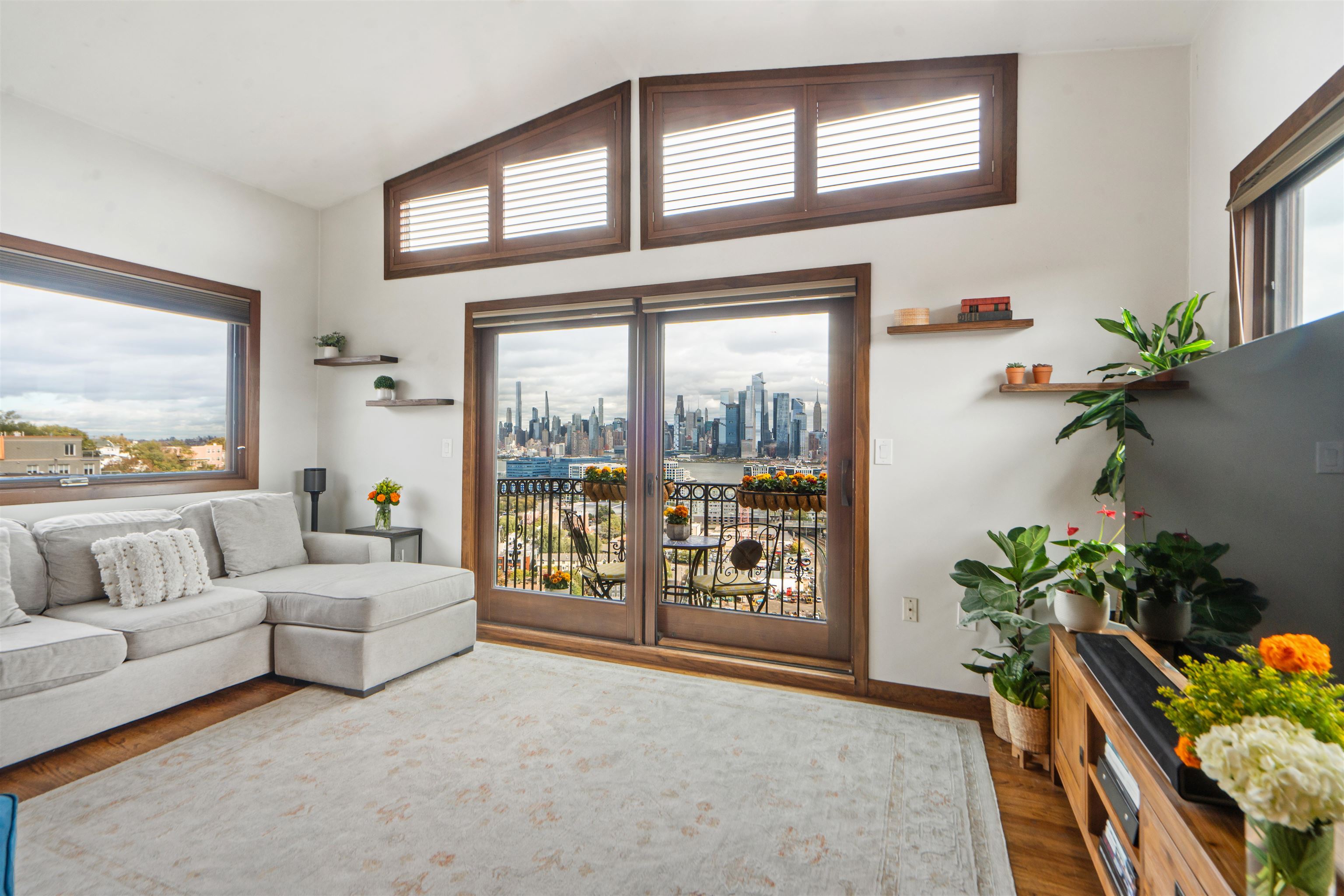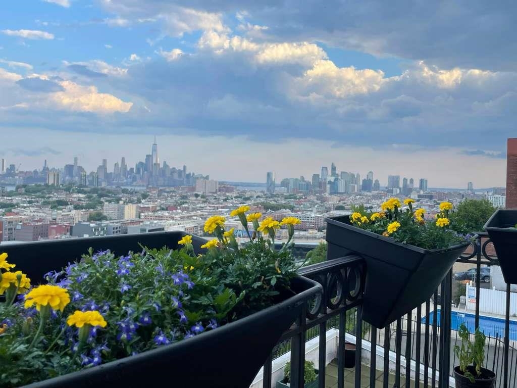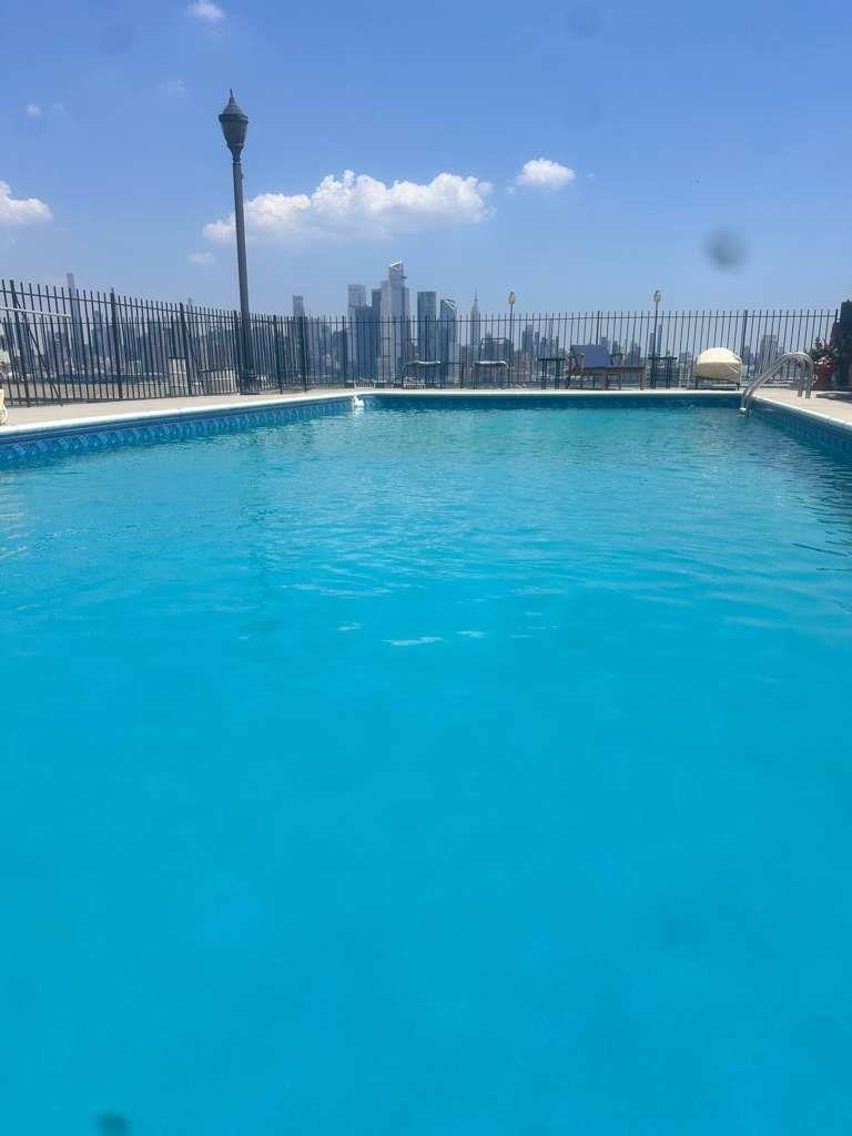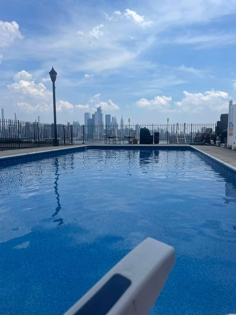3BR condo with pool and panoramic NYC views in Union City. Experience a rare blend of luxury, comfort, and city energy in this stunning 3-bedroom condo boasting panoramic Manhattan skyline views from your very own Juliet terrace. This residence offers an urban oasis feel with exclusive access to a private pool shared by only four units — a true rarity in Union City. The open-concept living area is bathed in natural light, making the most of the sweeping skyline backdrop, while the marble-tiled bathroom features a tranquil bath nook beneath a skylight — your own spa-like retreat. The chef's kitchen features white cabinets, Jen Air stove & SS appliances. A fully equipped island with wine fridge, dishwasher and breakfast bar make hosting with friends or a family gathering the perfect experience. Enjoy everyday convenience with an in-unit washer and dryer and a dedicated parking space. Commuting couldn’t be easier — you can be in midtown Manhattan in 20 minutes door-to-door via NJ Transit bus from the stop directly in front of the building. Perfectly situated just minutes from Hoboken, Weehawken, and express NYC transit, this home pairs serene living with unmatched accessibility. Whether you’re sipping coffee with skyline views, relaxing under the skylight, or enjoying a quiet swim steps from your door, this is city living at its most inspired. Call today for your private showing.