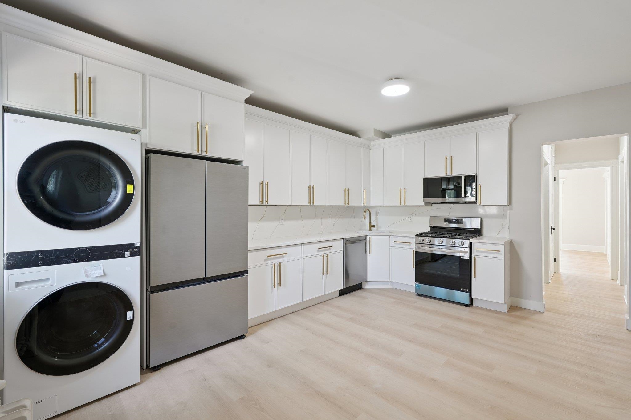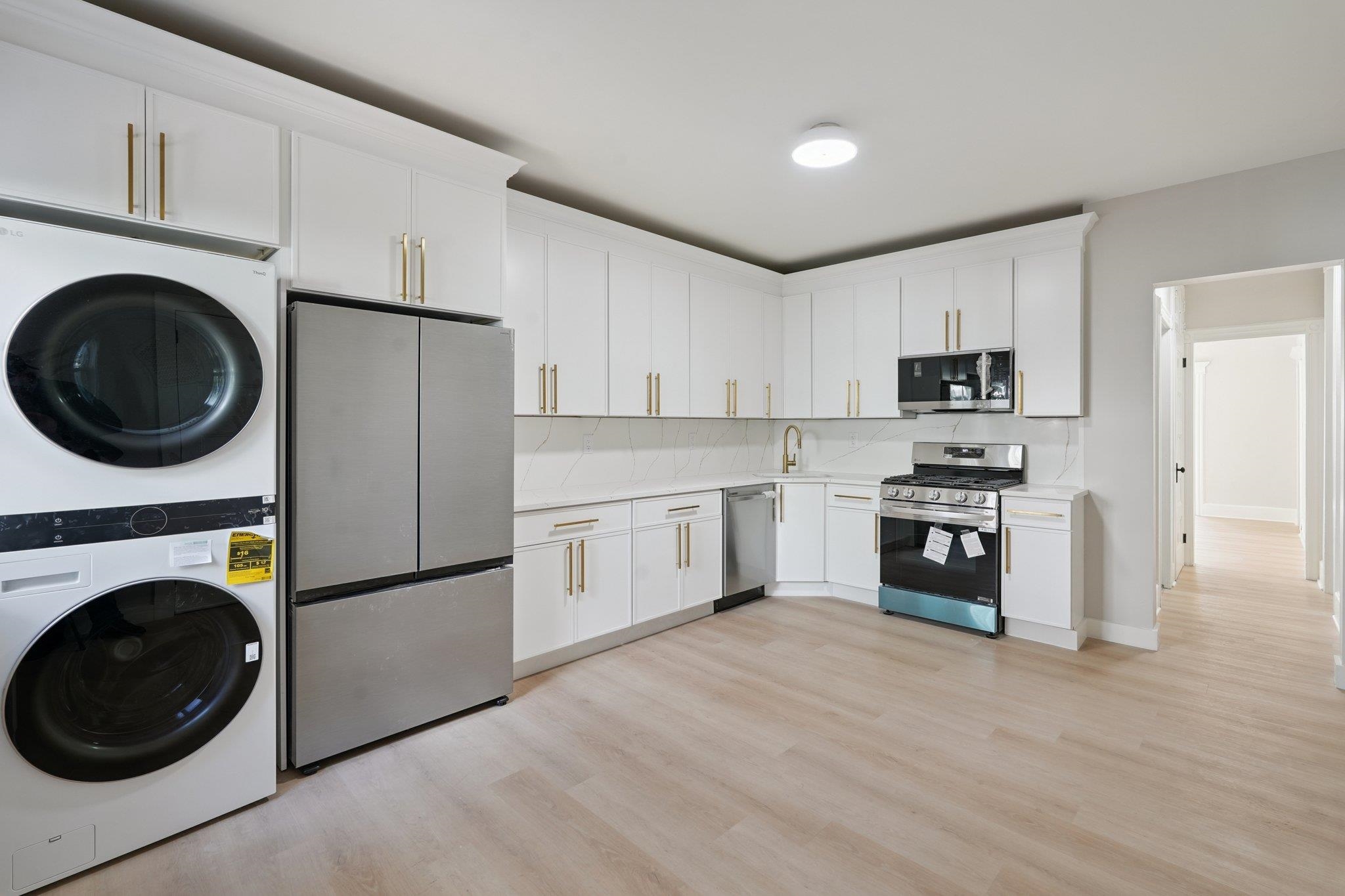 HIGHEST AND BEST / FINAL OFFERS WEDNESDAY at 3 pm. Discover this beautifully renovated 3-level home in the heart of Bayonne! Situated on an Oversized 33 X 100 Lot this massive property is wrapped in all brand new siding and offers a carport parking out front. Walk in to a beautifully renovated home, completely turn key. The kitchens are fantastic with 36-inch high cabinetry, extra-wide Samsung refrigerators, in-unit Washer & Dryers!, built-in microwaves and quartz counter tops and matching backsplashes. The bathrooms are modern and crisp with vertically hung subway tiles, penny tile flooring and upgraded vanities, mirrors and toilets. This home offers generous living and dining rooms, and large eat-in kitchens on each floor—perfect for extended living or investment. Enjoy the modern upgrades with new flooring & modern light fixtures, Separate utilities for each floor, laundry hookups in the basement, and convenient Parking complete this move-in-ready gem!