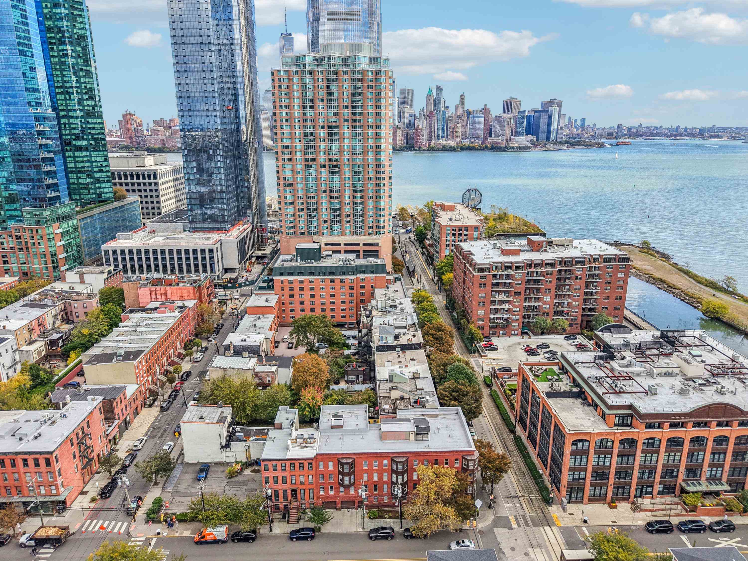 Experience elevated living in this rare S/W corner two-bedroom penthouse, offering direct, protected views of the Statue of Liberty from one of Paulus Hook’s boutique elevator buildings within the Historic District. Perfectly positioned along the Downtown Jersey City Hudson Waterfront, this residence is bathed in natural light throughout the day. Expansive windows frame picturesque views of the mature canopy and Cherry Blossoms of Essex and Washington Streets each Spring, while a graceful bay window captures golden sunsets, creating an atmosphere of calm sophistication ideal for relaxing or entertaining. Inside, the home has been thoughtfully upgraded, blending historic character with contemporary refinement. Features include refinished white oak hardwood floors, recessed lighting, and elfa custom closets with integrated shelving designed for effortless organization. Both bedrooms offer generous proportions and serene outlooks through lush greenery. The property includes one deeded garage parking space with storage, bike storage, and the security of a boutique elevator building with an updated lobby, ButterflyMX smart intercom, and optional EV charging. Located moments from the Hudson River Waterfront Walkway, Morris Canal Peninsula, Liberty State Park, Restaurant Row, and neighborhood favorites — Lighthorse Tavern, Satis Bistro, Sam A.M., and Perquin — this penthouse offers both vibrancy and tranquility. Commuting is effortless with Exchange Place PATH (7 min), Paulus Hook and Warren St Ferries (5 min), and Light Rail providing seamless access to Manhattan and beyond. Whole Foods, CVS, and everyday conveniences are just blocks away. Zoned for the coveted PS 16, just two blocks away, this residence captures the rare balance of historic charm, modern comfort, and the serene beauty of Paulus Hook’s mature canopy — a truly special offering along Jersey City’s distinguished waterfront.