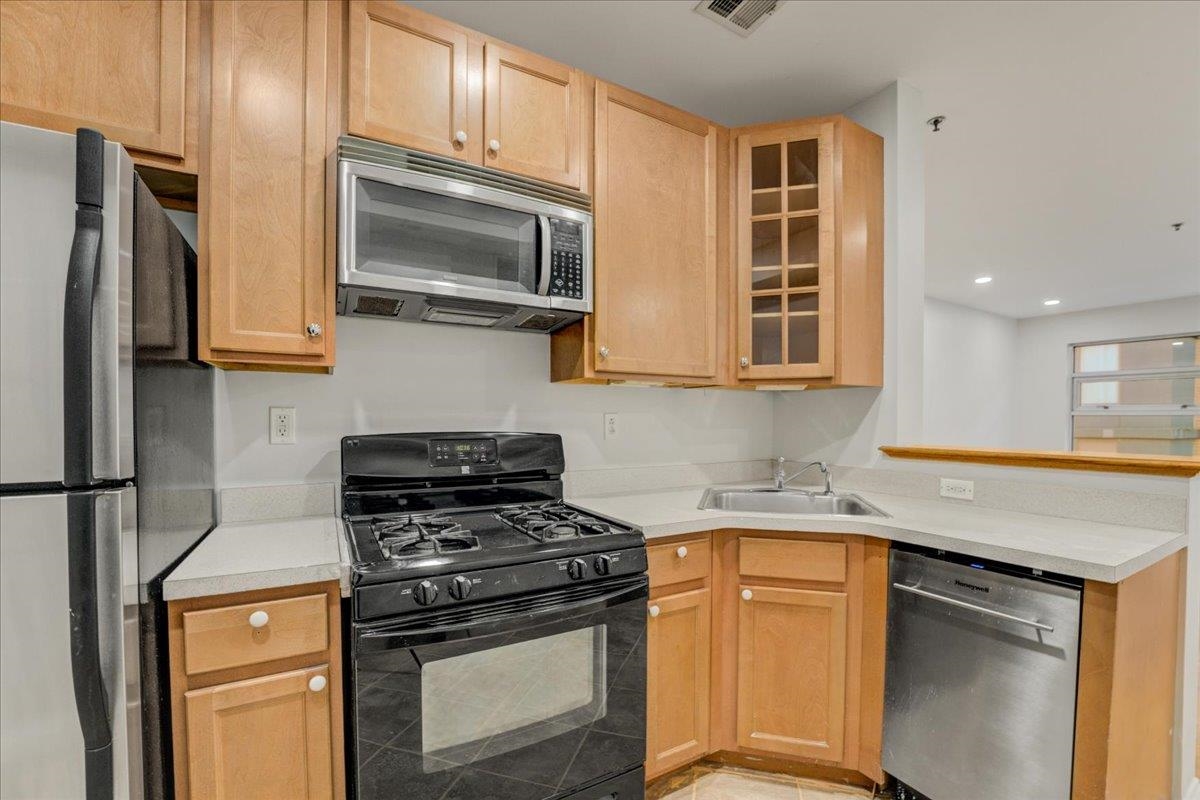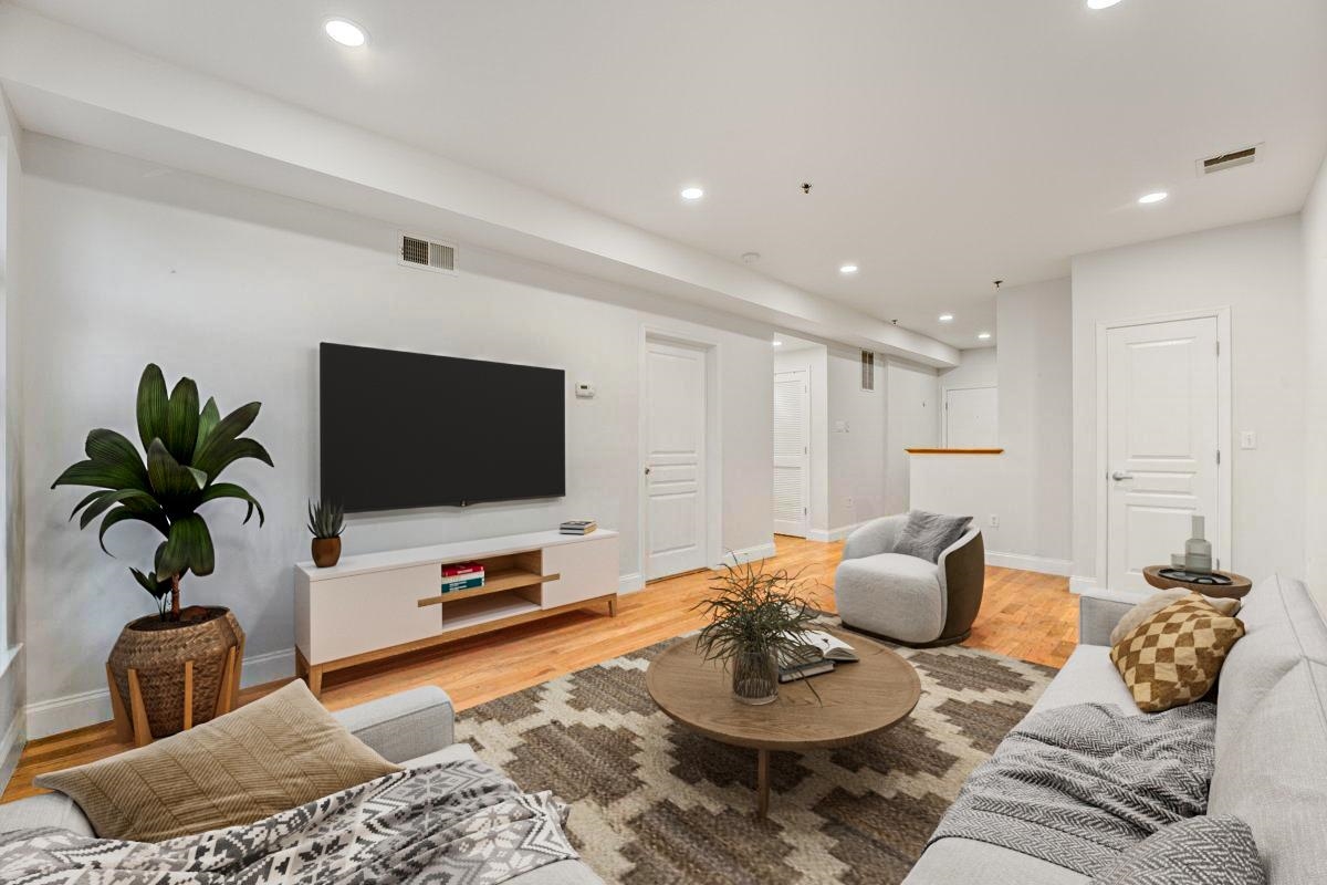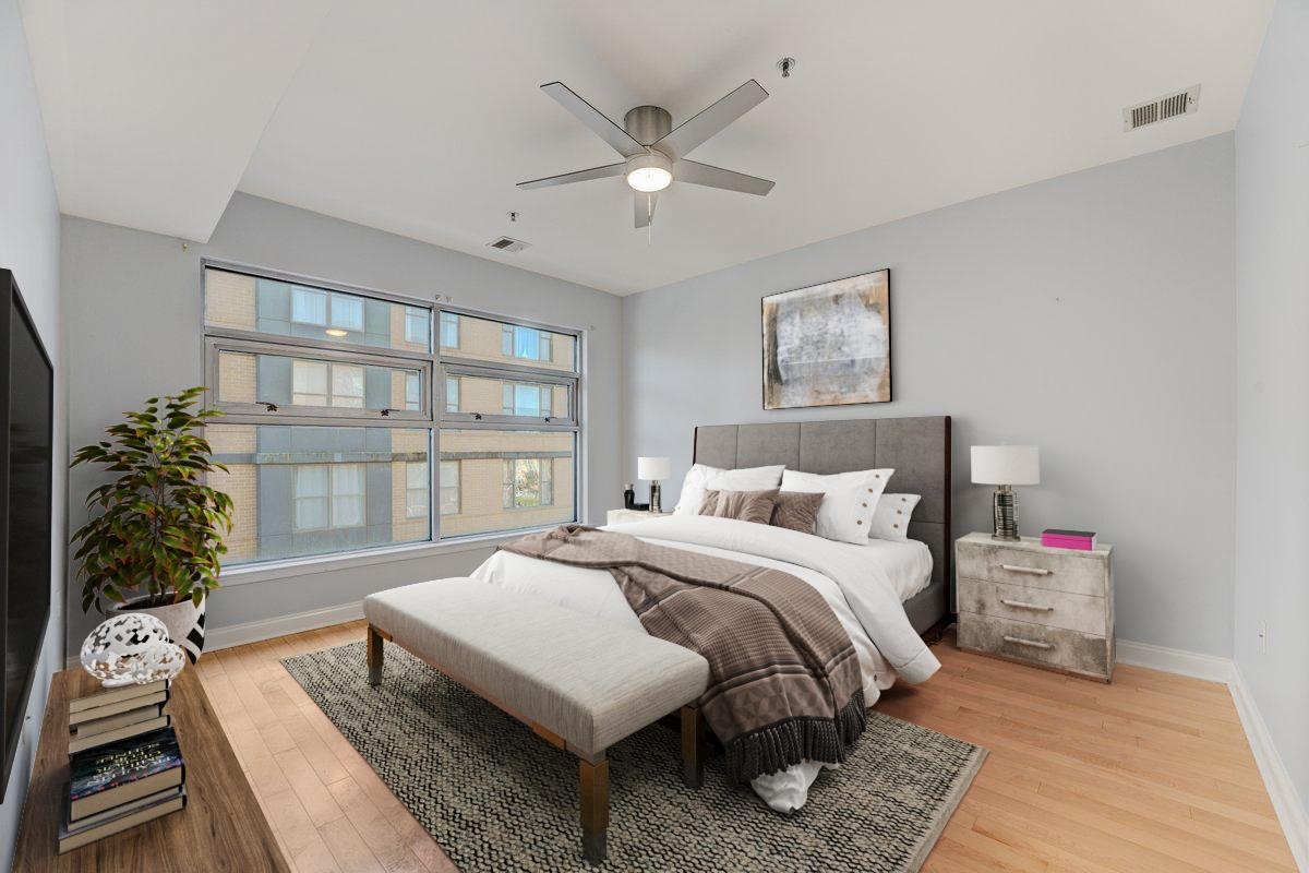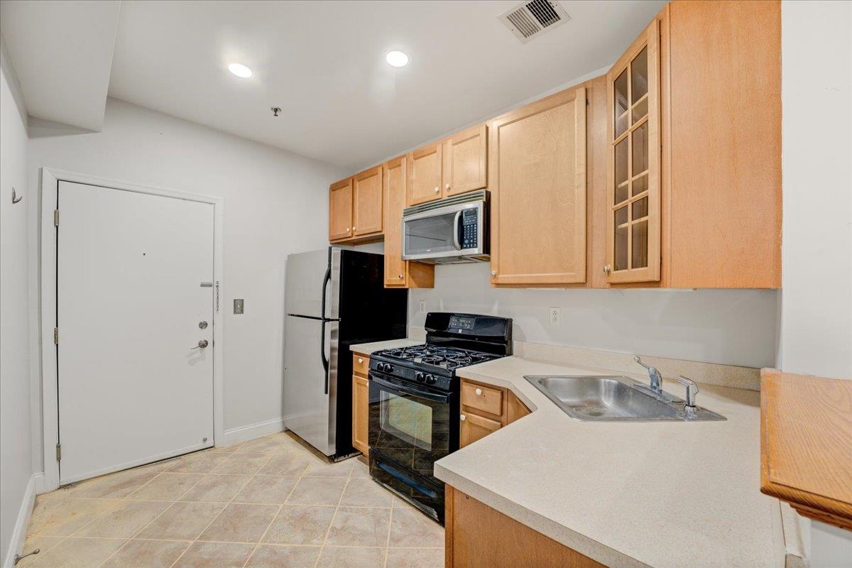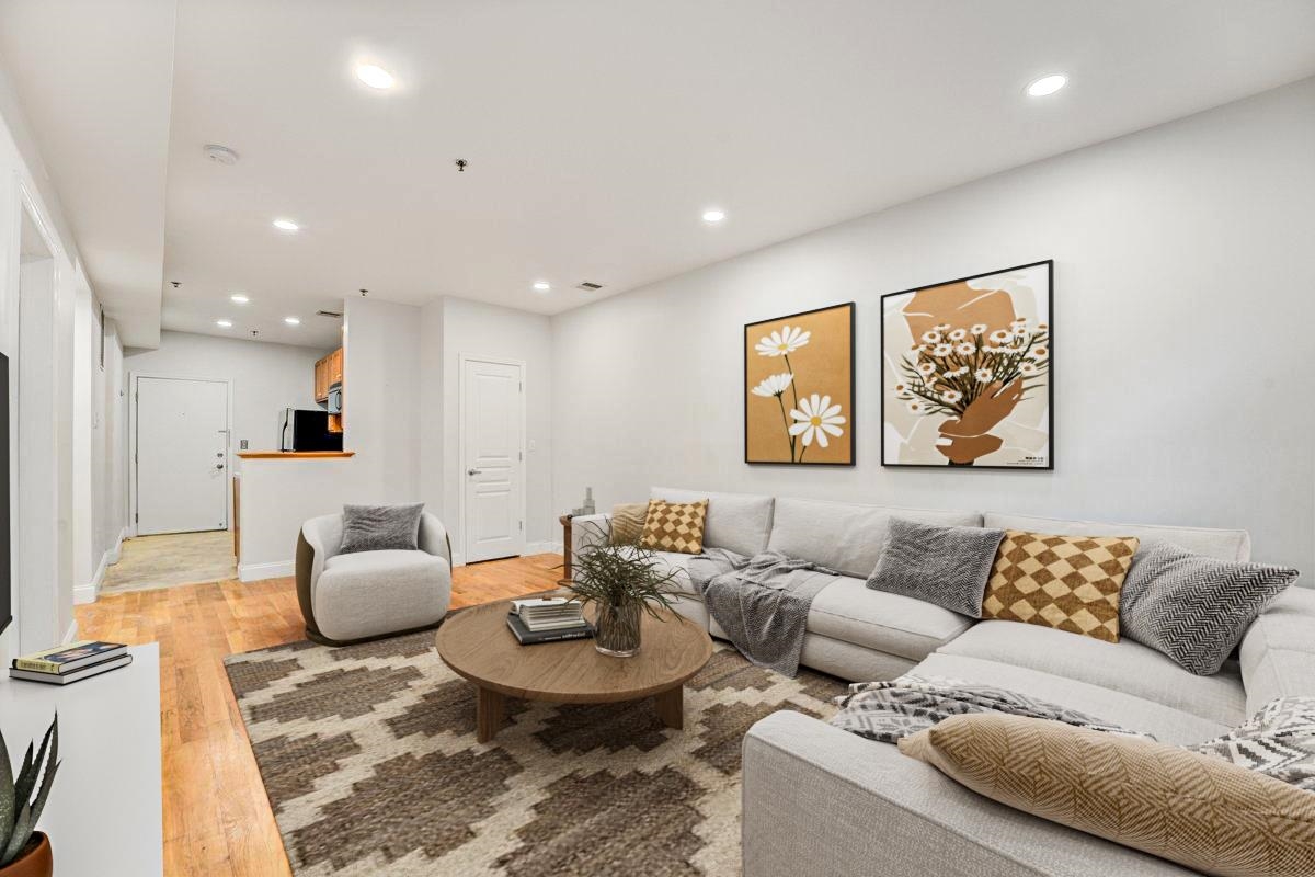 Welcome to this beautifully updated condo, perfectly situated in a prime location near shopping, dining, and downtown with an easy commute to NYC. Located on the 5th floor, this stunning unit offers breathtaking views and modern comfort in a well-maintained elevator building, making move-in and everyday living effortless. Step inside to discover an inviting open layout featuring floor-to-ceiling windows that fill the space with natural light and highlight the high ceilings throughout. The home boasts hardwood floors, recessed lighting, and fresh paint, creating a bright and contemporary atmosphere. The kitchen features tile flooring, ample cabinetry, and a seamless flow into the living and dining area ideal for entertaining or relaxing. The spacious bedroom offers comfort and style, while the full bath includes a soaking tub, perfect for unwinding after a long day. Additional highlights include in-unit laundry with washer and dryer, central AC, and forced hot air heating. This move-in-ready home combines modern updates, convenience, and exceptional location a perfect opportunity for homeowners or investors alike.