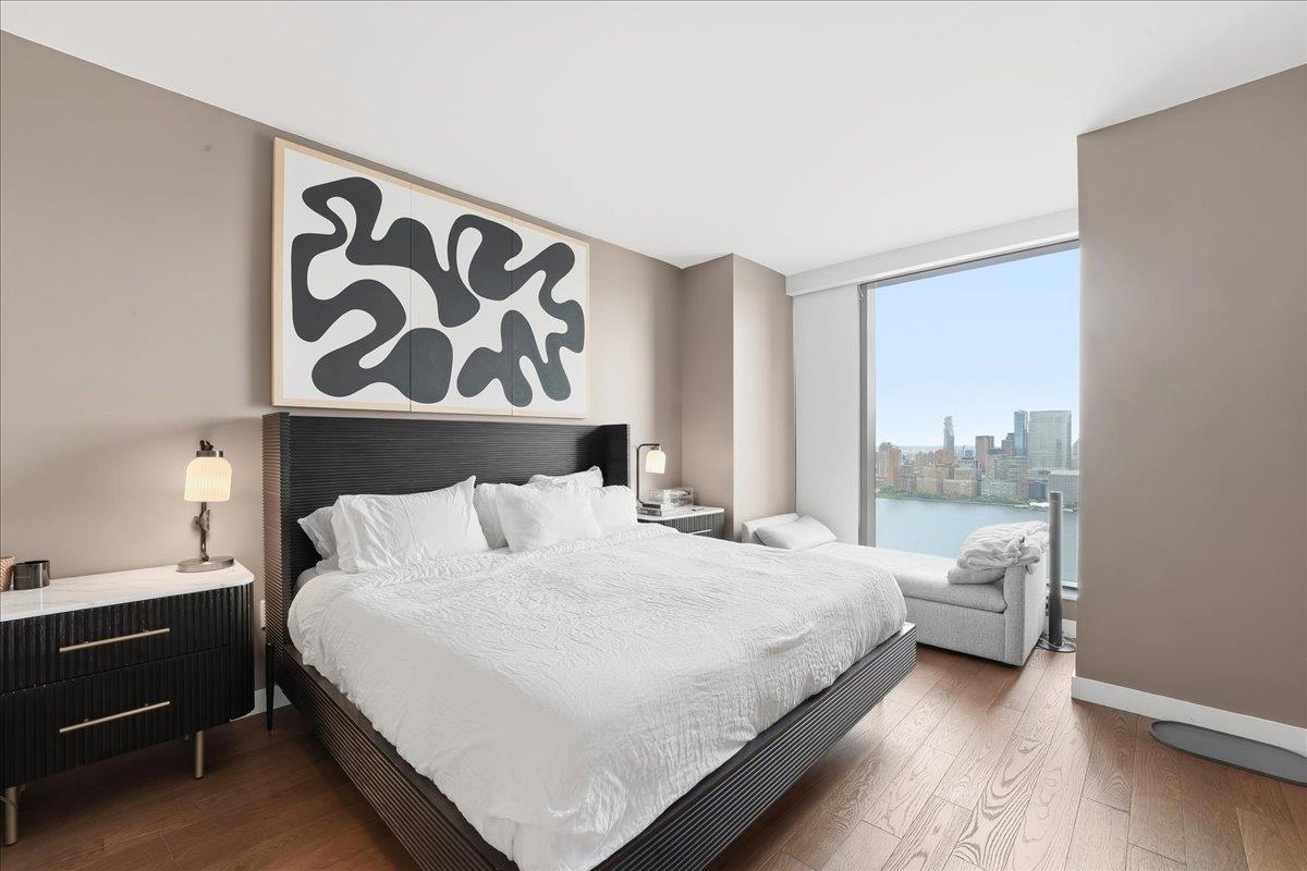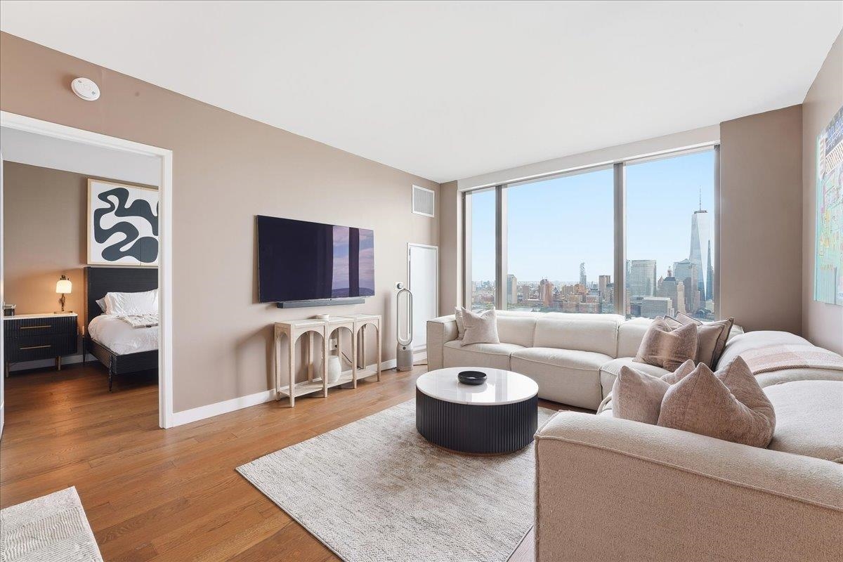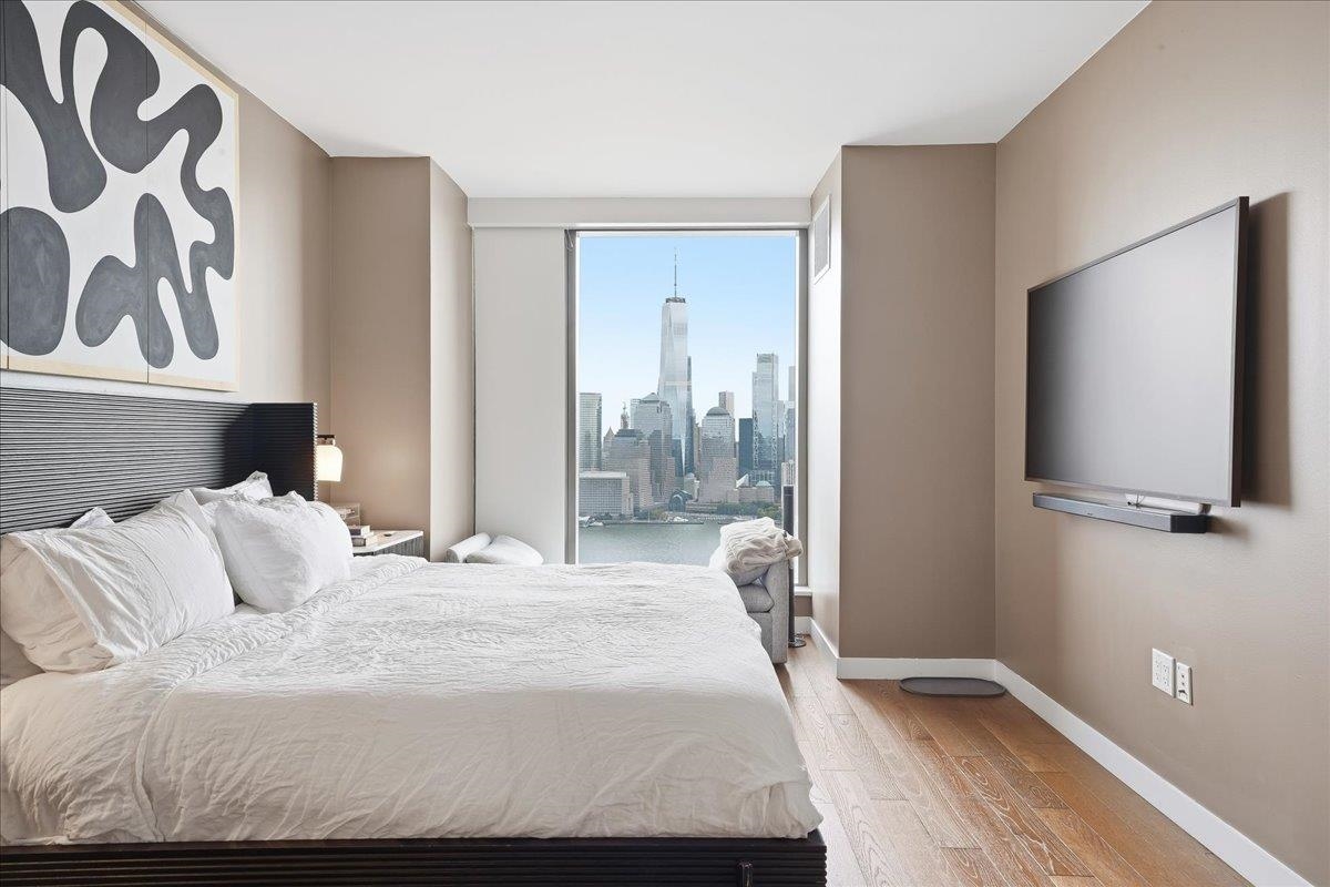EXPERIENCE UNPARALLELED LUXURY HIGHRISE LIVING! Welcome home to Residence #4308 at the iconic 99 Hudson Street, Jersey City’s most prestigious waterfront address. This expansive 1285 SF two-bedroom, two-bathroom home features floor-to-ceiling windows framing stunning panoramic New York City views from every room! The modern finishes include 5” Wide Oak Flooring, waterfall island with Quartz Stone Countertops and Backsplash, White Lacquered Cabinetry, Stainless Steel Appliance fixtures by Kohler and ample storage throughout. The bathrooms have custom wood vanities with quartz stone countertops and imported ceramic statuario flooring and wall tiles from Italy and polished chrome fixtures. There are energy efficient heating and cooling systems with individual NEST climate controls and a front loaded washer and dryer by Bosch. The owner installed custom built-in shelving in all the closets, custom electric blinds that can be controlled with a remote and a Sonos surround sound system installed into the ceiling. Situated in Exchange Place in the heart of downtown Jersey City just a 5-minute walk to the PATH and Ferry stops and just 15 minutes from Manhattan by car. 99 Hudson is the tallest building in the history of New Jersey stretching 79 stories into the sky and offering 65,000 square feet of amenities. The amenities include a Porte-Cochere and indoor parking garage, rooftop pool deck with grills and a full kitchen, a dog park, playground etc. In door facilities include a fitness center, a spa with a hot tub, sauna and steam room, lounges, business center, children’s playroom, golf simulator, demonstration kitchen, poker room, 24-hour concierge and more.