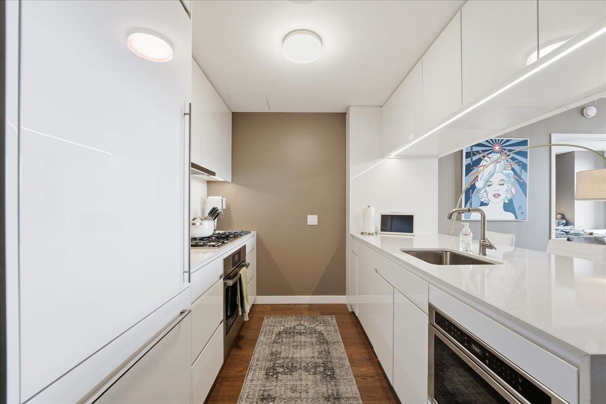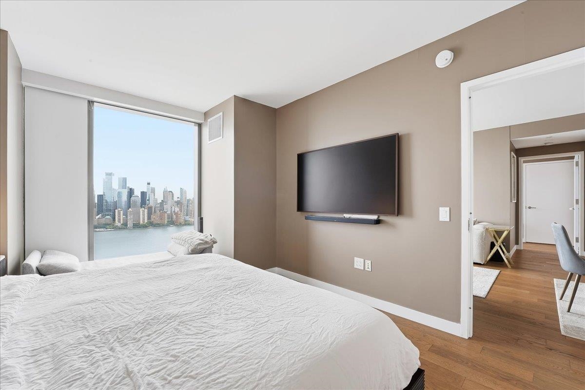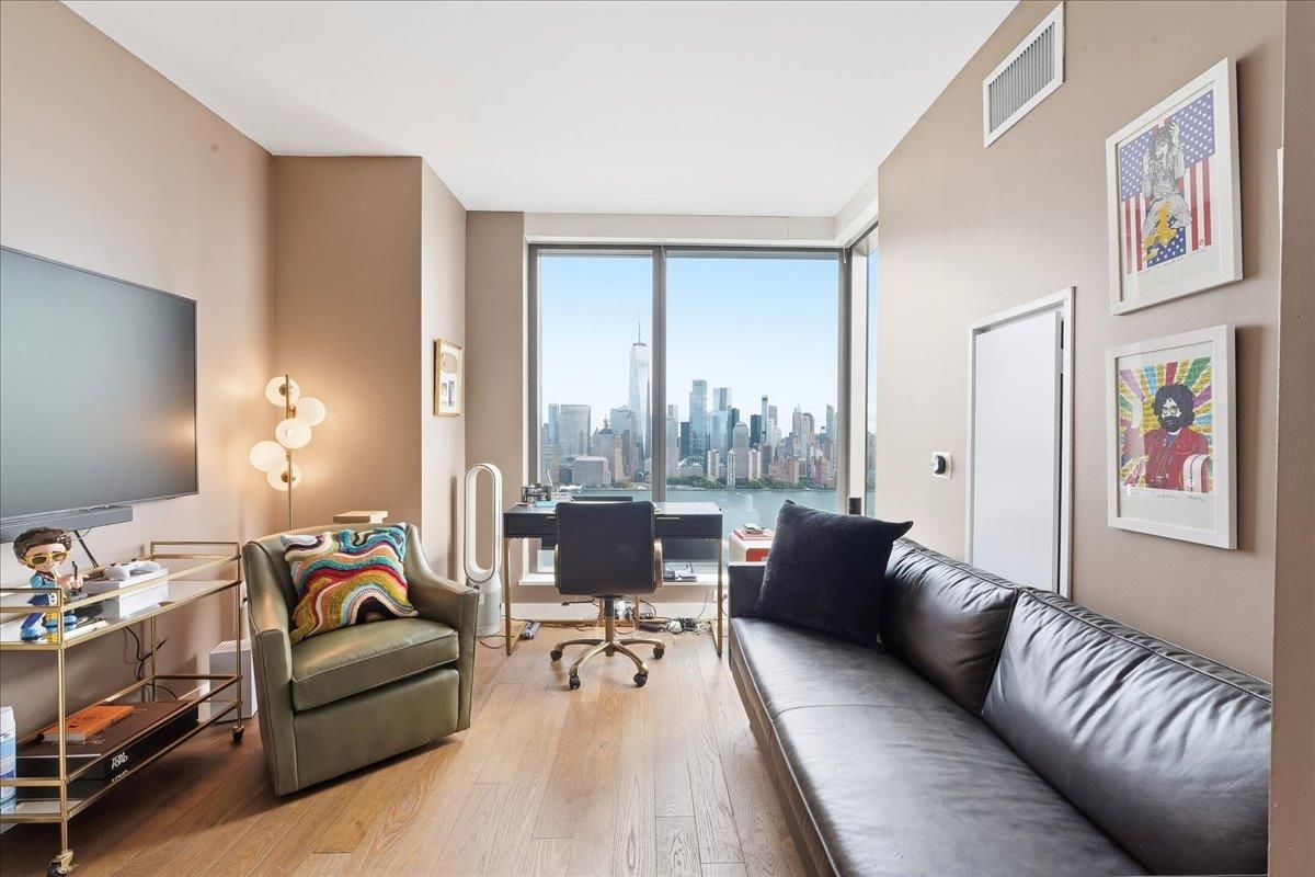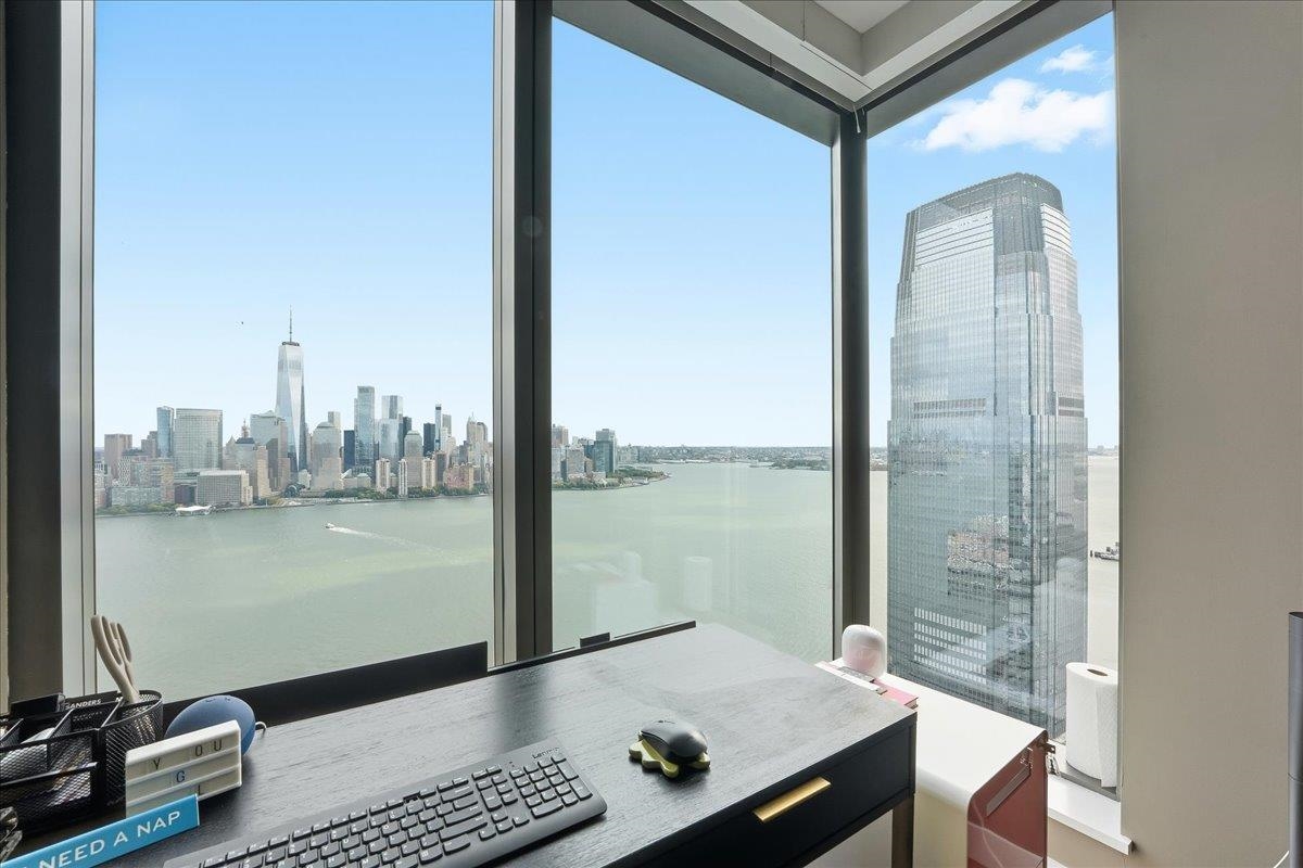 EXPERIENCE UNPARALLELED LUXURY HIGHRISE LIVING! Welcome home to Residence #4308 at the iconic 99 Hudson Street, Jersey City’s most prestigious waterfront address. This expansive 1285 SF two-bedroom, two-bathroom home features floor-to-ceiling windows framing stunning panoramic New York City views from every room! The modern finishes include 5” Wide Oak Flooring, waterfall island with Quartz Stone Countertops and Backsplash, White Lacquered Cabinetry, Stainless Steel Appliance fixtures by Kohler and ample storage throughout. The bathrooms have custom wood vanities with quartz stone countertops and imported ceramic statuario flooring and wall tiles from Italy and polished chrome fixtures. There are energy efficient heating and cooling systems with individual NEST climate controls and a front loaded washer and dryer by Bosch. The owner installed custom built-in shelving in all the closets, custom electric blinds that can be controlled with a remote and a Sonos surround sound system installed into the ceiling. Situated in Exchange Place in the heart of downtown Jersey City just a 5-minute walk to the PATH and Ferry stops and just 15 minutes from Manhattan by car. 99 Hudson is the tallest building in the history of New Jersey stretching 79 stories into the sky and offering 65,000 square feet of amenities. The amenities include a Porte-Cochere and indoor parking garage, rooftop pool deck with grills and a full kitchen, a dog park, playground etc. In door facilities include a fitness center, a spa with a hot tub, sauna and steam room, lounges, business center, children’s playroom, golf simulator, demonstration kitchen, poker room, 24-hour concierge and more.