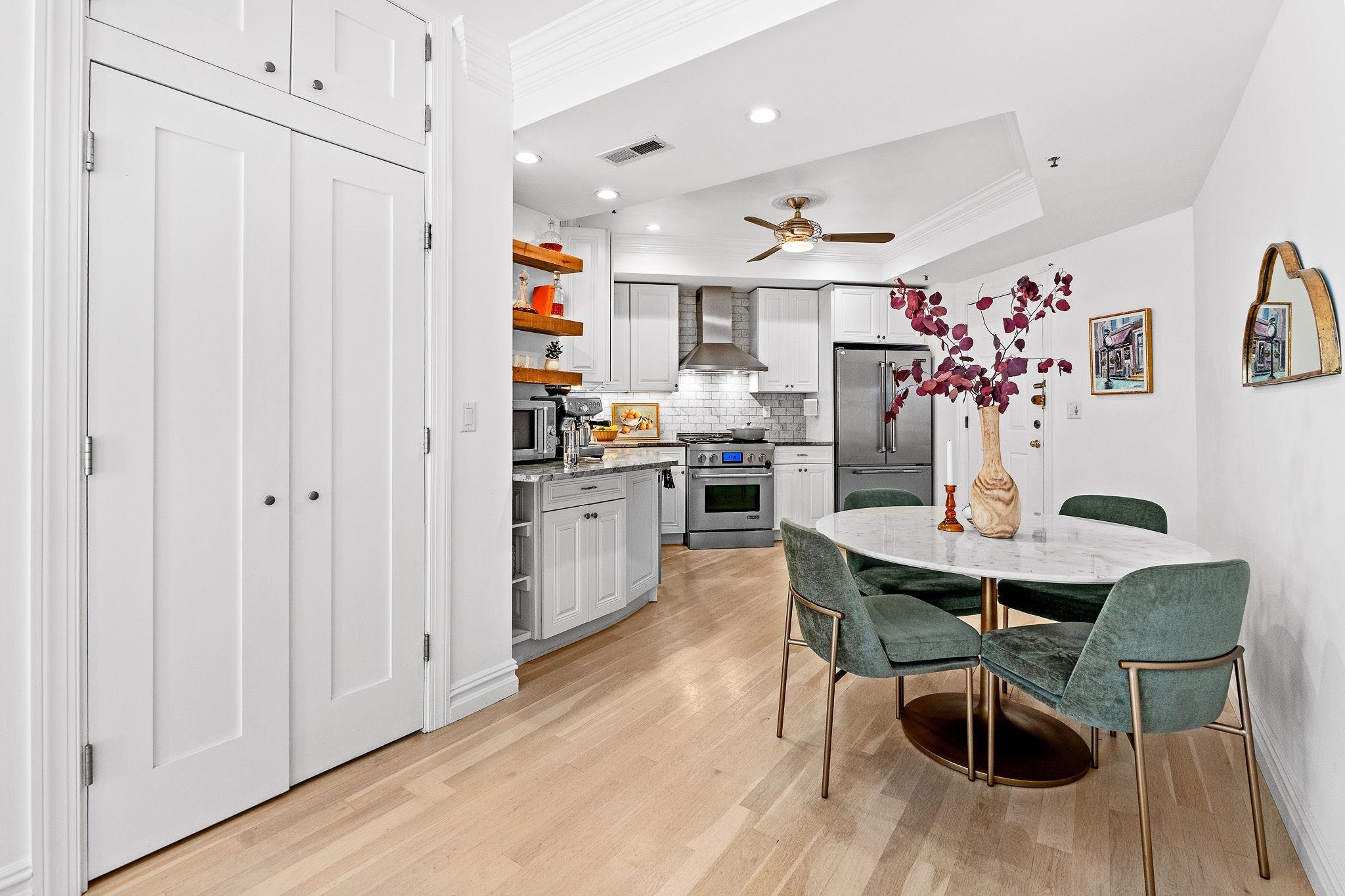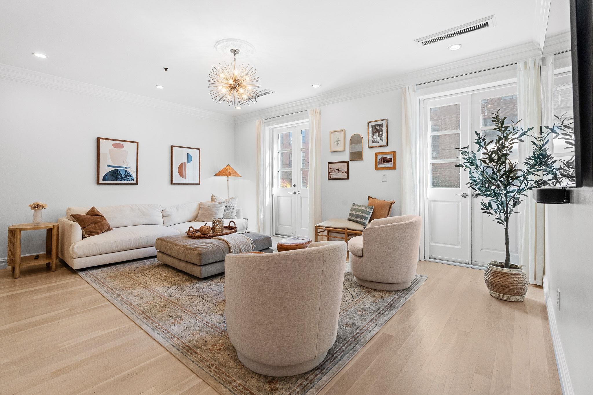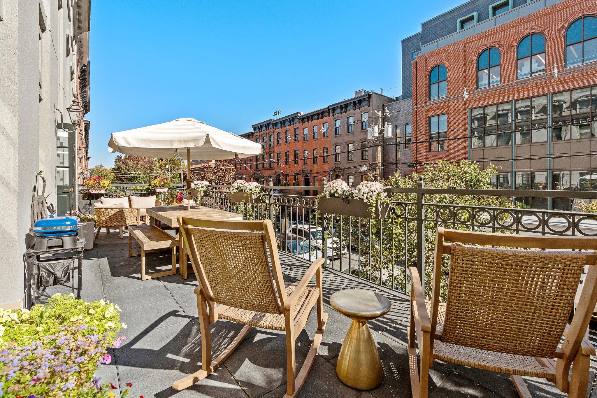 Historic Elegance Meets Modern Sophistication Discover a rare opportunity to own one of Hoboken’s most distinctive residences at 600 Hudson Street. Perched within a landmarked historic building, Residence 2B offers a timeless blend of architectural character and contemporary luxury — all centered around an extraordinary 500-square-foot private terrace overlooking tree-lined Hudson Street. Inside, the home reveals a bright, open floor plan with soaring high ceilings, four pairs of French doors, and an abundance of natural light that blurs the line between indoor and outdoor living. The chef’s kitchen is both functional and refined, featuring a copper farmhouse sink, premium JennAir stainless steel appliances, and custom finishes that speak to craftsmanship and style. The primary bedroom suite showcases tailored built-ins, generous storage, and a serene ambiance ideal for rest and retreat. A versatile den provides the perfect home office, reading nook, nursery or guest space. Every detail — from the millwork to the light fixtures — reflects the thoughtful design that makes this home truly one of a kind. Additional highlights include an in-unit washer and dryer, ample closet space, and the convenience of an elevator in a historically significant building. Set in one of Hoboken’s most coveted locations, 600 Hudson Street is moments from the PATH train, ferry, boutiques, cafés, and the Hudson River waterfront — offering a rare lifestyle of character, comfort, and convenience.
