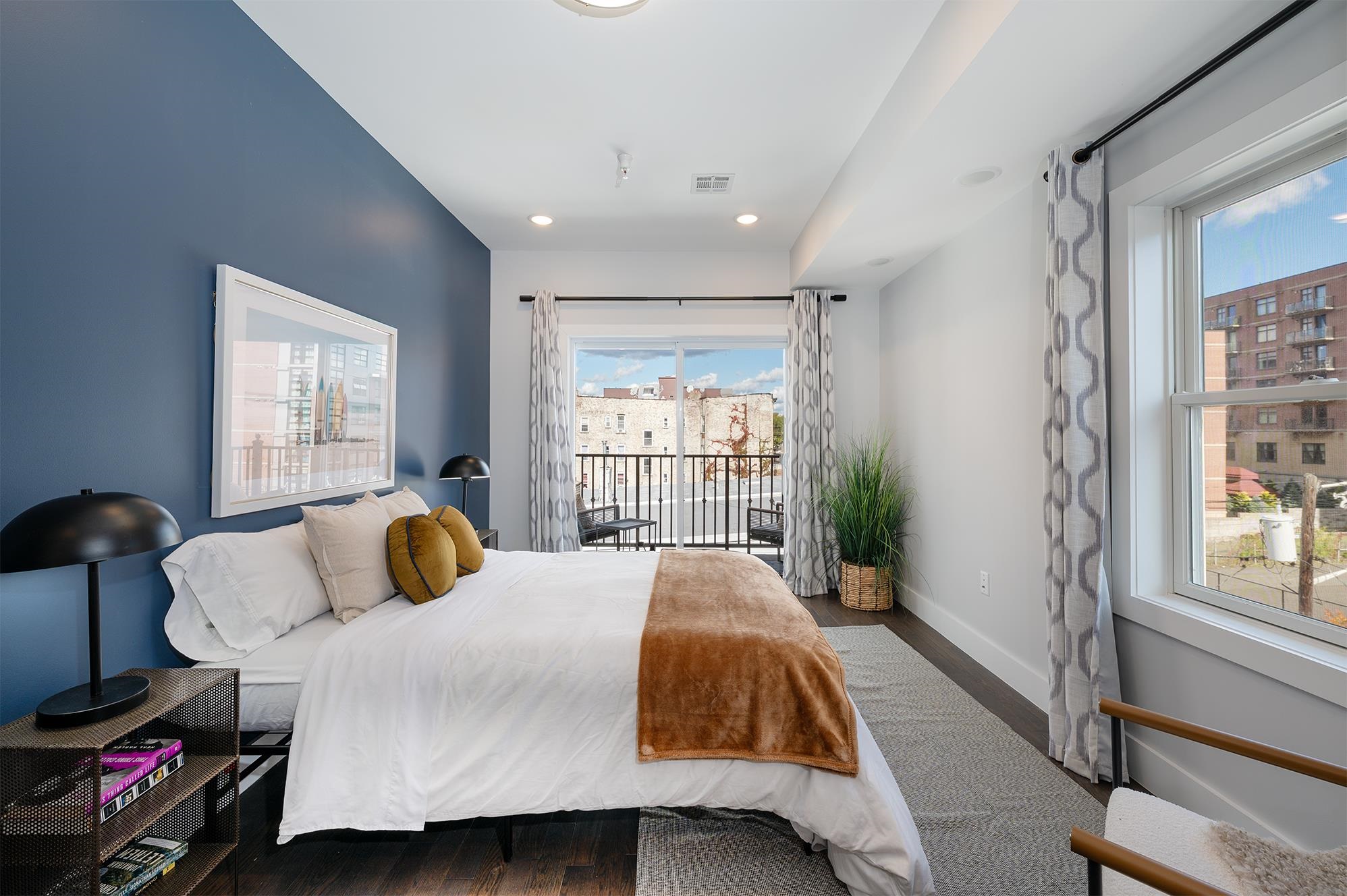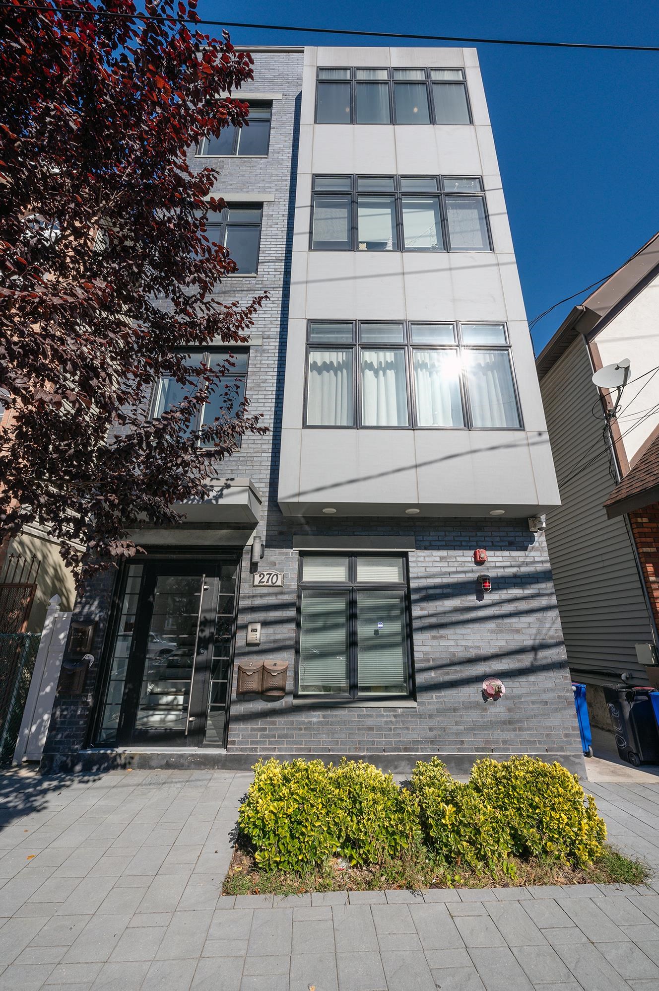 Conveniently located near Journal Square PATH, this 1,069 sf condominium features 2 bedrooms, 2 bathrooms, balcony + private roof deck, Central AC and in-unit washer/dryer. With Southern, Eastern and Northern exposures, every room is filled with incredible natural light. Enter the home through the open concept South-facing, spacious living room featuring large corner windows as well as hidden storage under bench seating. The kitchen is efficiently laid out with plentiful custom cabinetry, stainless-steel appliances, vented exhaust over the gas stove, window over the deep kitchen sink and seating at both the peninsula breakfast bar and dedicated dining area. The guest bedroom has a large window with views of open sky and closet with built-ins. The guest full bathroom with bathtub has storage in vanity and medicine cabinet. The massive primary bedroom features a tranquil balcony, closet with built-ins and an en-suite bathroom with bathtub. Last but not least, enjoy the 400 sf private roof deck with unobstructed 360 views perfect for entertaining. With immediate access to the Journal Square Transportation Center, your commute will be a breeze with PATH, bus and NJ Transit options. Enjoy the charming café at the corner for your morning coffees, nearby shops and restaurants at India Square, as well as Lincoln Park, a crown jewel of the Hudson County Park System with a 9-hole golf course, 21 tennis courts, numerous sports fields, a lake and trails.