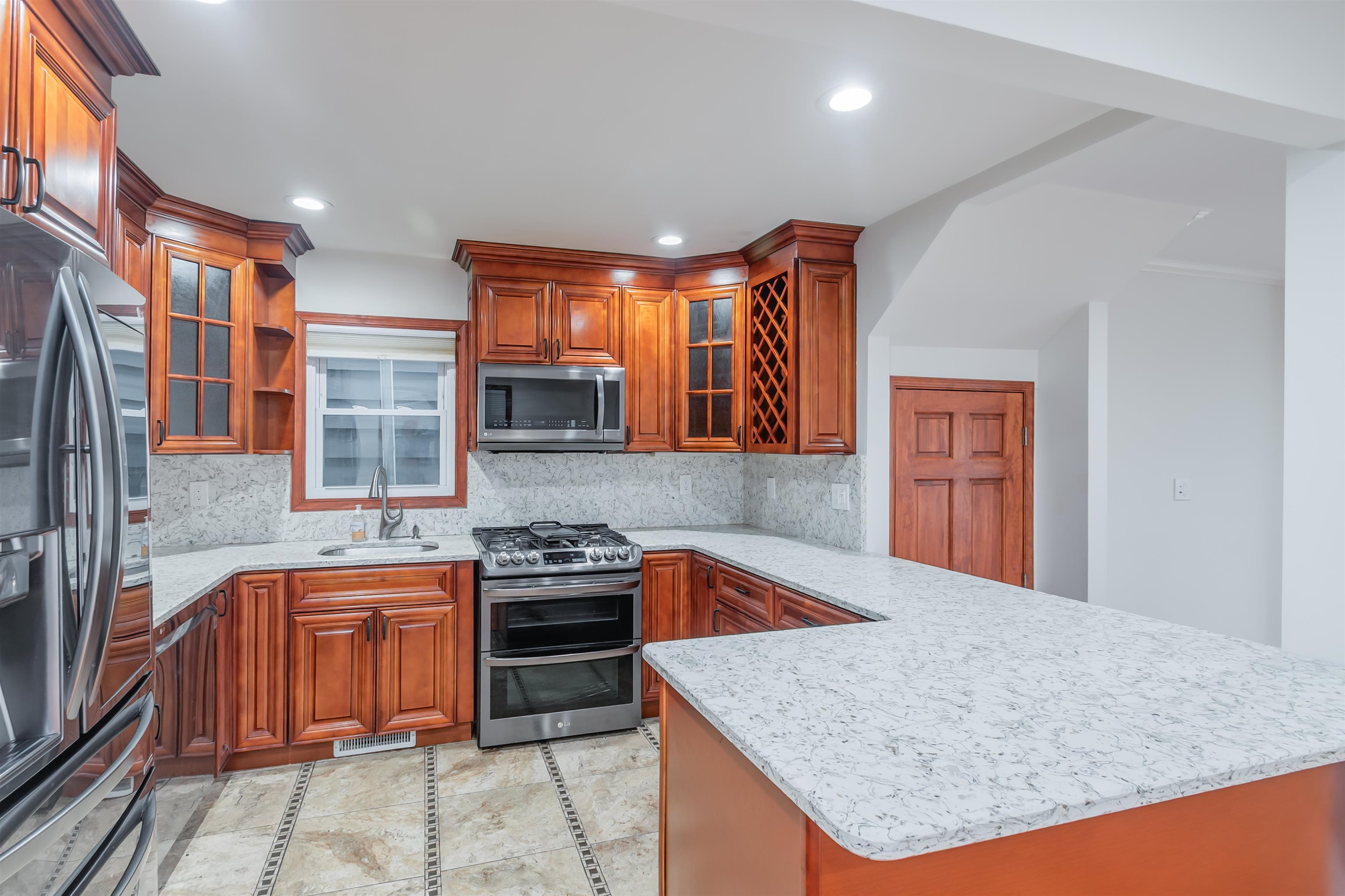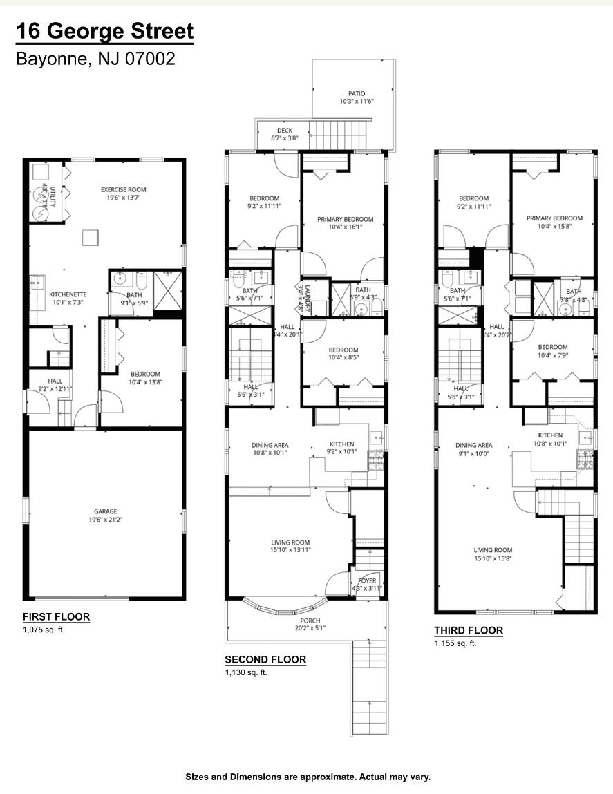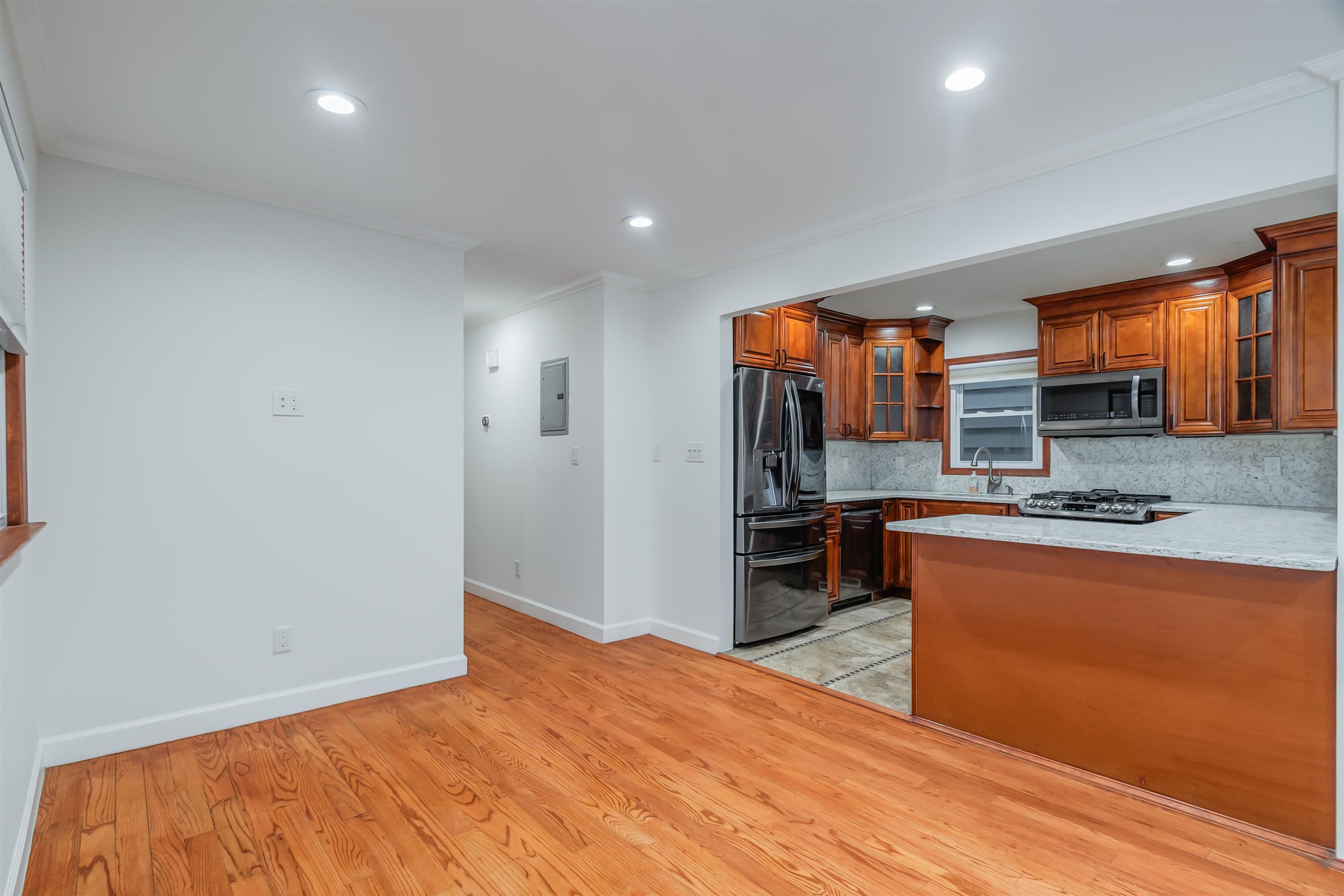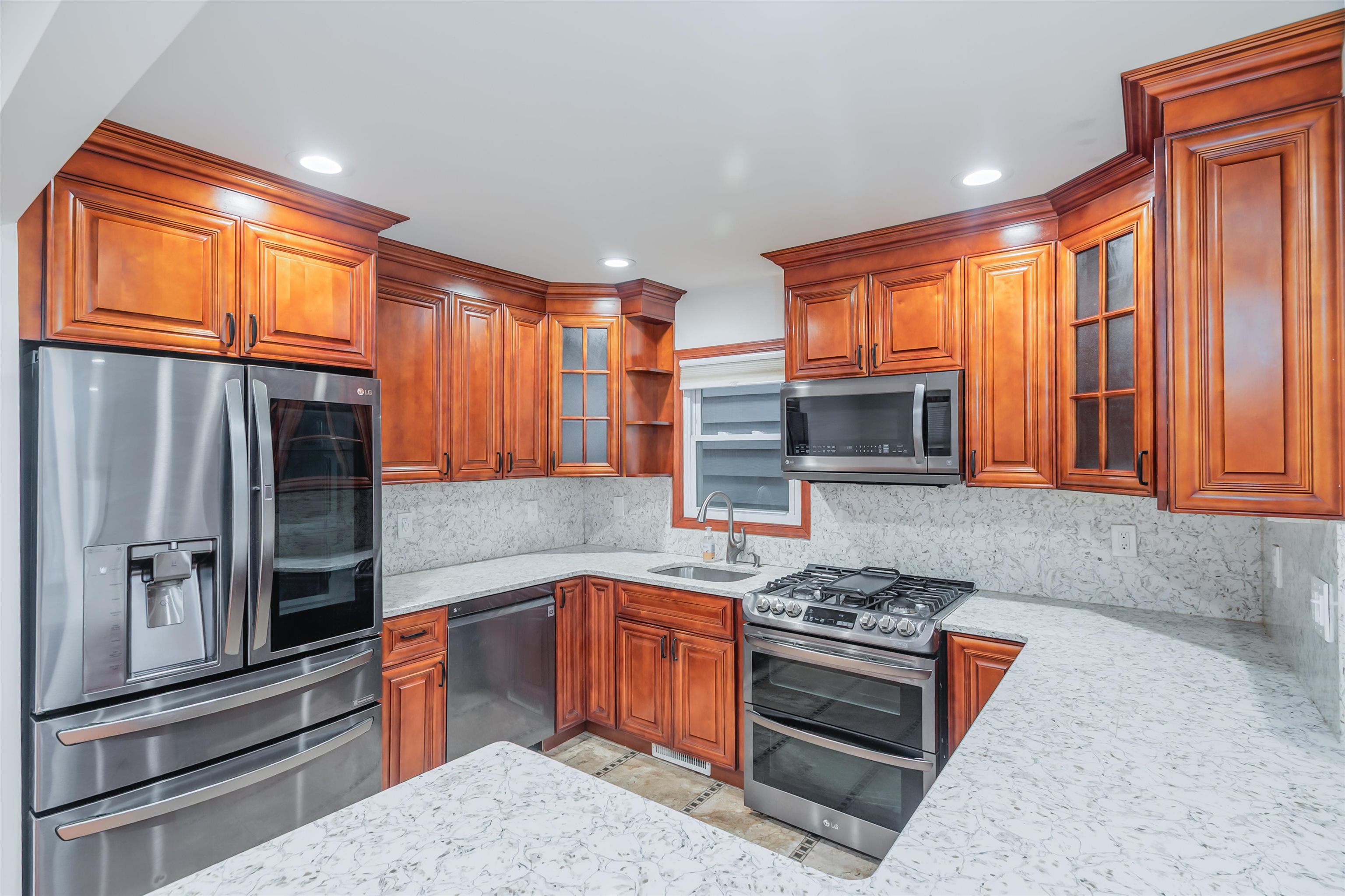 Welcome to 16 George Street, a beautifully renovated two-family home in the highly desirable city of Bayonne! Situated on a 25 x 100 lot with nearly 3000 sq. ft. of living space, this property offers the perfect combination of modern luxury, income potential, and unbeatable commuter convenience. Both units feature spacious 3-bedroom, 2-bathroom layouts with gleaming hardwood floors, recessed lighting, and thoughtfully designed open-concept living areas. The fully renovated kitchens (2018) boast stainless steel appliances, quartz countertops, and modern cabinetry—ideal for any home chef.Enjoy year-round comfort with central heating and cooling, plus the convenience of in-unit laundry on each floor. The finished basement includes an additional bedroom, bathroom, and kitchen, making it perfect for extended family, a guest suite, or extra rental income.Step outside to a private backyard—perfect for entertaining or relaxing—and take advantage of a covered garage and additional driveway parking. Minutes to the 8th Street Light Rail Station, with quick access to Jersey City, Hoboken, and direct connections to NYC via PATH. Major Bus Lines nearby for easy travel into Manhattan and across Hudson County. Quick access to the NJ Turnpike (Exit 14A) and Bayonne Bridge for fast commutes. Close to top-rated schools, public parks, and the Bayonne waterfront. Surrounded by major retailers, shopping plazas, restaurants, and grocery stores—including Hudson Mall, South Cove Commons, and Bayonne's vibrant Broadway district. So whether you're looking for a turnkey investment or a multi-generational living setup, 16 George Street checks every box. Don’t miss your chance to own this versatile, move-in-ready home in one of Bayonne’s most connected locations, TODAY!