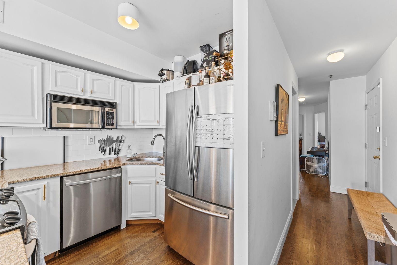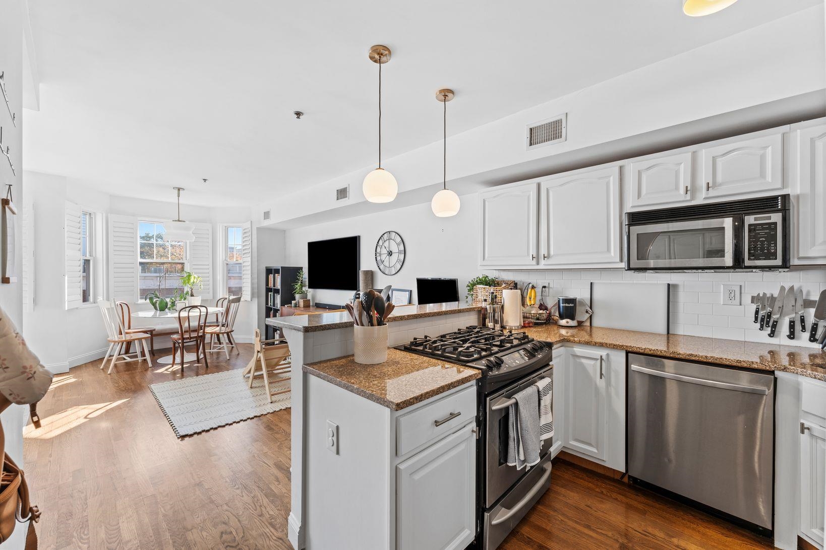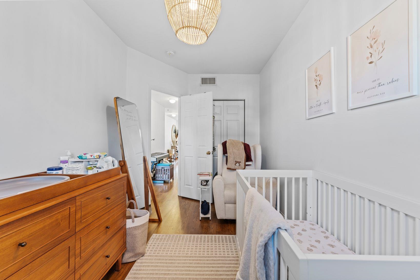 Step into your beautiful new home – a 2 bed/2-bath top-floor condo with a private balcony, a primary suite, central heating and cooling, in-unit W/D, hardwood floors, and deeded garage parking and storage! This property checks off all the important boxes. The location, meanwhile, is superb. 224 Willow Ave is roughly half a mile from the PATH and Hoboken Terminal and just a couple of doors down from Mojo Coffee Company and Zack’s Oak Bar & Restaurant and a stone’s throw from Chango Kitchen, Ovale Pizza, and Prime Time Convenience for last-minute grocery items. Beautiful Church Square Park, which features a popular playground and dog run, is around the corner, while ACME supermarket is just a few blocks north. This 4th-floor walkup features a spacious living and dining area flooded with abundant east-facing natural light and partial views of the Empire State Building and Hudson Yards. The modern open-concept kitchen features granite counters and a peninsula with enough space for three bar stools. The appliances include a large French-door Samsung fridge and stainless-steel dishwasher. Enjoy the privacy of a spacious primary suite, featuring a quiet, west-facing bedroom, a roomy walk-up closet, and a modern and well-lit en-suite bathroom with a jacuzzi tub. The second bedroom could easily double as a home office and has access to a recently repainted balcony with perfect sunset views and plenty of room for a table and lounge chairs for morning coffee or an evening cocktail. An added benefit of the top-floor location is that you don't have to worry about neighbors stomping above. A smart Nest thermostat allows for the control of central heating and cooling with ease, while the stacked Frigidaire washer-and-dryer in the laundry closet provides the convenience of in-unit laundry while being out of view. A new, commercial-grade AO Smith dedicated water heater ensures you can enjoy long, hot showers in the cold winter months. The deeded tandem garage parking and dedicated storage space makes this listing even more special. But don’t delay, with these features and at this price point, this Compass Exclusive listing will go fast. Book a private viewing today!