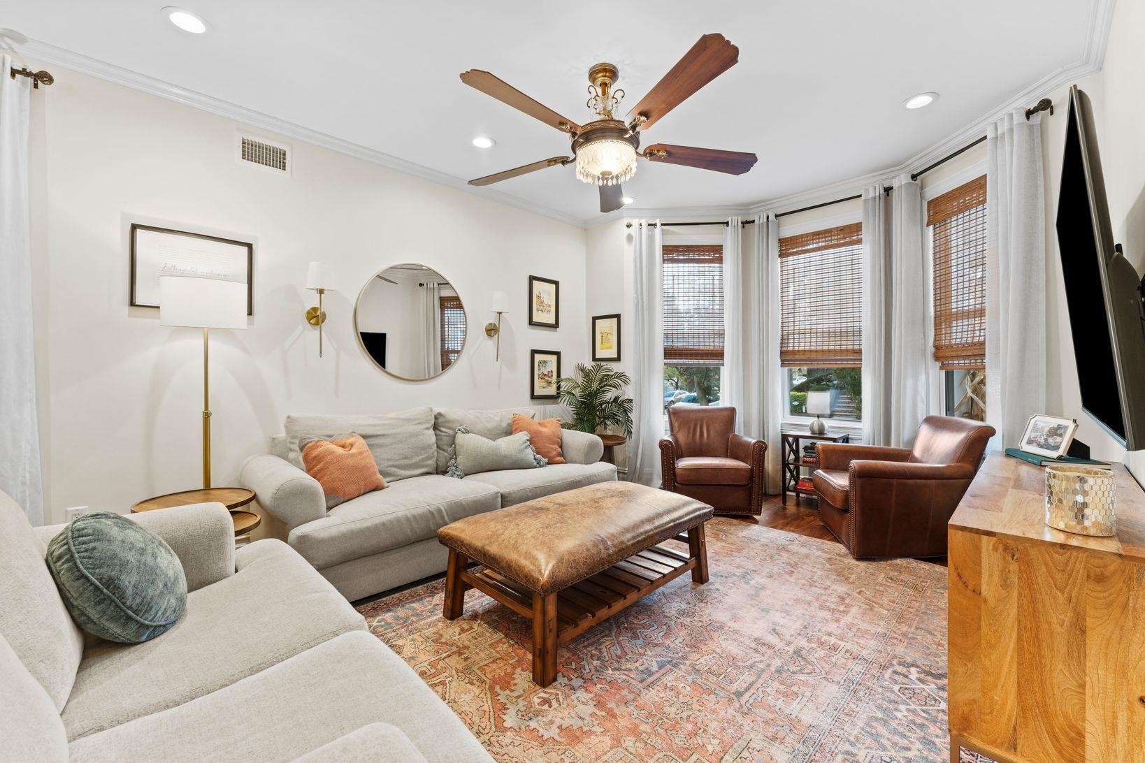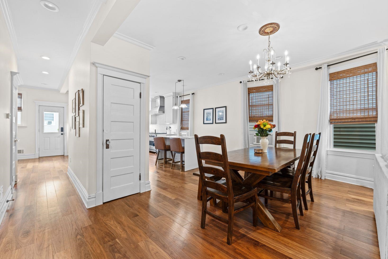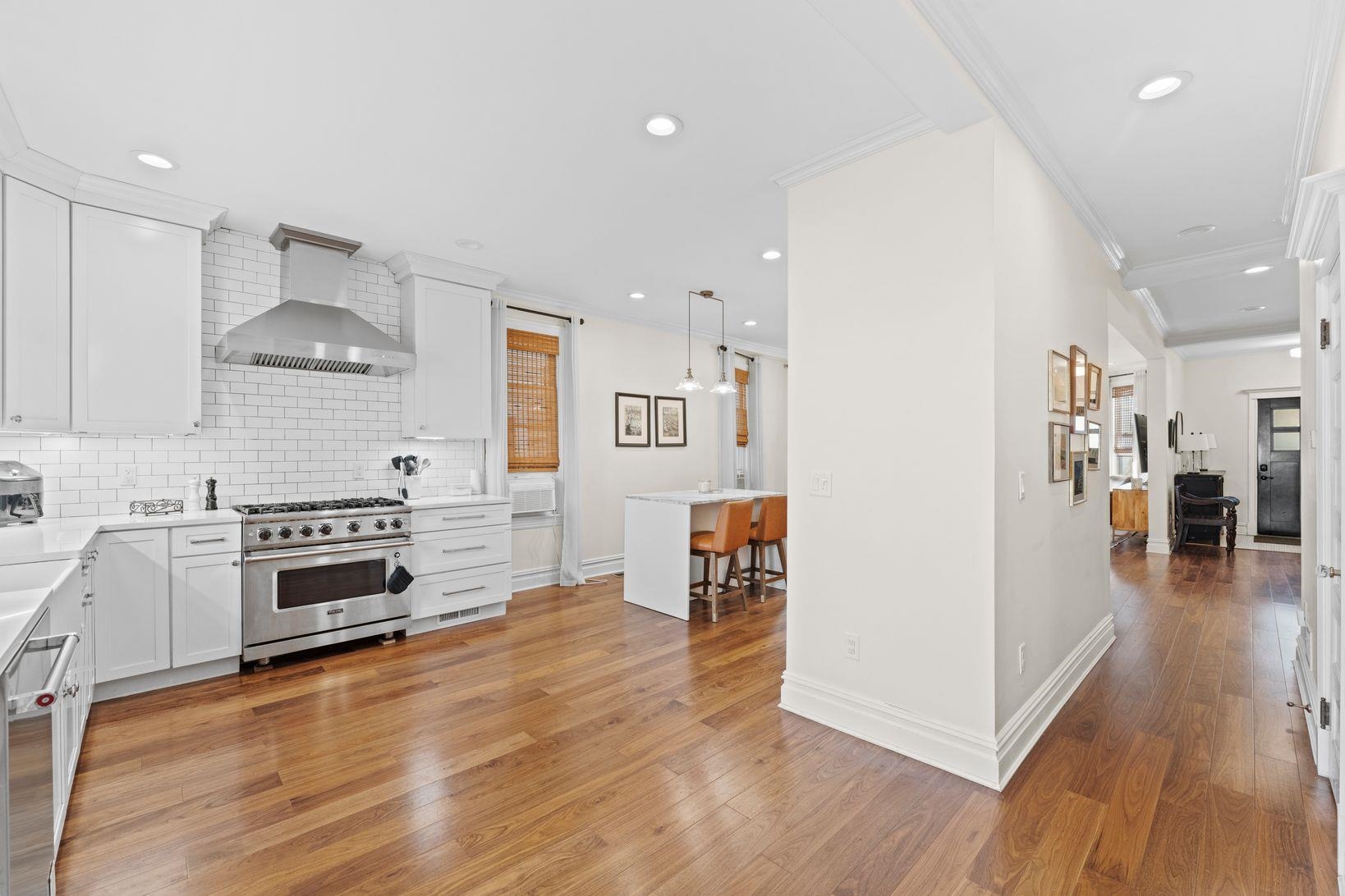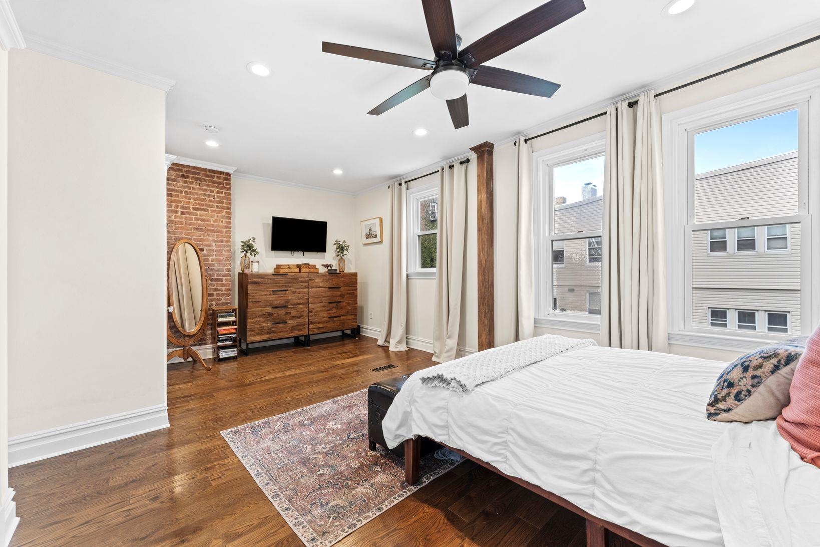 Beautifully Renovated Weehawken Home with Modern Comforts and Private Outdoor Space This tastefully updated Weehawken single-family home offers a seamless blend of modern convenience and timeless character. The main level features an open layout with a bright living room, hardwood floors, a dining area, a full bathroom with extra storage, and a thoughtfully designed kitchen. The chef’s kitchen is outfitted with custom cabinetry, a spacious island, and premium stainless-steel appliances including a gas range, refrigerator, microwave, and dishwasher. From the kitchen, step outside to a private backyard designed for entertaining—complete with turf, a porcelain tile patio, built-in TV stand, and sleek concrete stairs and railings surrounded by greenery. Upstairs offers three comfortable bedrooms, an office, and a fully renovated bathroom with a new walk-in shower and updated plumbing. Recent improvements include new AC units, two new water heaters, a new washer and dryer, and a rebuilt chimney with liners—providing both comfort and peace of mind. Additional updates include a new KitchenAid refrigerator, refreshed front garden with a new retaining wall and railings, and finishing touches such as a relocated chandelier and newly installed kitchen island. Conveniently located minutes from the Port Imperial Light Rail, Ferry Terminal, and Lincoln Tunnel, this home combines suburban tranquility with quick access to Manhattan. Zoned as a legal two-family.