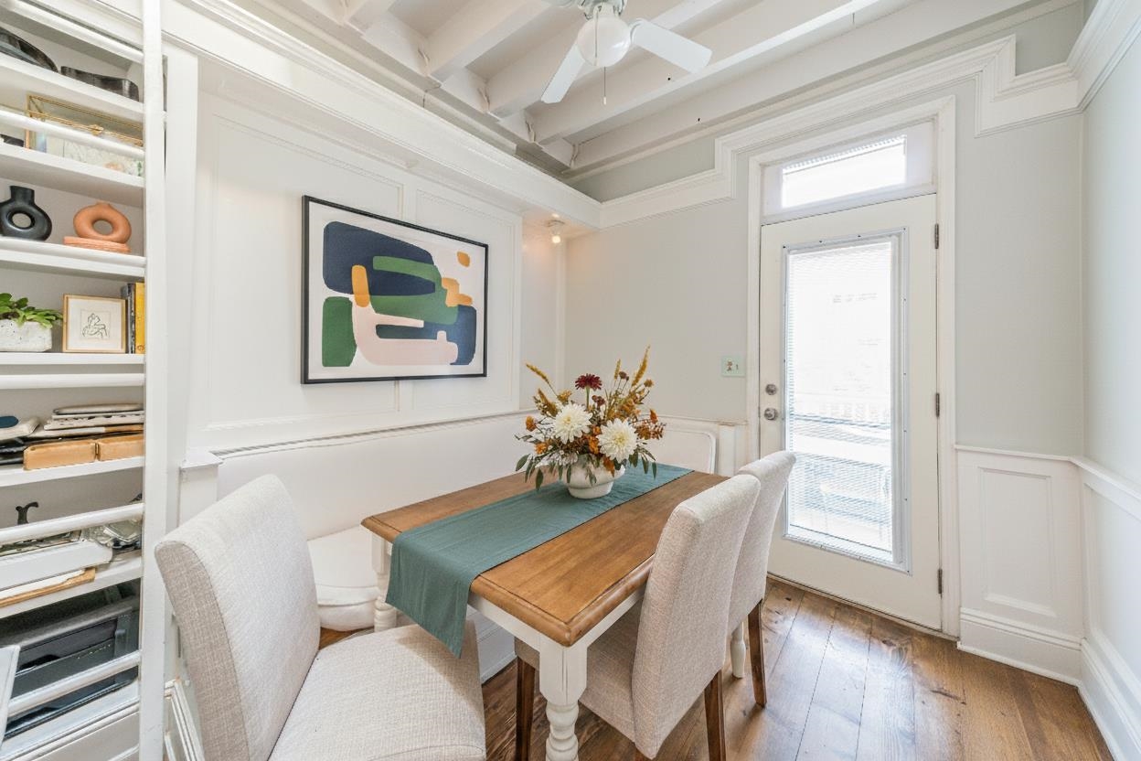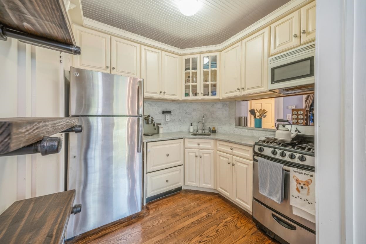Welcome home to this inviting two-bedroom + den condo, where prewar charm meets modern comfort. Nestled in The Village, one of Jersey City’s most coveted neighborhoods, this picturesque tree-lined street residence offers a rare sense of warmth and character. Step inside to discover sun-filled living spaces, generous bedrooms, and a flexible den that can easily serve as a home office, creative nook, or even be converted into a third bedroom. The thoughtfully designed kitchen features stainless steel appliances, a spacious pantry, and a convenient pass-through breakfast bar—perfect for everyday living and entertaining. The home’s private deck provides a peaceful outdoor retreat for morning coffee or evening gatherings, while a large sleeping or storage loft offers exceptional versatility. Original details like elegant moldings and a decorative fireplace add timeless appeal, complemented by modern upgrades including split-system cooling and in-unit laundry. Enjoy the best of city living just beyond your door, with the shops, cafés, and restaurants of The Village and Harsimus Cove, plus easy access to NYC via the PATH—all just minutes away.