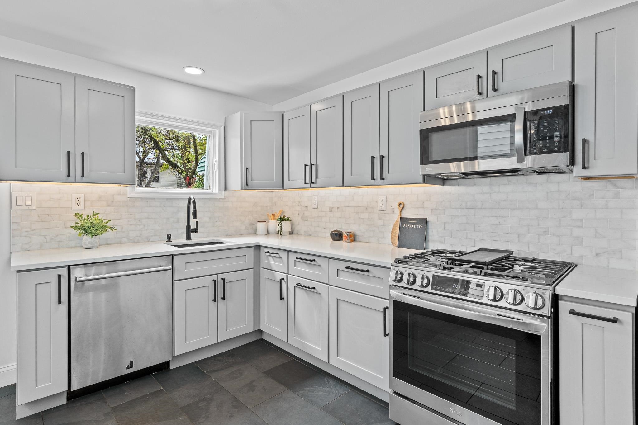This bright and modern single family home is freshly renovated, filled with natural sunlight and waiting for you! Three floors including a full finished basement as well as a backyard AND a parking spot is an opportunity you cannot pass up in Jersey City. Enter into your living space flooded with natural light, which follows to a full dining area and spacious kitchen featuring modern finishes, stainless steel appliances, and the entrance to your private backyard - a blank canvas you can create your personal oasis in, perfect for entertaining! The central stairwell leads up to two full sized bedrooms and the main bathroom, gorgeously remodeled with everything you need. Downstairs you will find a full and finished basement with built-in shelving, a full laundry room, plenty of storage, and a walkout exit to the yard. The open concept space makes for an incredible playroom, home gym or home theater! All this with a private driveway, in the incredible Lincoln Park neighborhood, with the park itself only two blocks away and a quick commute on the Lightrail around the corner! This home has all the space and privacy of the suburbs in the bustling hub of Hudson County, schedule your private tour today!