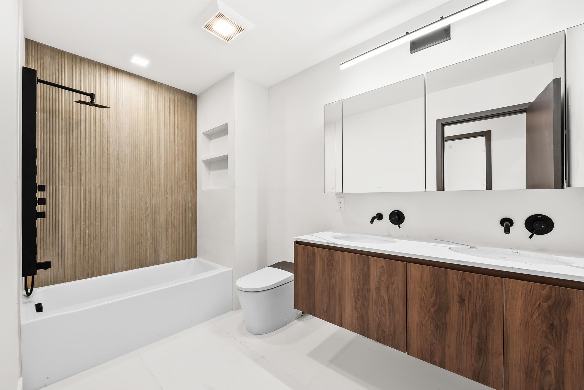 Fully renovation beautiful and spacious three 3b/2b +finished basement/1 half bath unit located in desirable Jersey City Heights. This is a beautifully finished duplex featuring 3 spacious bedrooms, 2 full baths with stylish double vanities, and a fully finished basement with a half bath, wet bar, and a bonus entertainment room. Enjoy brand-new stainless steel appliances, custom cabinetry, hardwood floors, and in-unit laundry. Step outside to your own private backyard, perfect for entertaining or relaxing. Located on a quiet block with easy access to NYC-bound buses and shoppings.