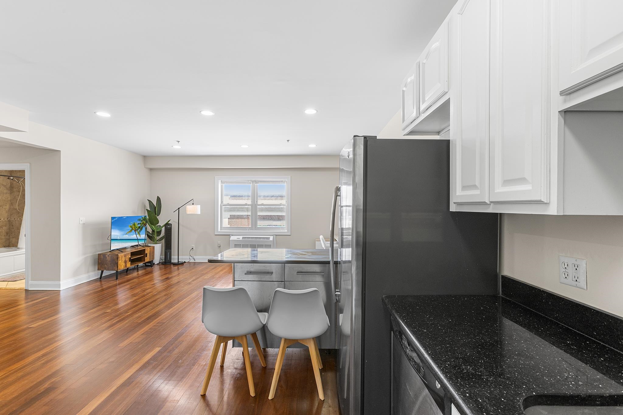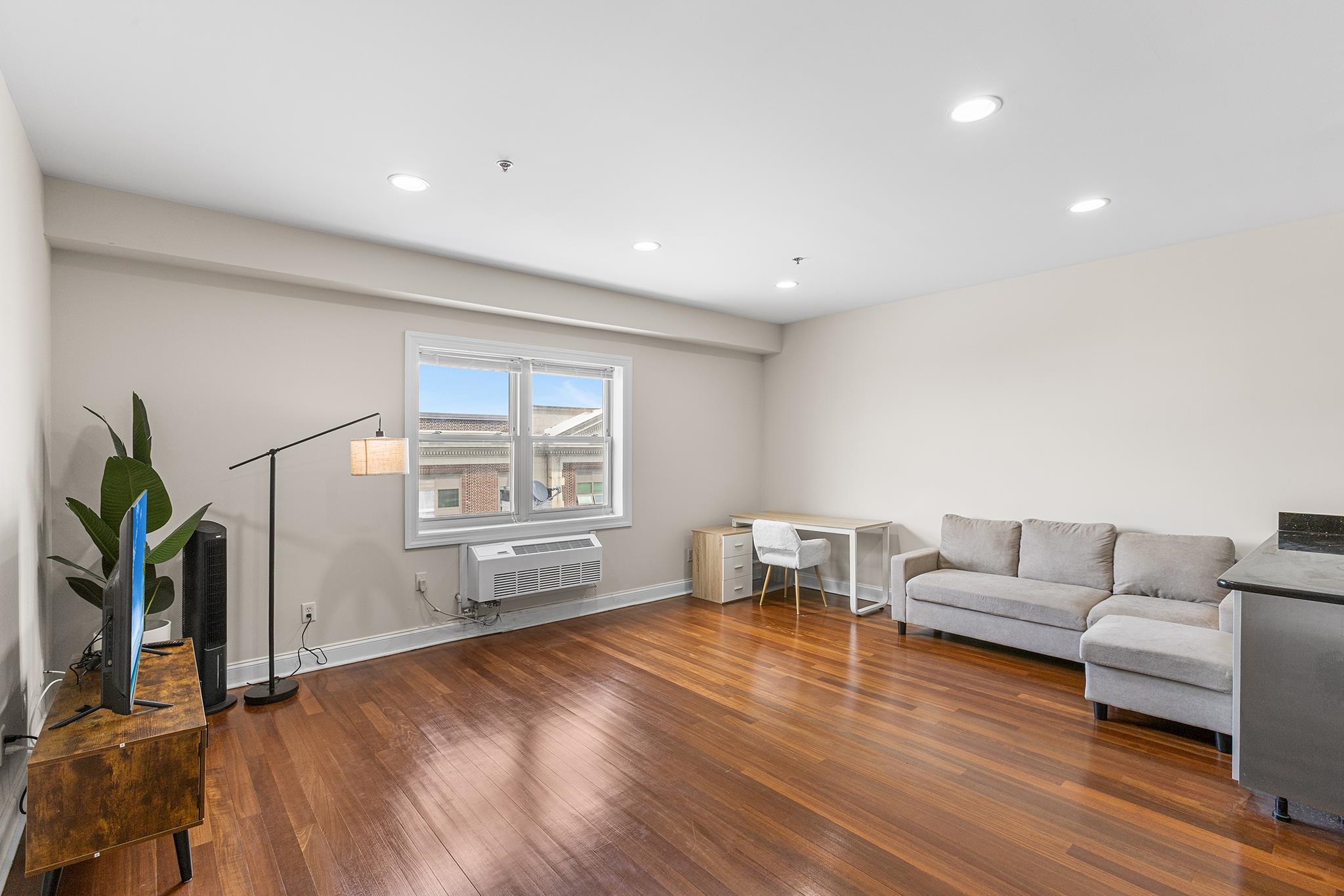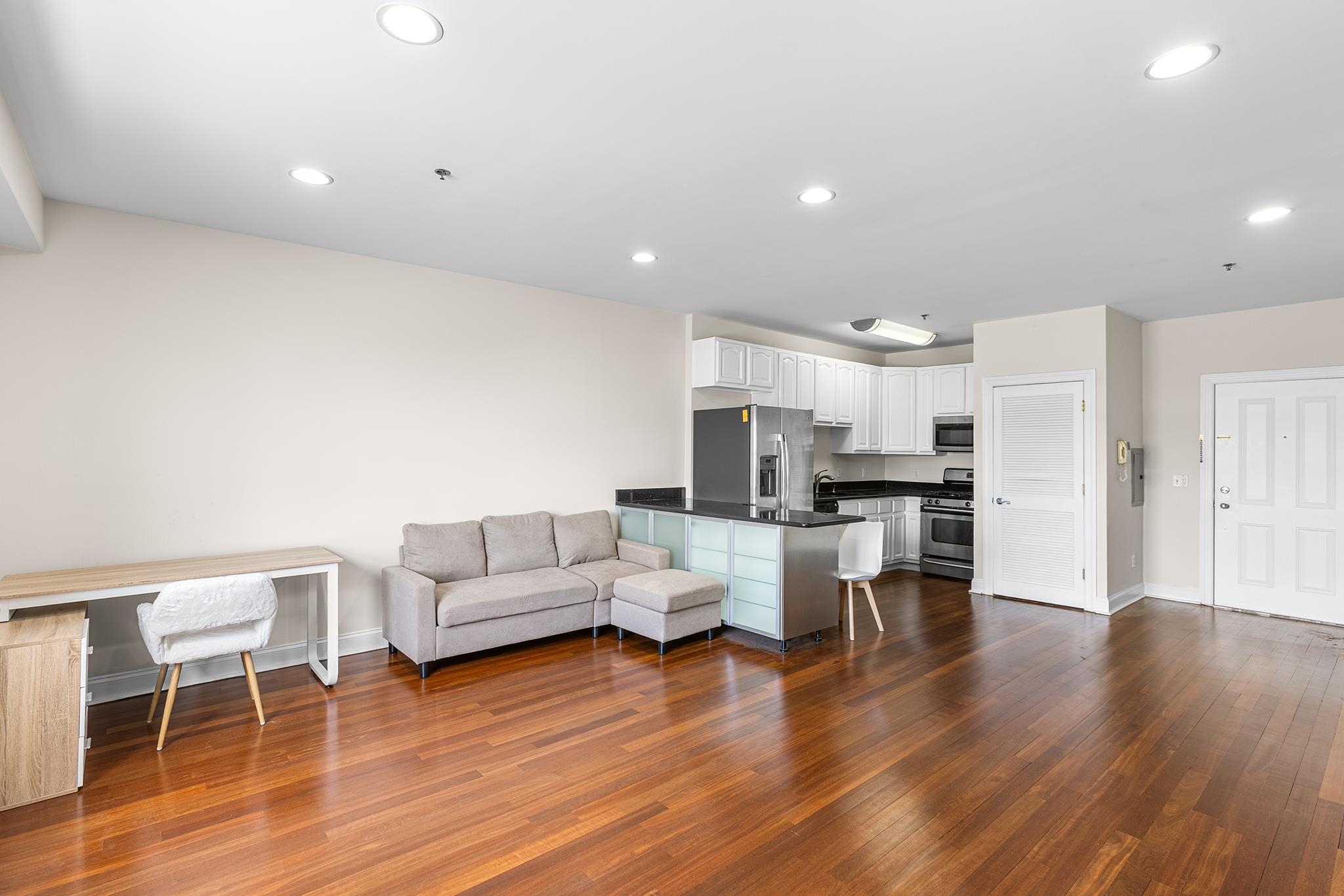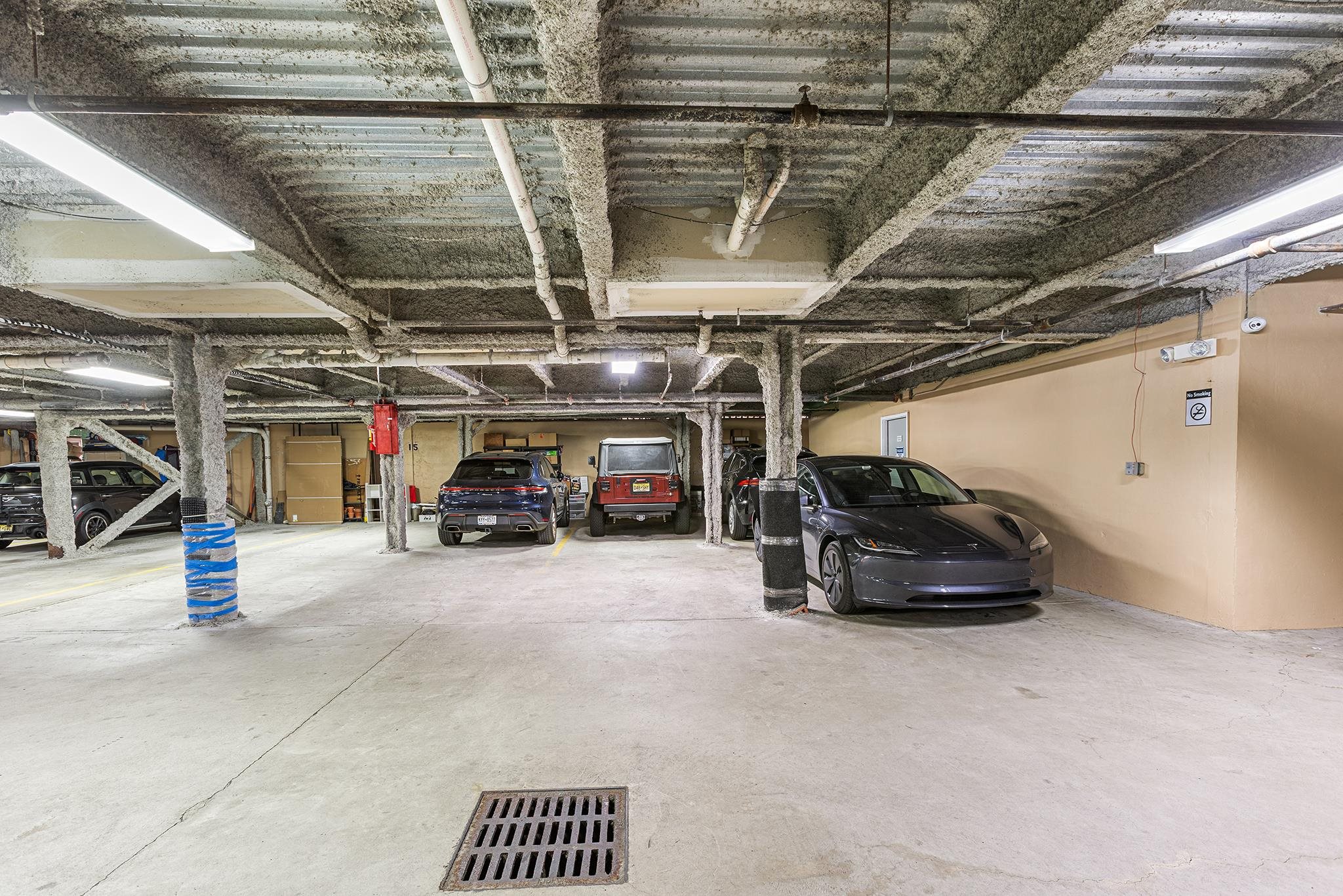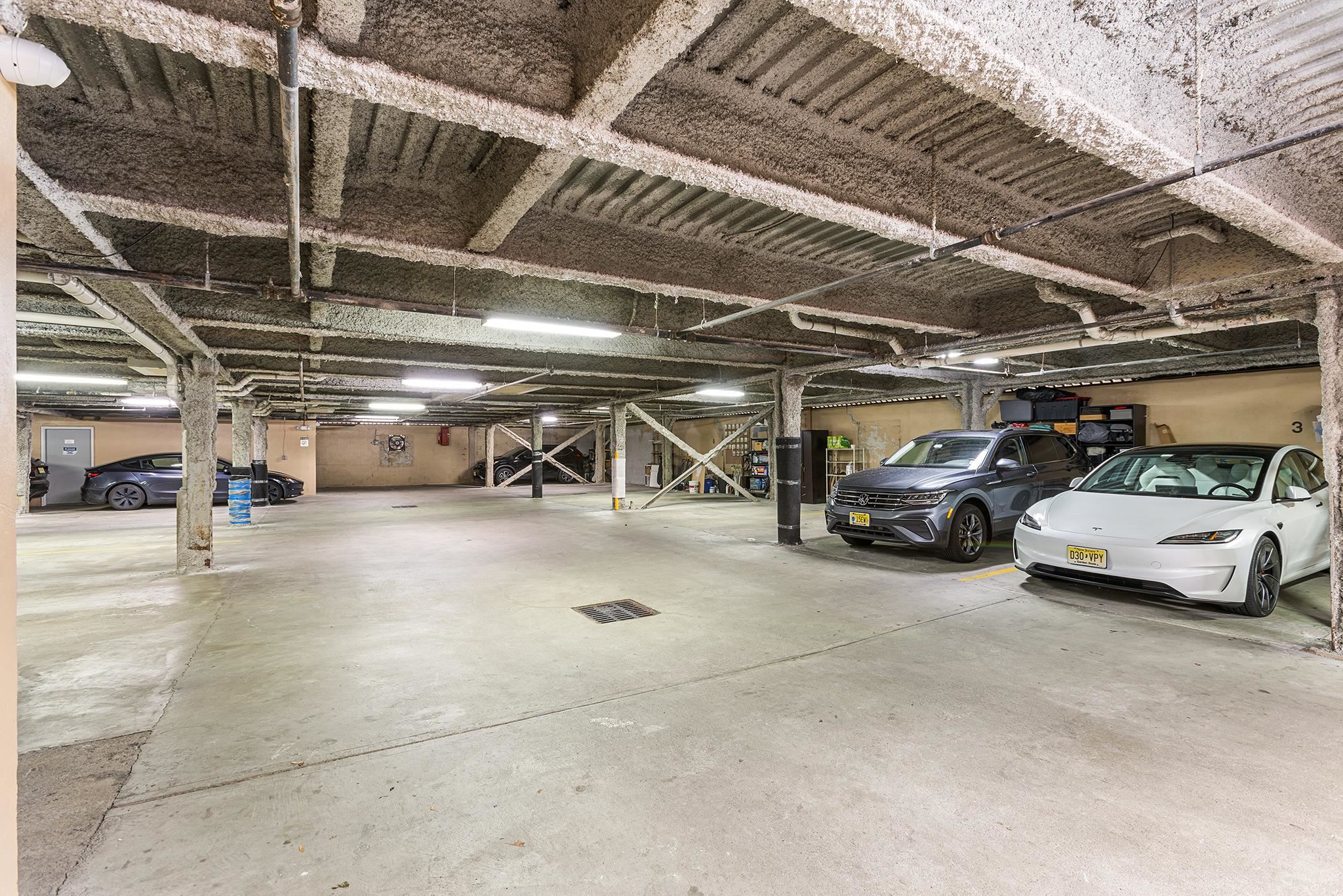 Location, Quality & Convenience — All in One! Parking is tandem inside the garage. Welcome to this beautifully maintained, bright corner 1-bedroom condo with deeded parking and private storage, located in a well-built elevator building from 2006. Perfectly move-in ready, this home features 9 ft ceilings, refinished hardwood floors, and an open layout ideal for both relaxing and entertaining. The spacious kitchen is equipped with granite countertops and stainless steel appliances, while the bathroom offers travertine tile and a granite vanity for a touch of luxury. Oversized windows flood the space with natural light, and you'll appreciate the generous closet space, in-unit washer/dryer, and central vacuum system. Enjoy unbeatable commuter access with the bus to Manhattan right outside your door, and Hoboken just minutes away via the nearby viaduct. Surrounded by parks, playgrounds, and neighborhood charm, this condo is the perfect blend of comfort, location, and modern convenience.