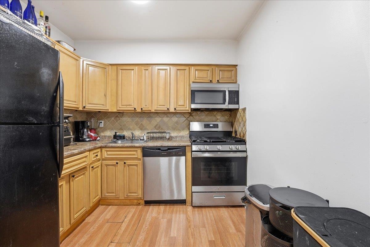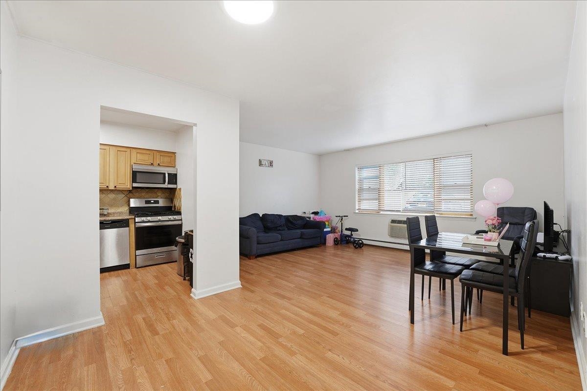 Bright and inviting first-floor condo on tree-lined street. Offers a comfortable, well-planned layout with a generous living/dining area, kitchen, two beds with ample closets, and a full bath. Set in a well-maintained brick condo with baseboard gas heat and a convenient laundry room in the building. Commuter-friendly location: approximately 2 miles to the Harrison PATH and close to NJ TRANSIT bus service to Newark/Jersey City, with everyday conveniences, shops, and dining nearby. Outdoor recreation abounds with neighborhood parks moments away, including Deans Park and expansive West Hudson Park. A great opportunity for low-maintenance living with excellent access to regional transit and amenities in the heart of Kearny.
